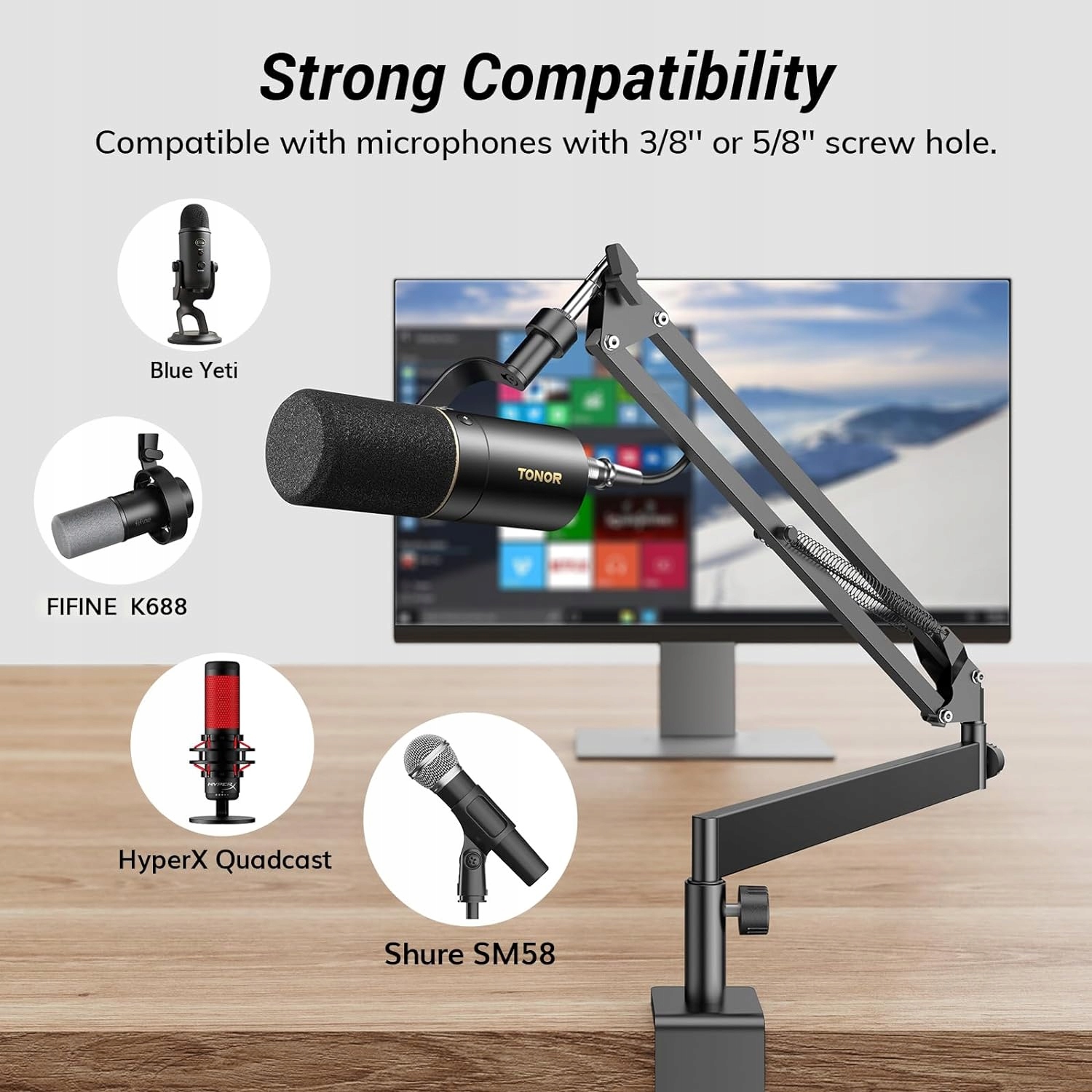 Наш низкопрофильный кронштейн микрофона полностью изготовлен из металла и оснащен высококачественными пружинами, выдерживающими максимальный вес 1,5 кг (3,3 фунта). Зажим нижнего кронштейна микрофона имеет площадь контакта со столом 2,17 x 1,97 дюйма (5,5 x 5 см), обеспечивая надежную поддержку при движении руки и стабильность во время использования.