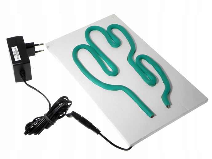 Большой кактус из неона LED FLEX. Неоновая вывеска размещается на белой ПВХ-панели в специально выфрезерованных для этой цели пазах. В комплект входит блок питания. Просто подключите все к сети 230В. Очень хорош в качестве подарка. Его можно использовать как украшение комнаты. Их легко прикрепить к стене, повесить или поставить на стол.