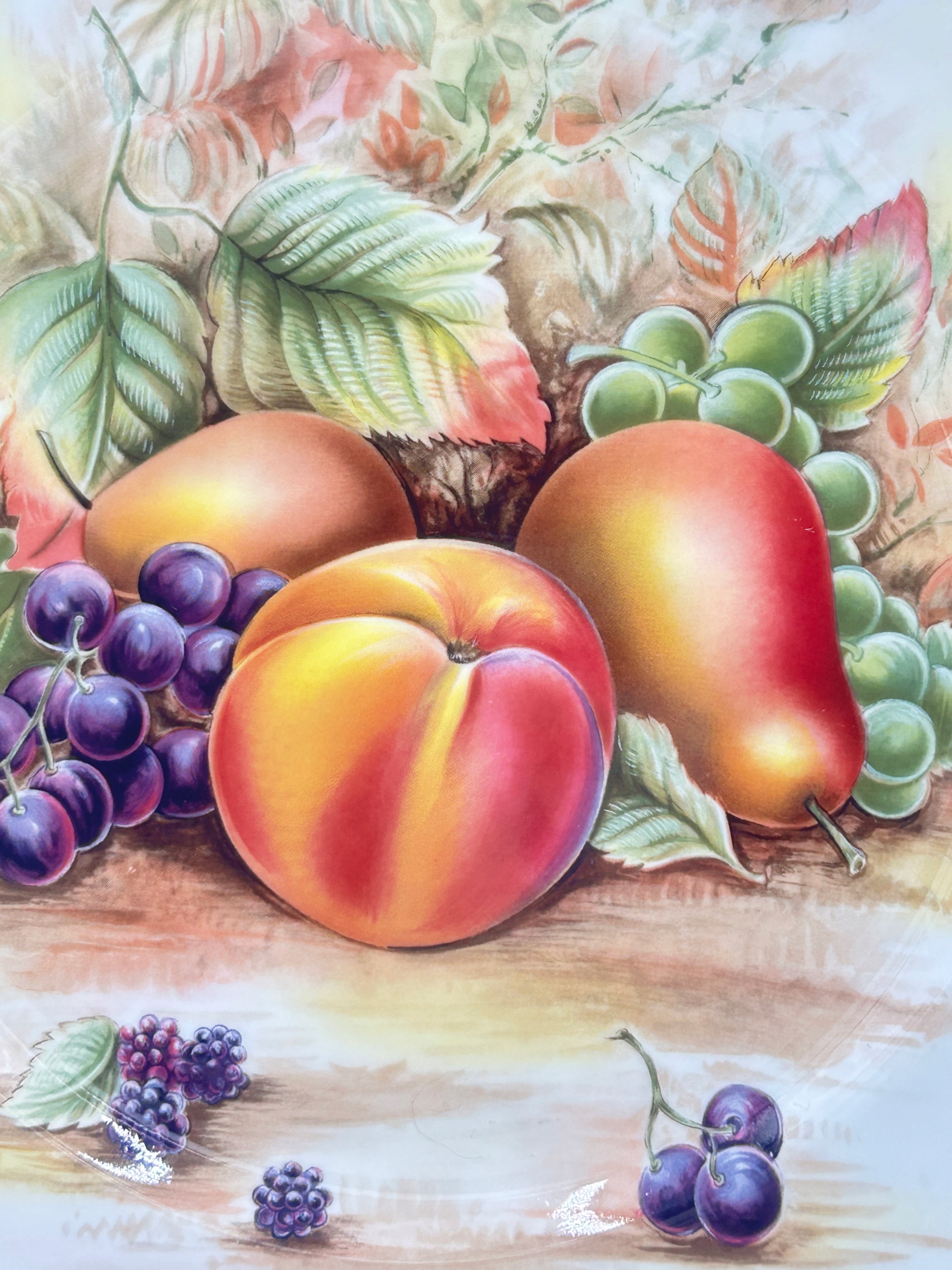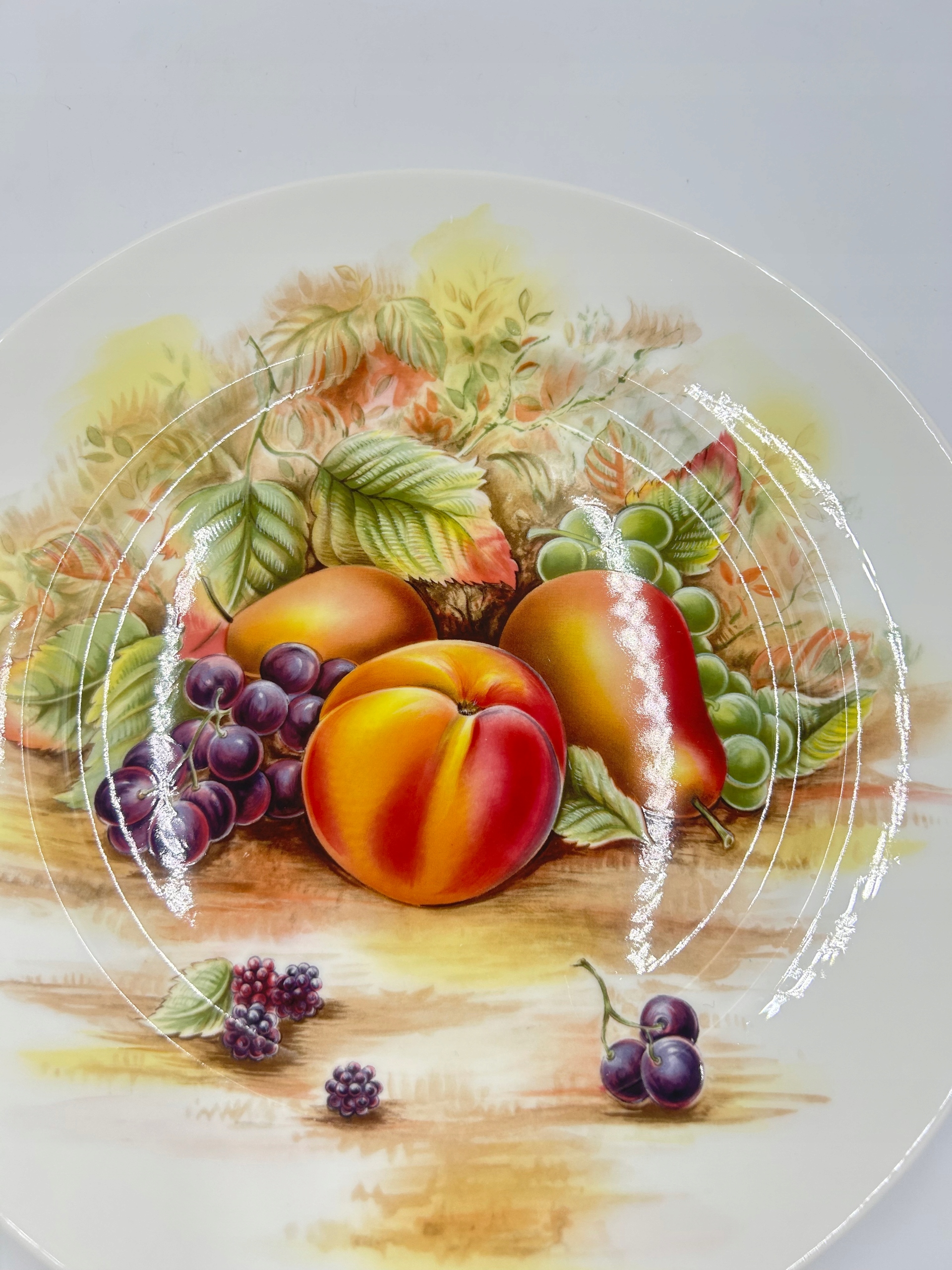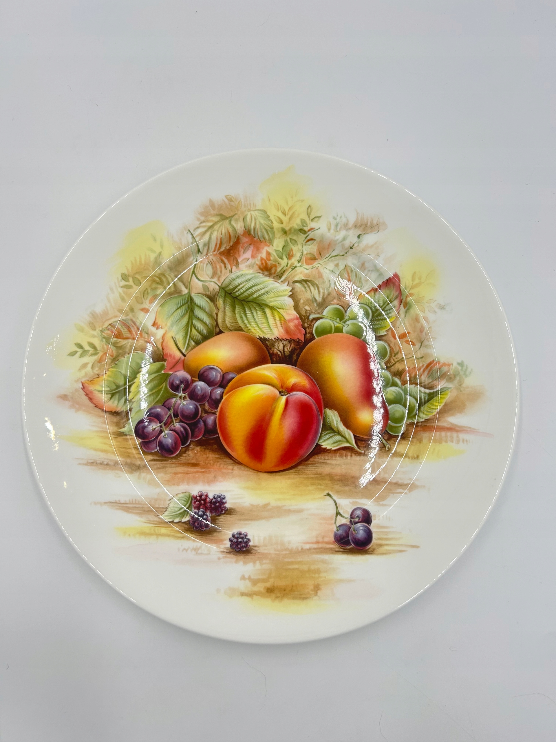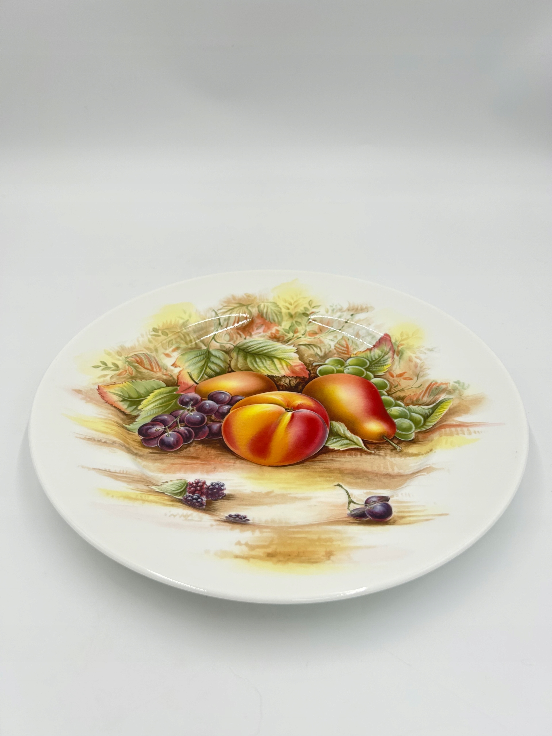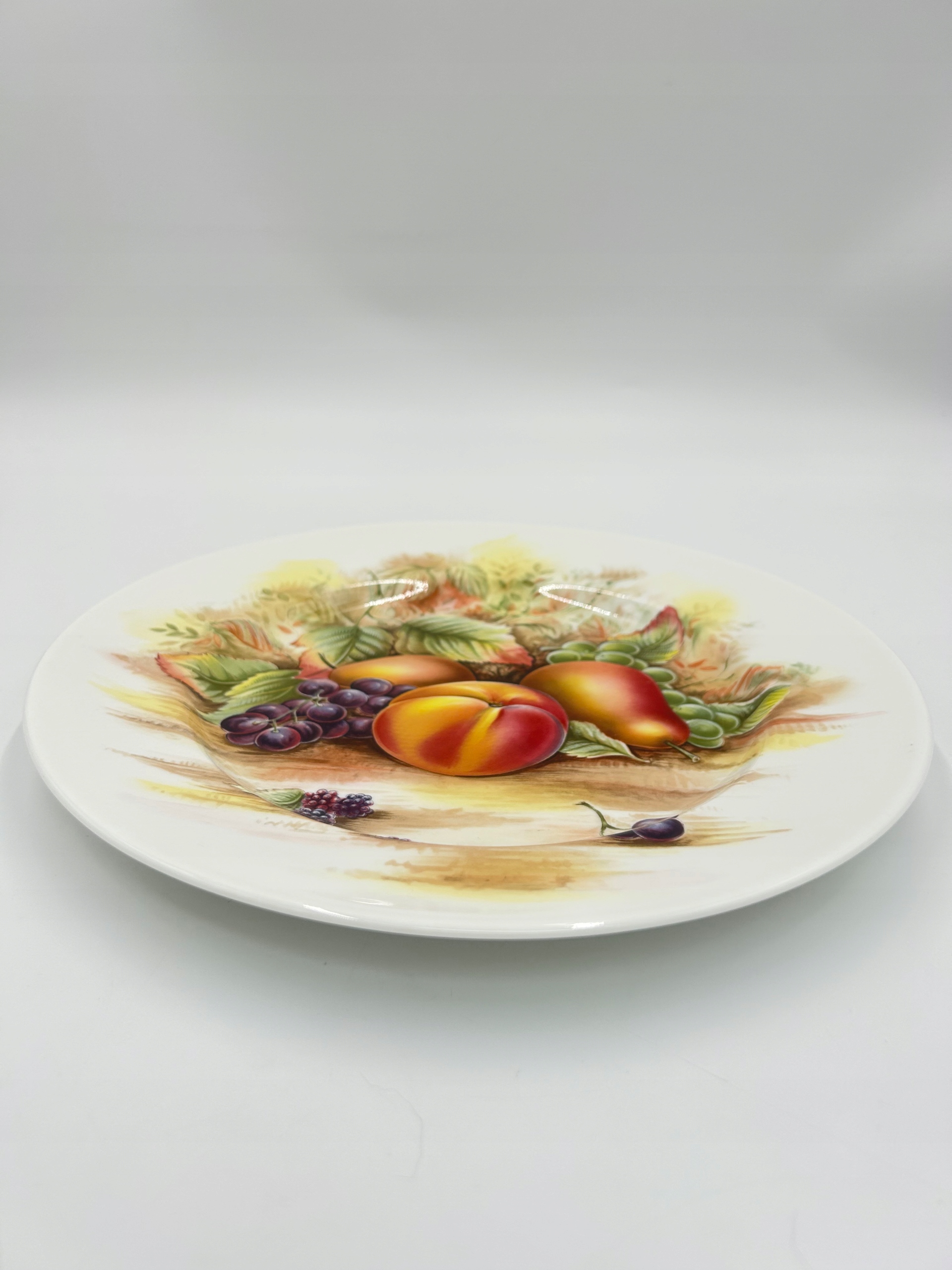 Тема продажи - элегантная фарфоровая декоративная тарелка с подписью Эйнсли, из Англии. Тарелка, изготовленная из костого фарфора высочайшего качества, украшенная изображением фруктов.