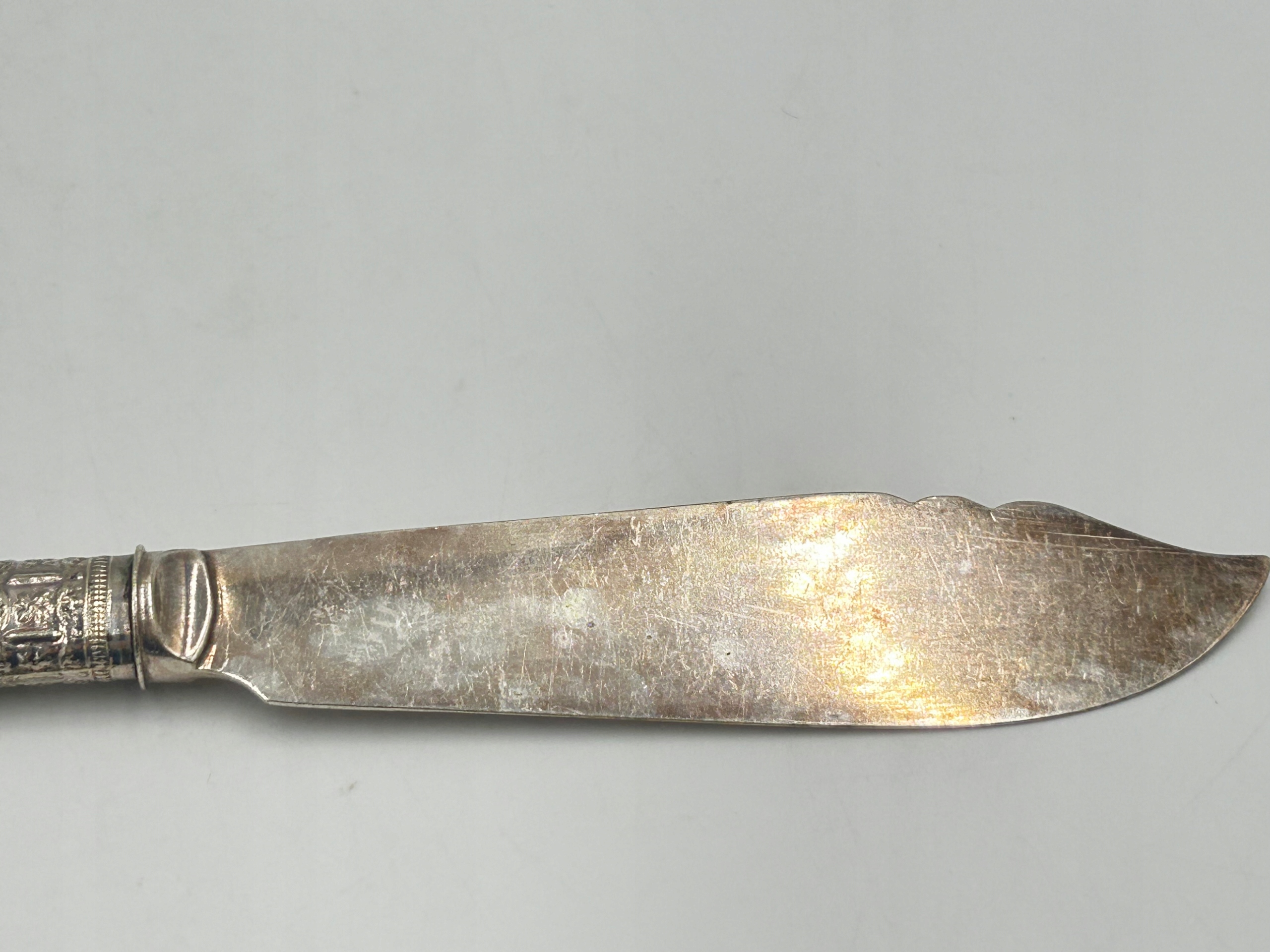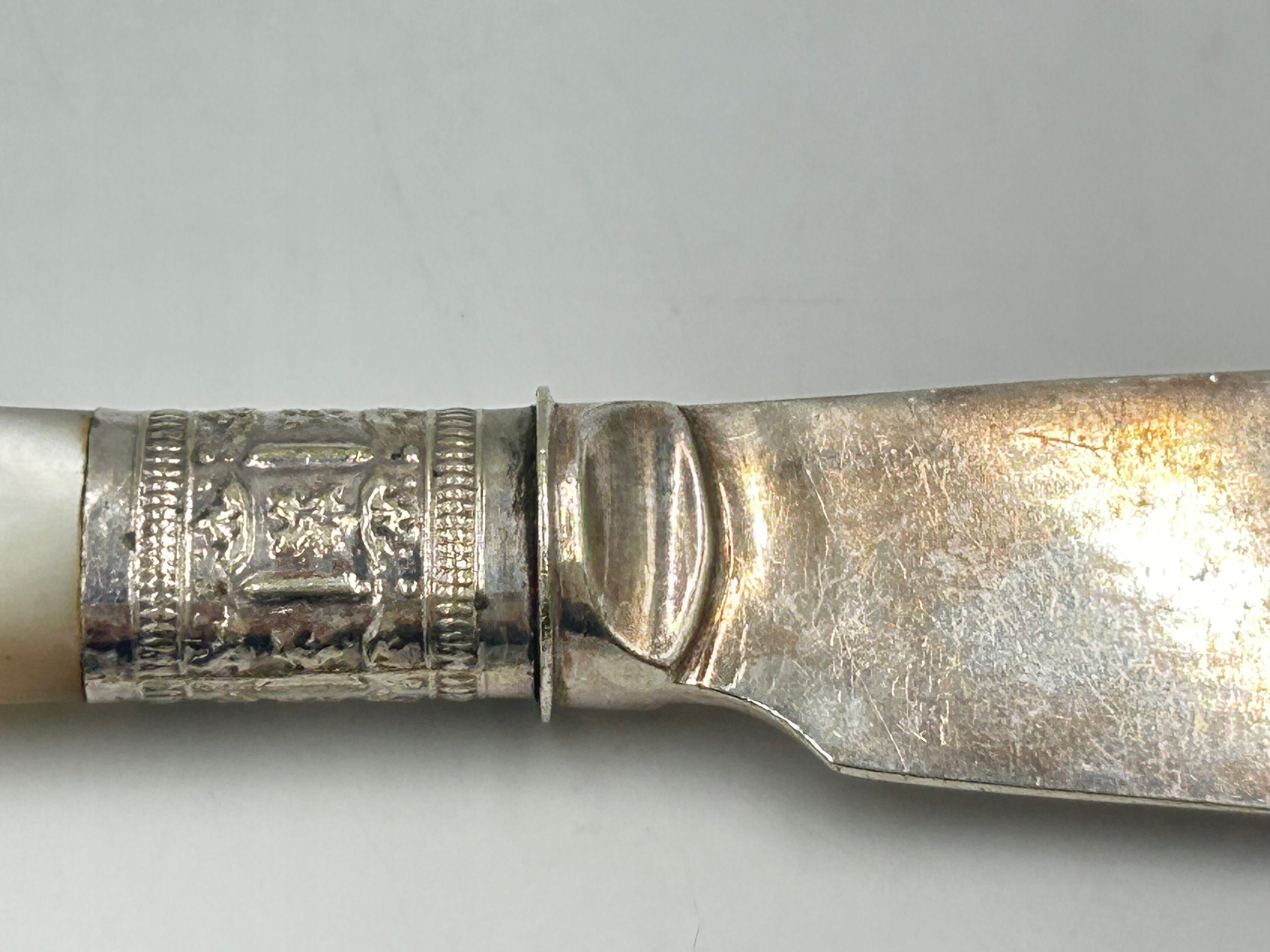nmmt3 Антикварный нож - посеребренное лезвие, перламутровая ручка.