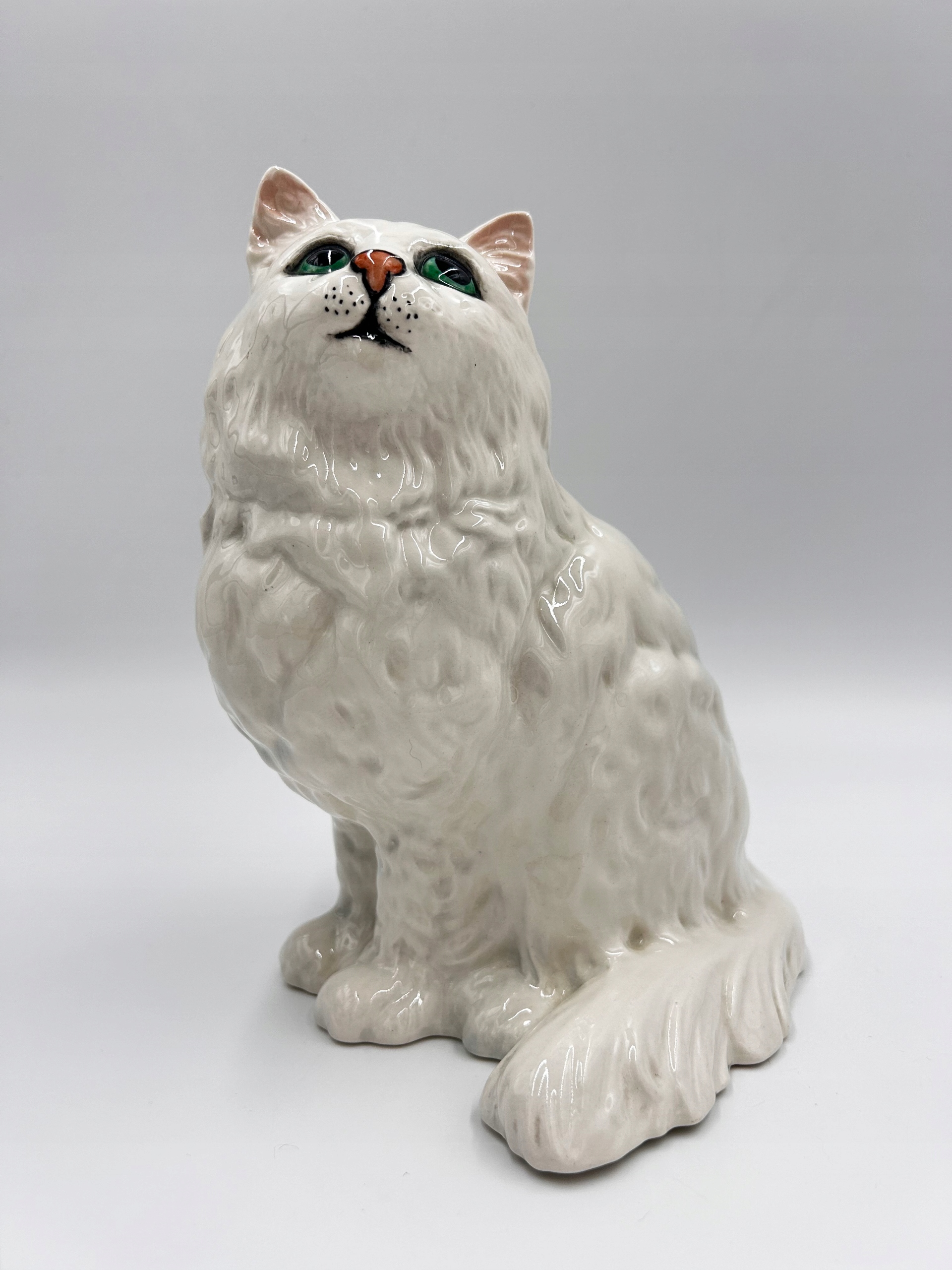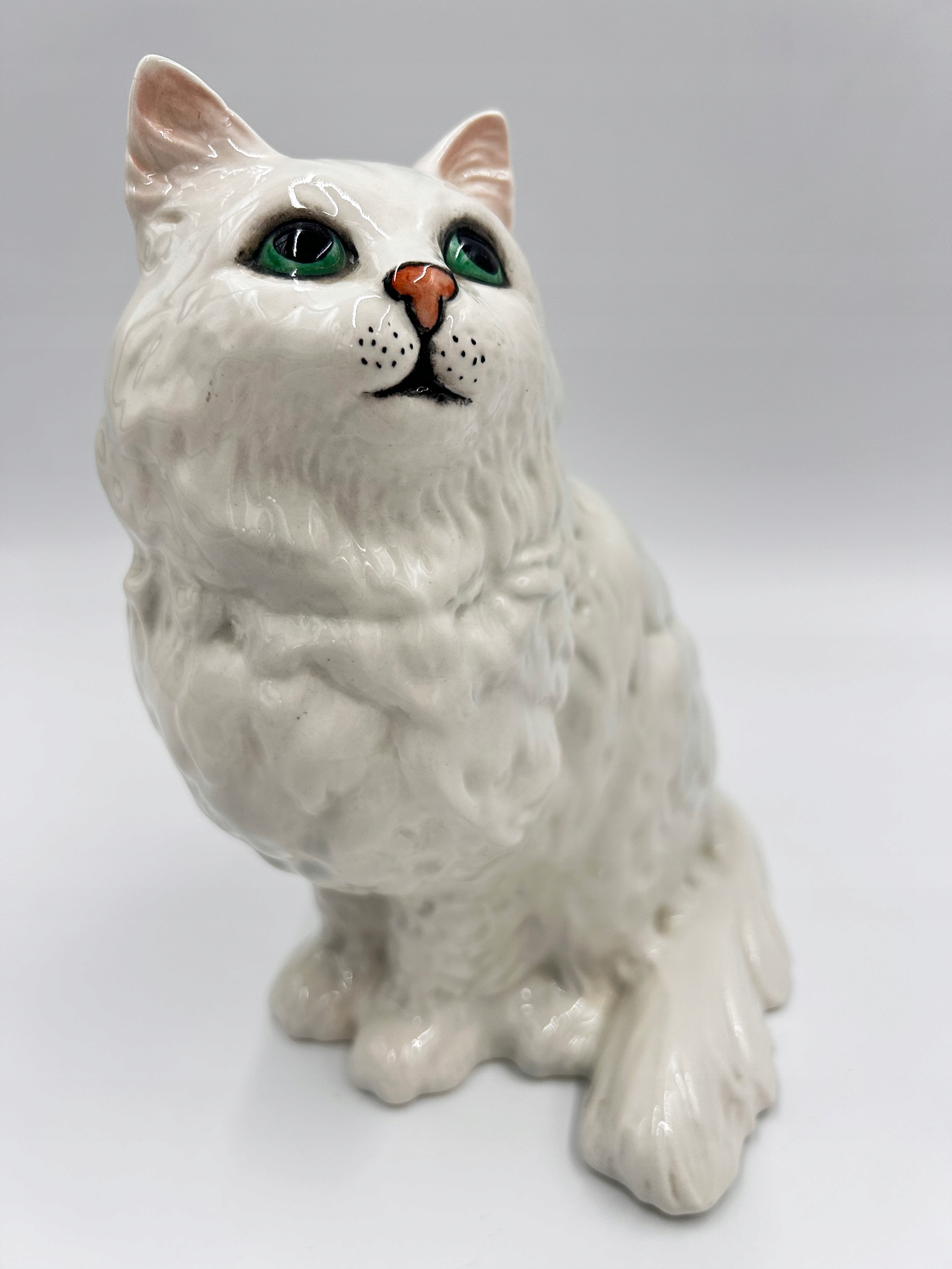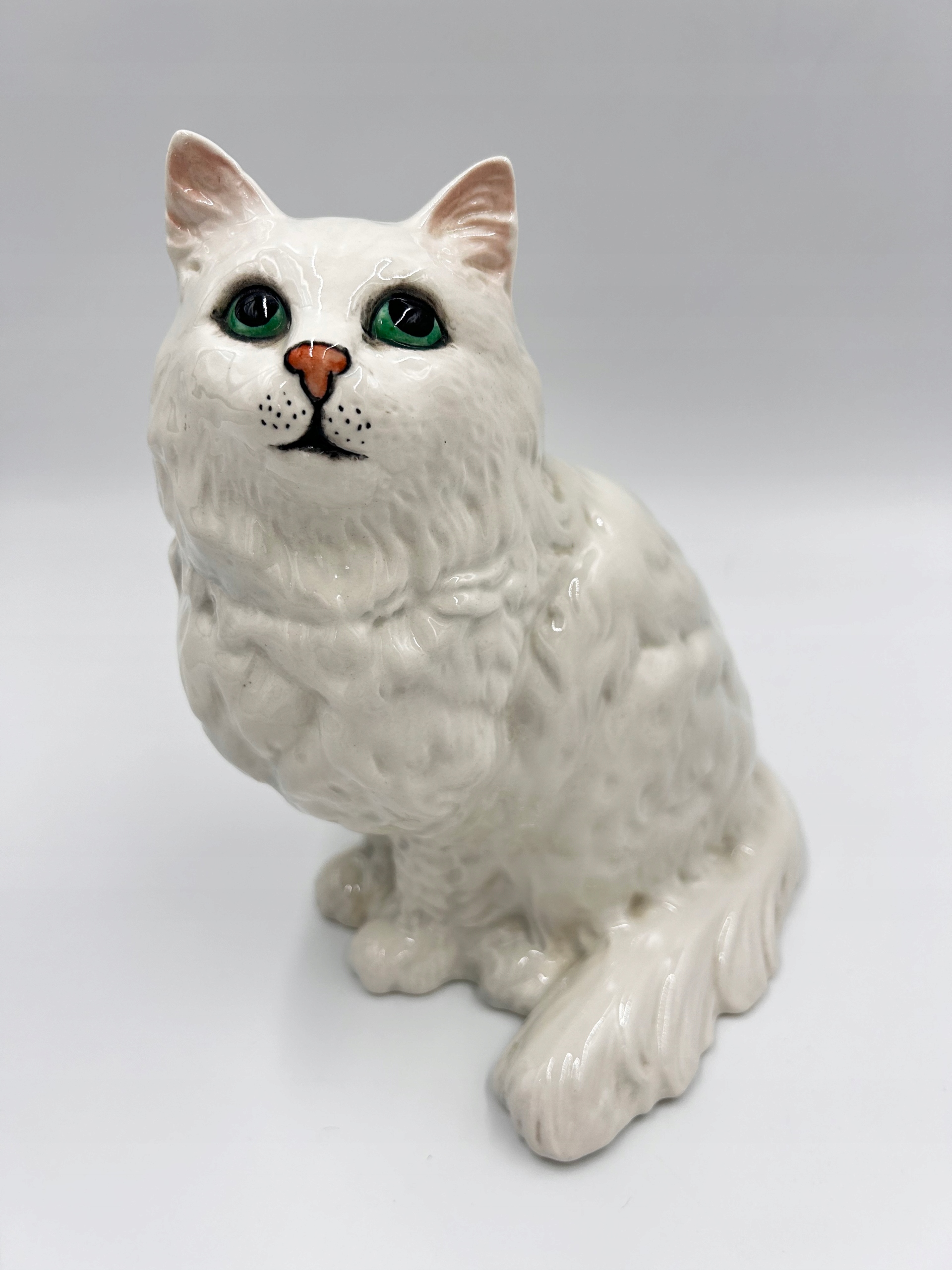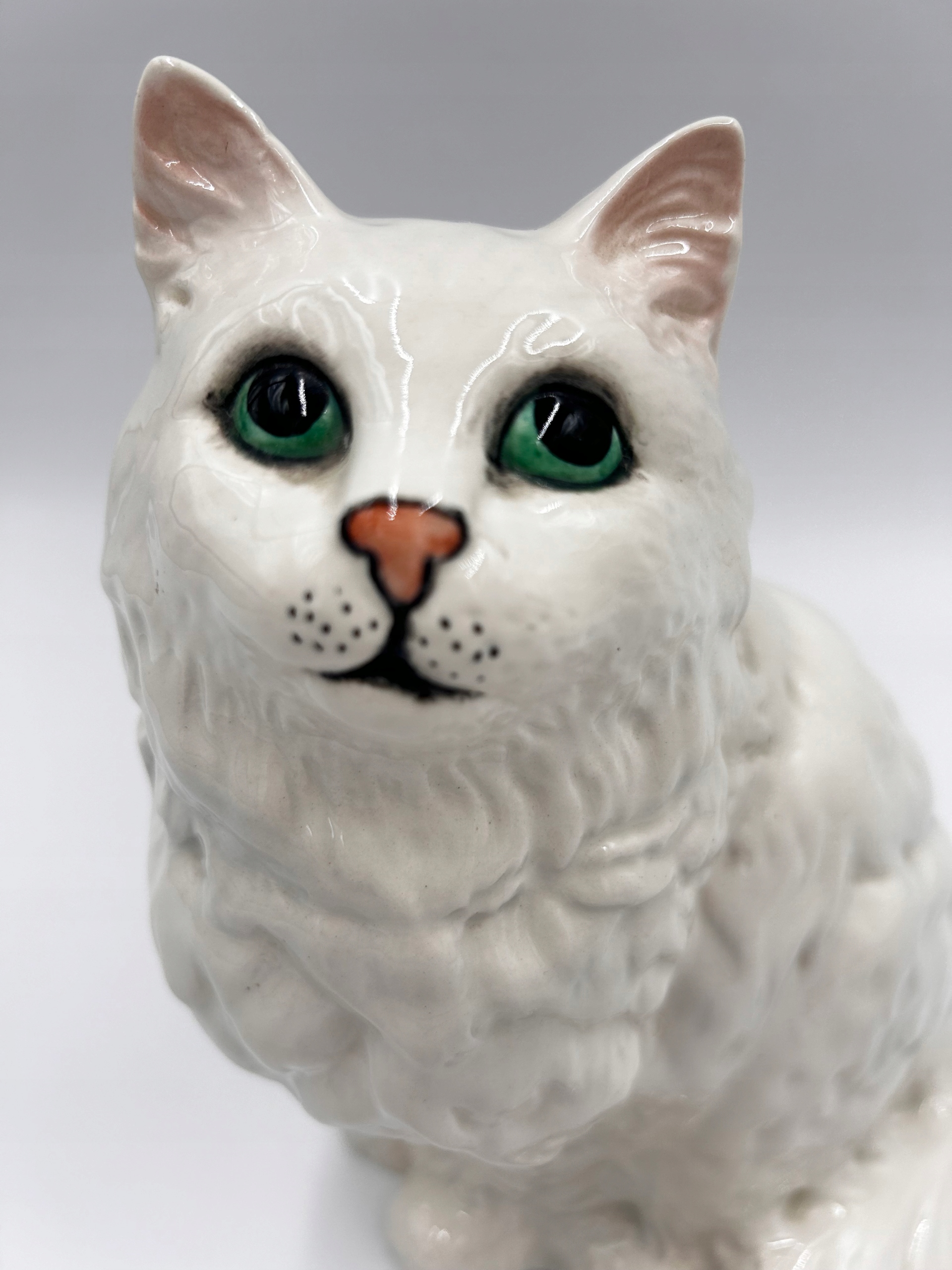 Предмет продажи — большая фарфоровая статуэтка известной английской мануфактуры BESWICK ENGLAND, изображающая очаровательного белого кота с зелеными глазами.