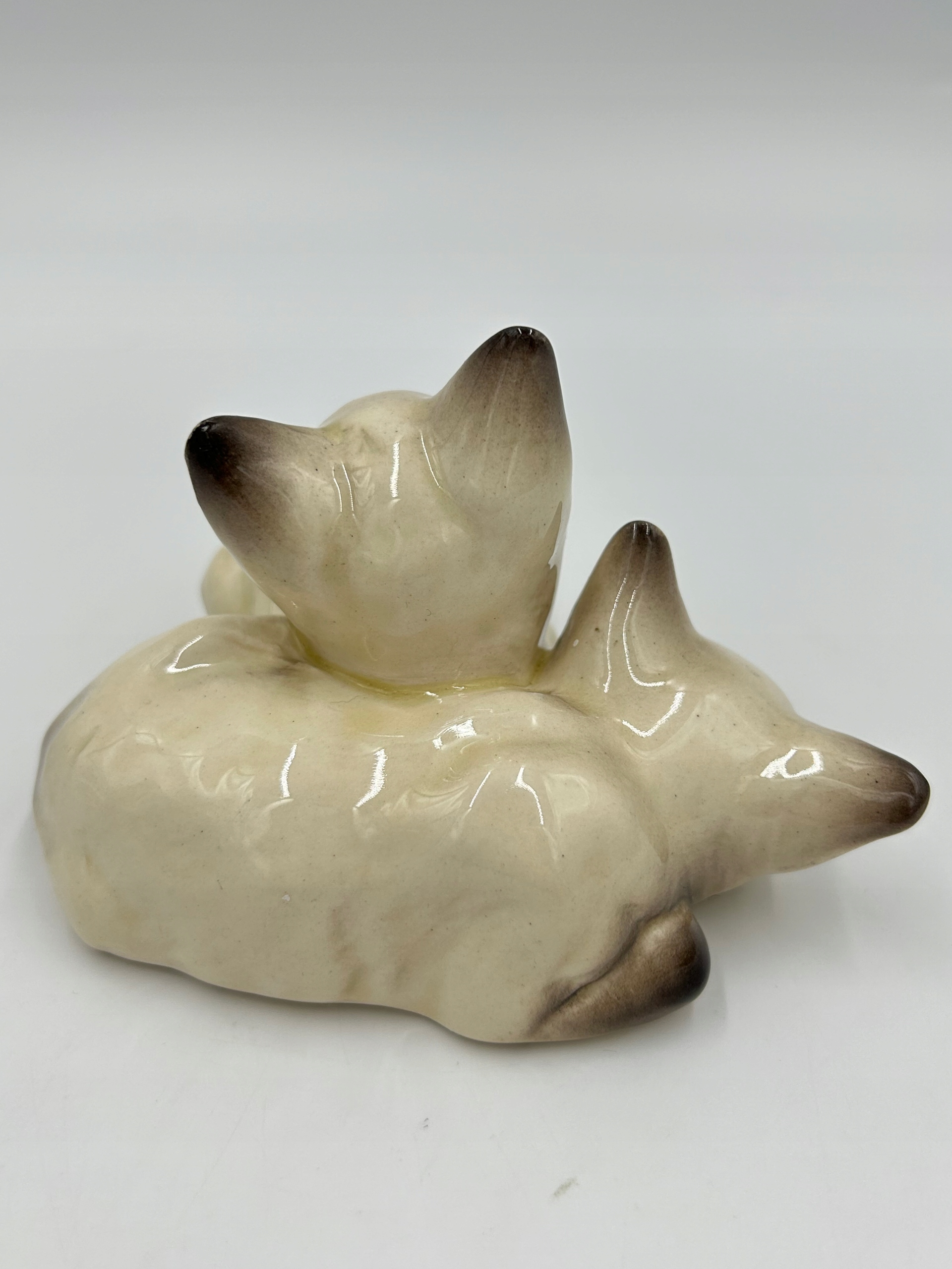 Предмет продажи — очаровательная статуэтка от известного английского производителя BESWICK ENGLAND, изображающая пару милых сиамских котят. Фигурка изготовлена с большой точностью и вниманием к деталям, отражая особенности этой породы. Ручная роспись. Находка для коллекционера, любителя породы или уникальный подарок близкому человеку.