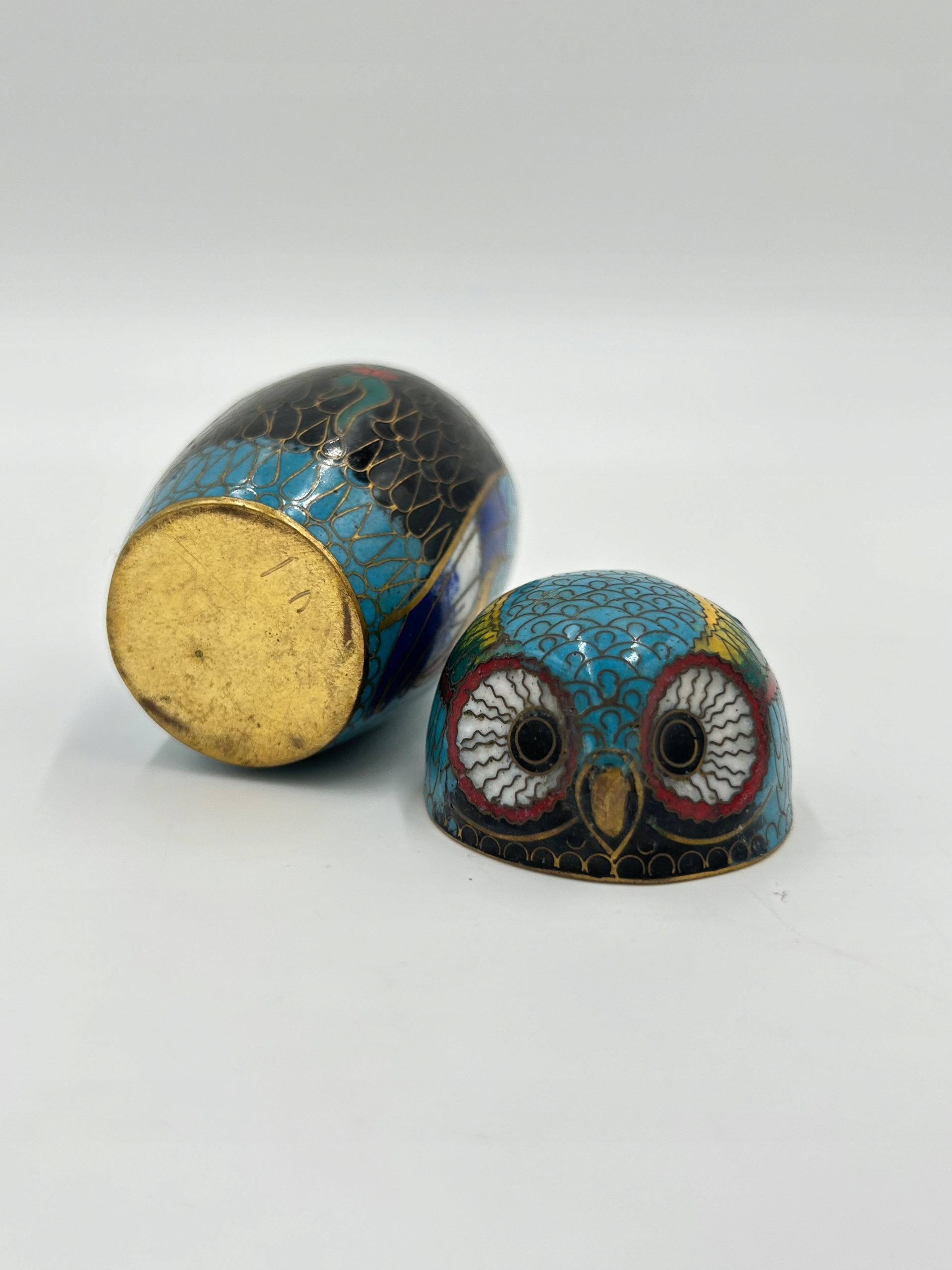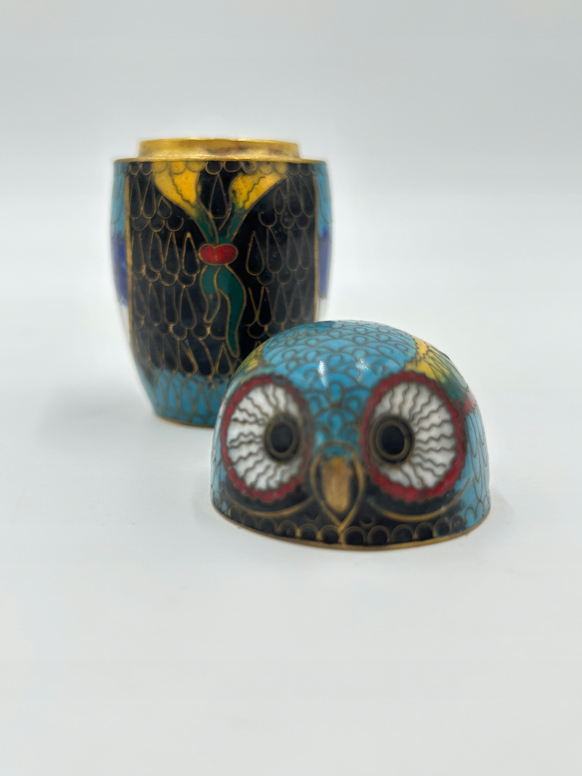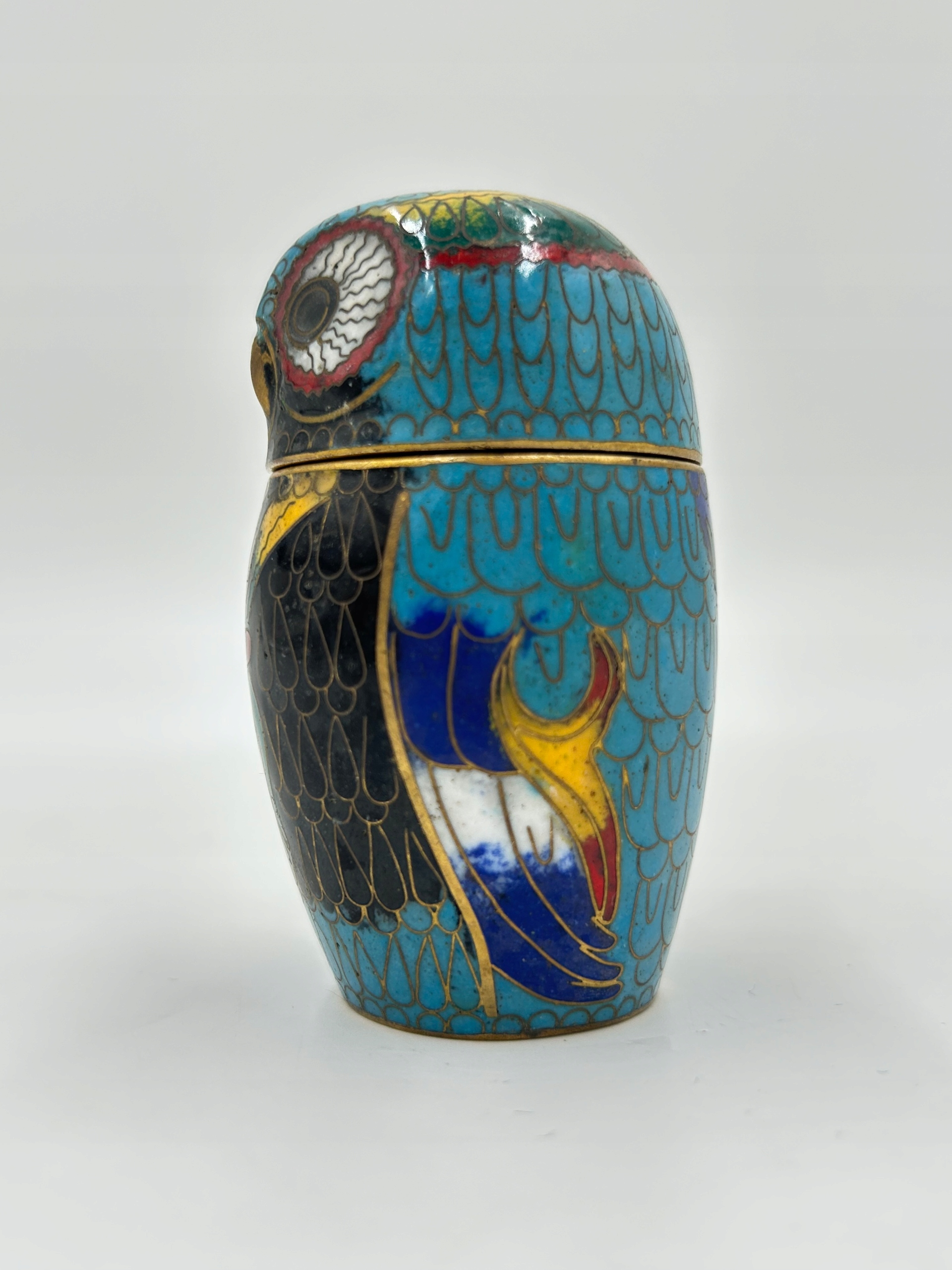 Я представляю вам уникальную статуэтку - шкатулка, украшенная техникой Cloisonne - клеточной эмаль. На статуэтке изображена очаровательная сова. Сделано с большим вниманием к поддержанию деталей и множеству деталей. Красочные украшения, насыщенные цвета добавляют уникальность.