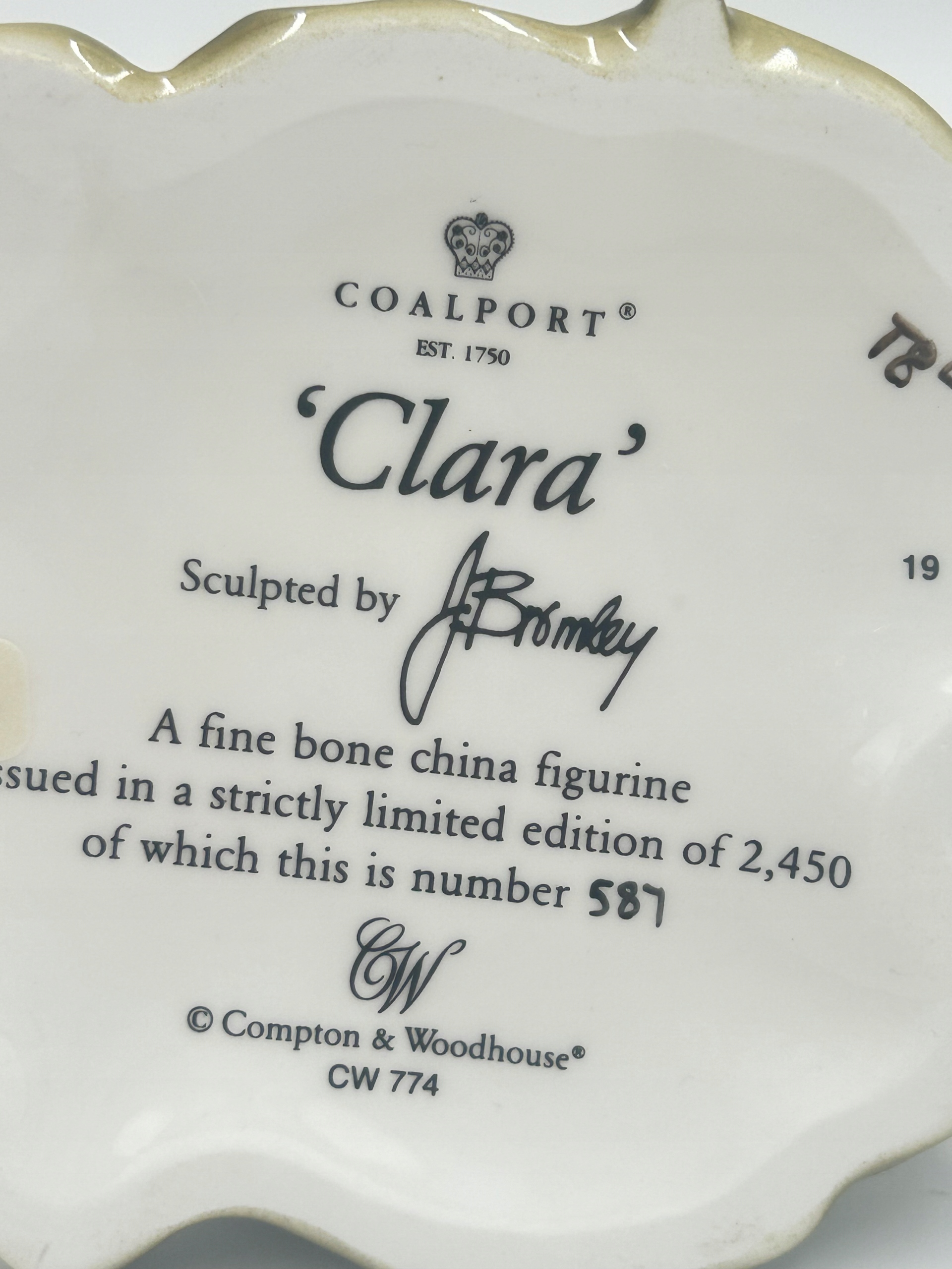 для продажи оригинальная статуэтка коллекционера из английского фарфорового коала - модель "Clara", Автор: J. Bromley. Копия из ограниченной серии 2 450 пьес (№ 587) . Сделано из тонкого костяного фарфора, ручной работы.