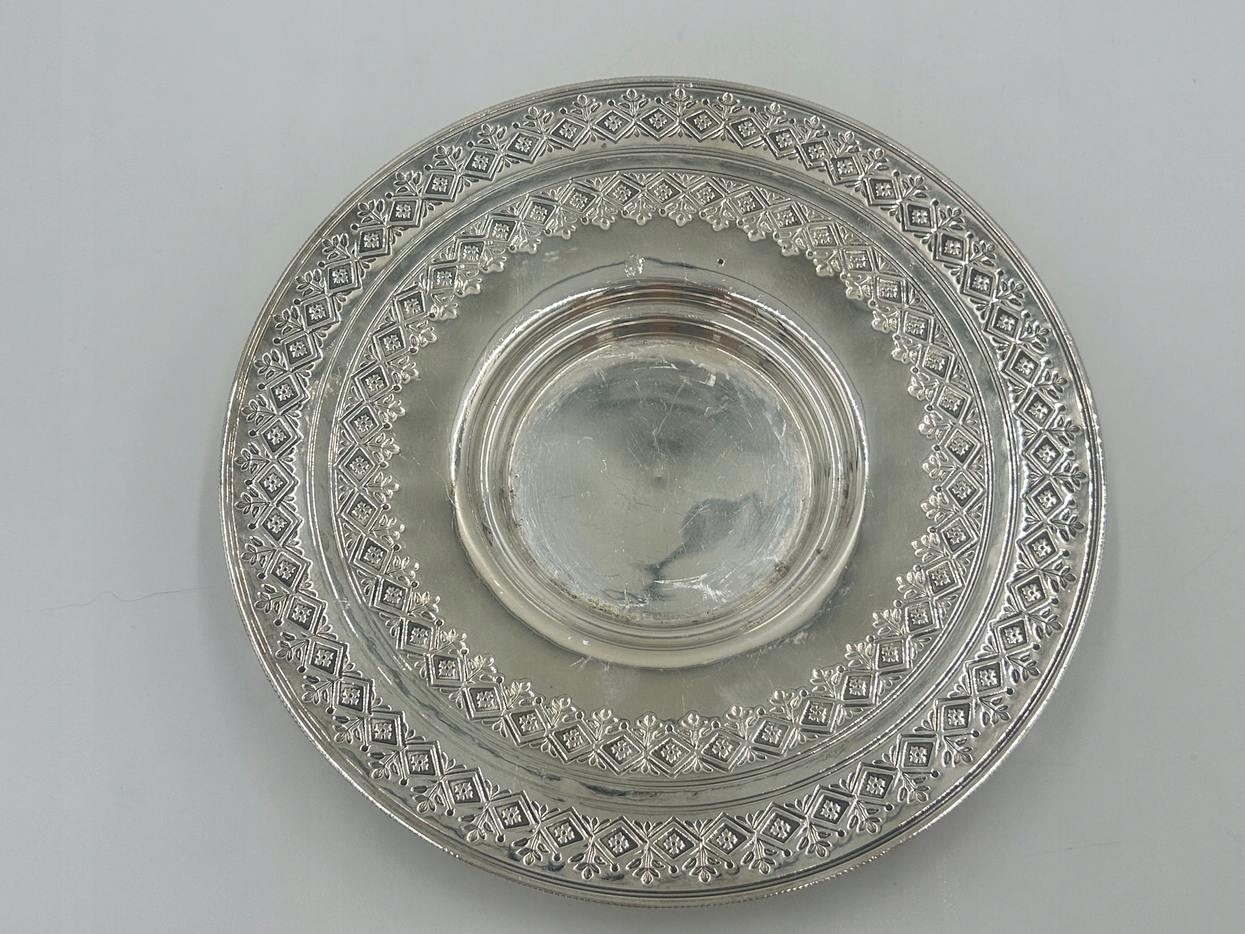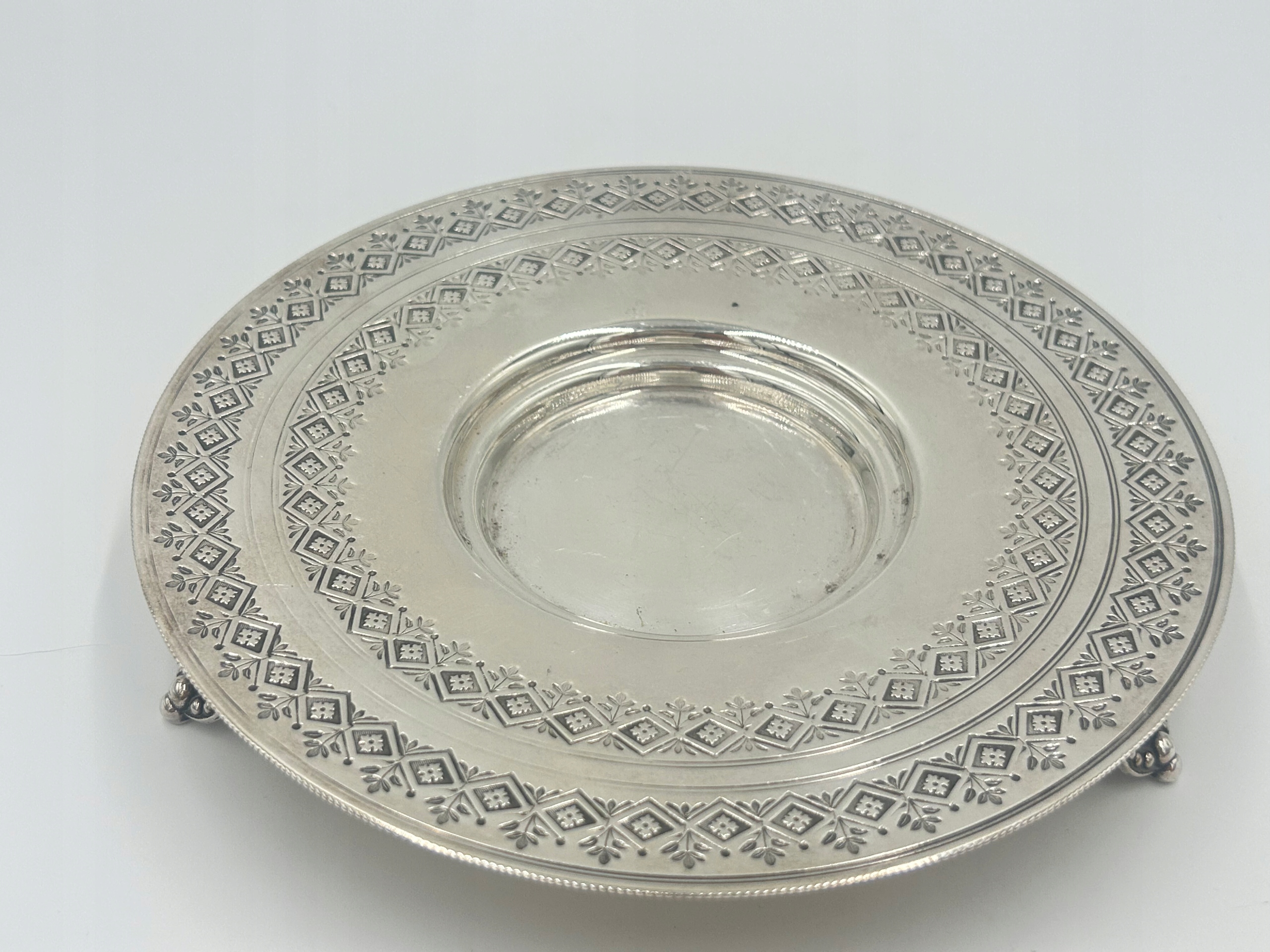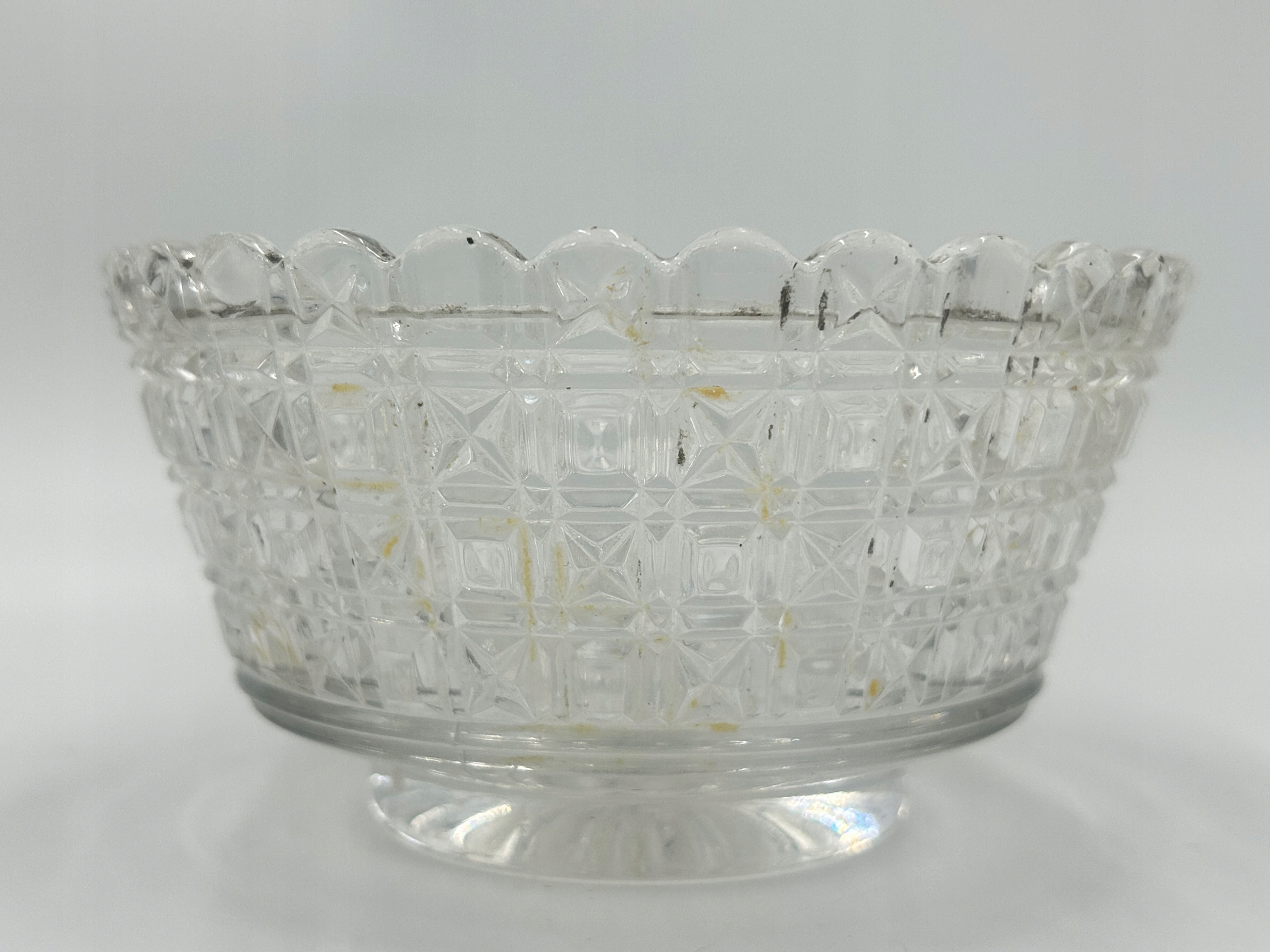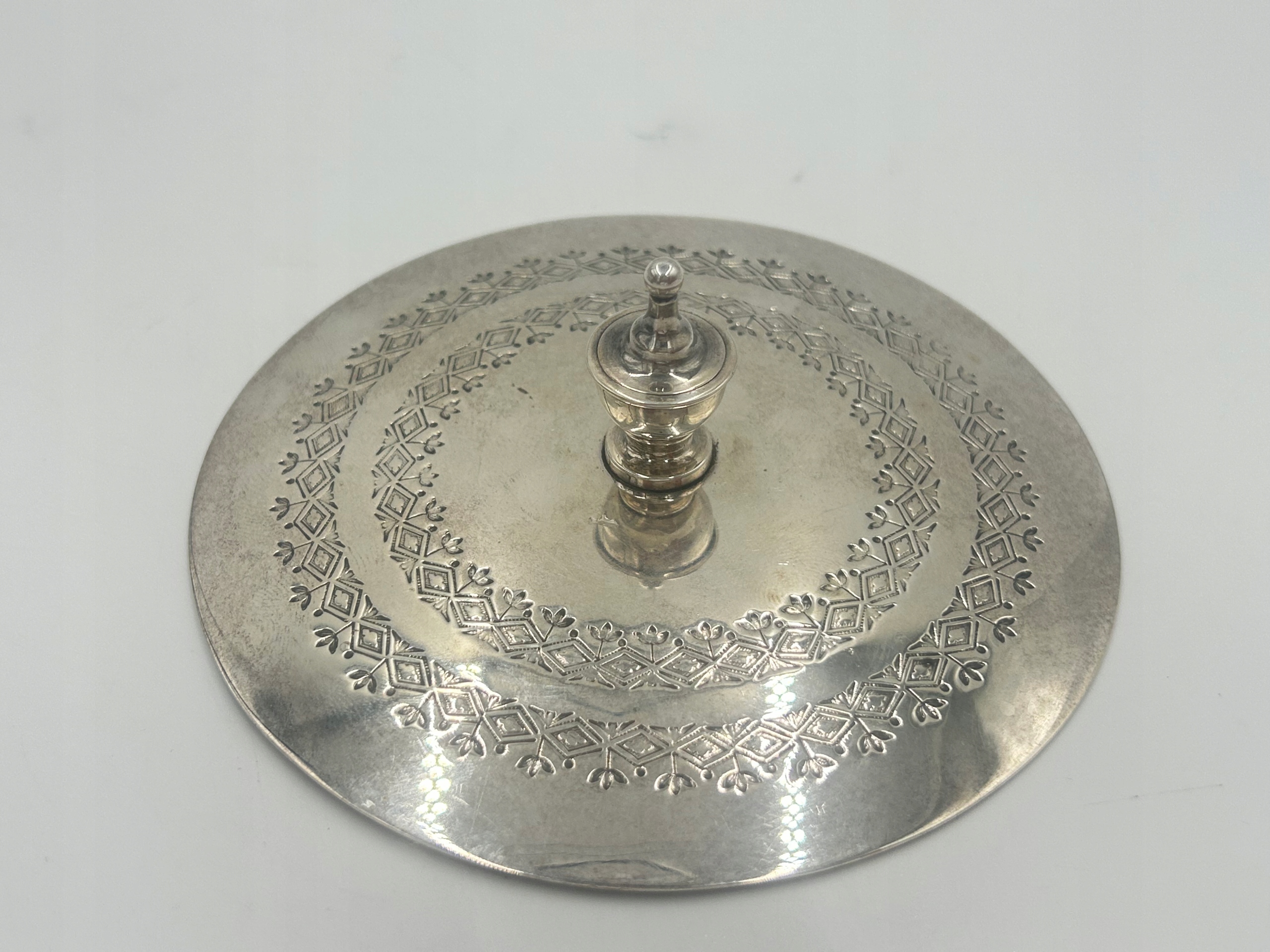 Предмет продажи — декоративная сахарница/конфетница из стекла с плакированной крышкой, на декоративной круглой основе. Сахарница из глубокого граненого стекла, поставленная на подставку с тремя декоративными ножками. Маркировка производителя расположена на обратной стороне основания. Это уникальный, элегантный предмет 19 века, который станет прекрасным дополнением вашей антикварной коллекции или элегантным украшением стола.