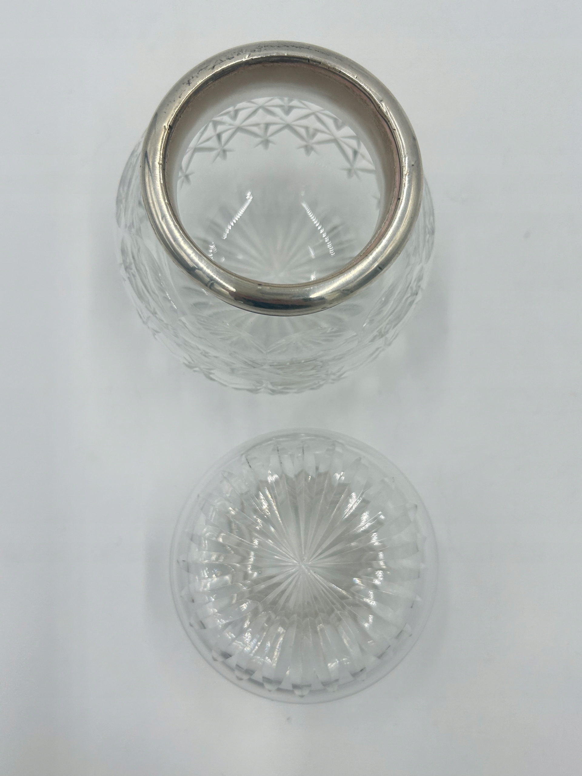 Предлагаю элегантную хрустальную емкость/кувшин из высококачественного граненого свинцового хрусталя, с оправой из серебра 925 пробы.