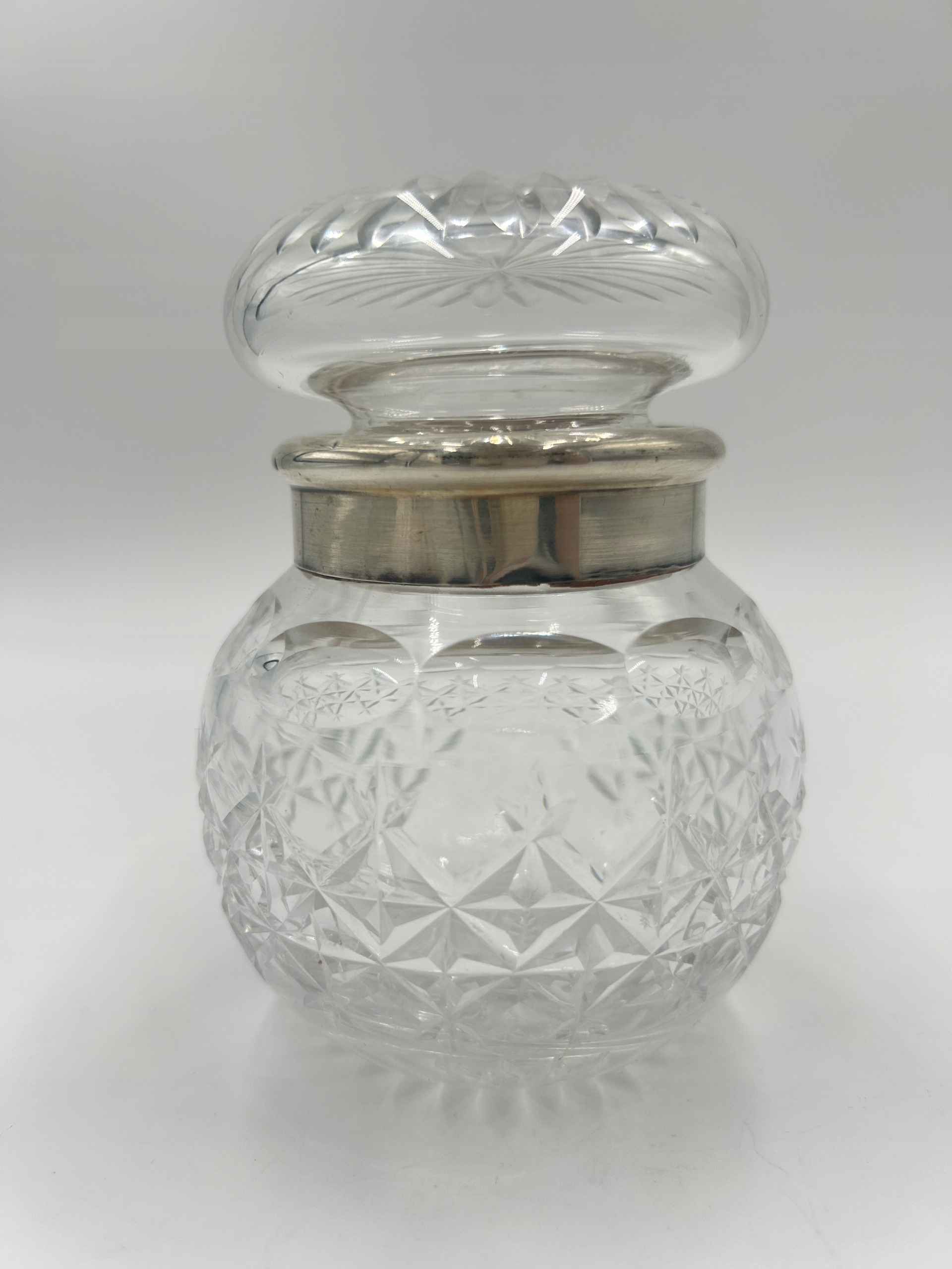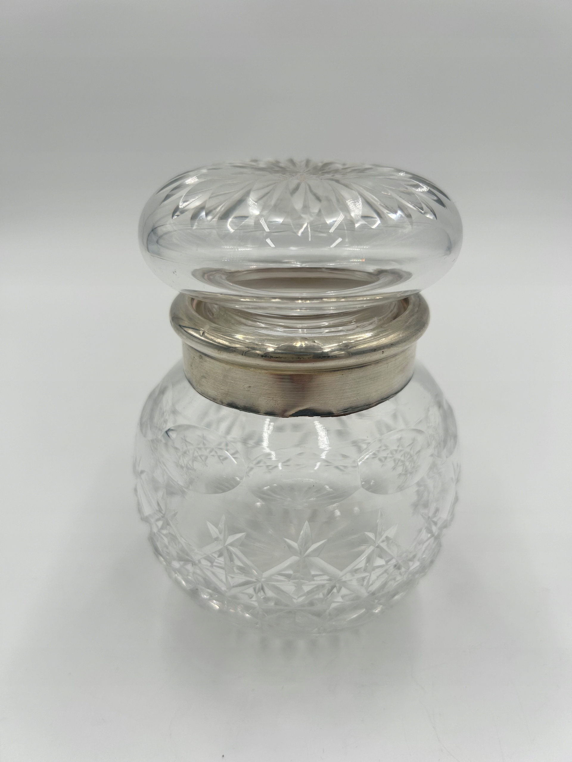 nmmt3 Элегантный хрустальный контейнер с серебряным горлышком, Лондон, 1919 г.