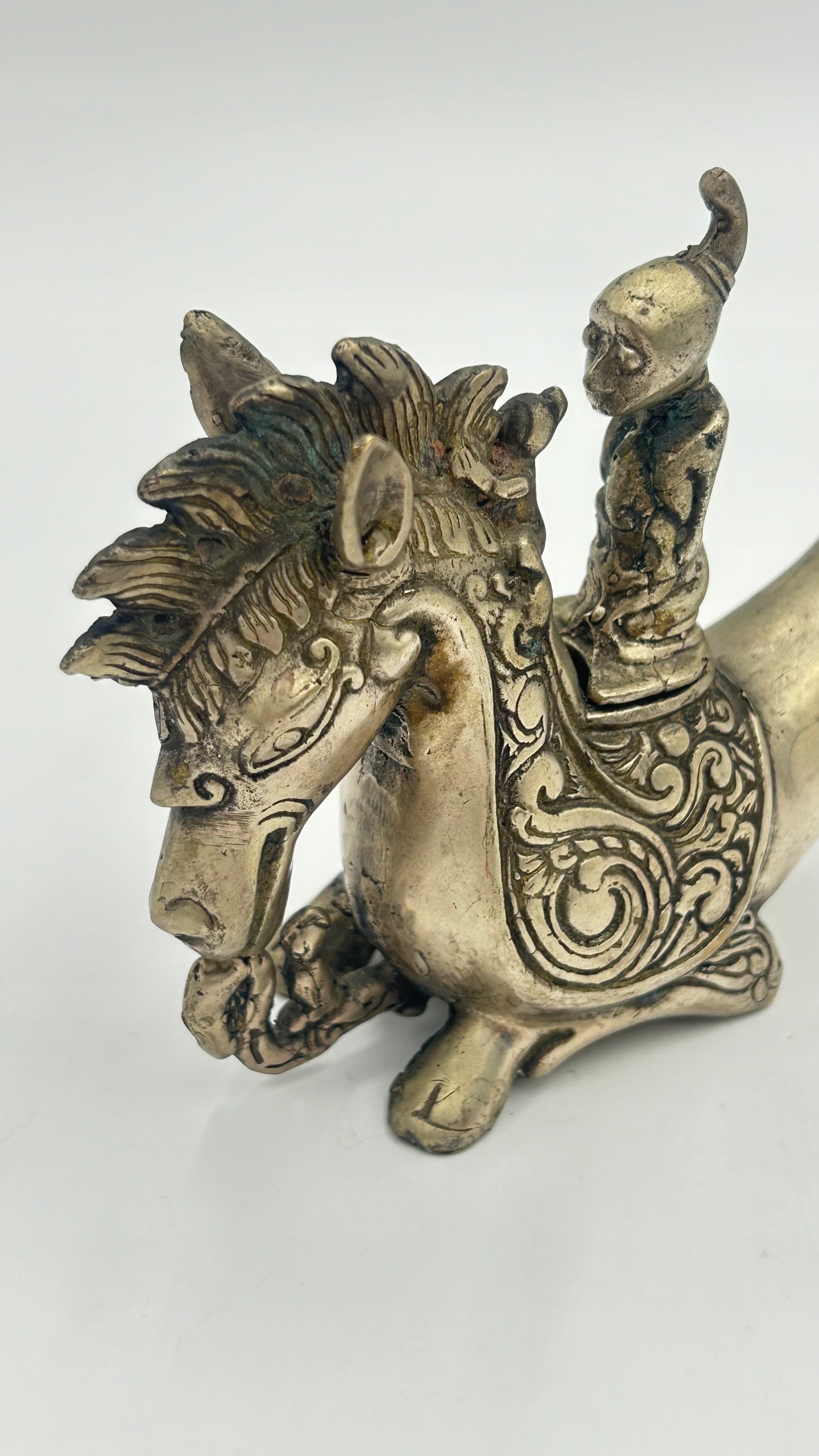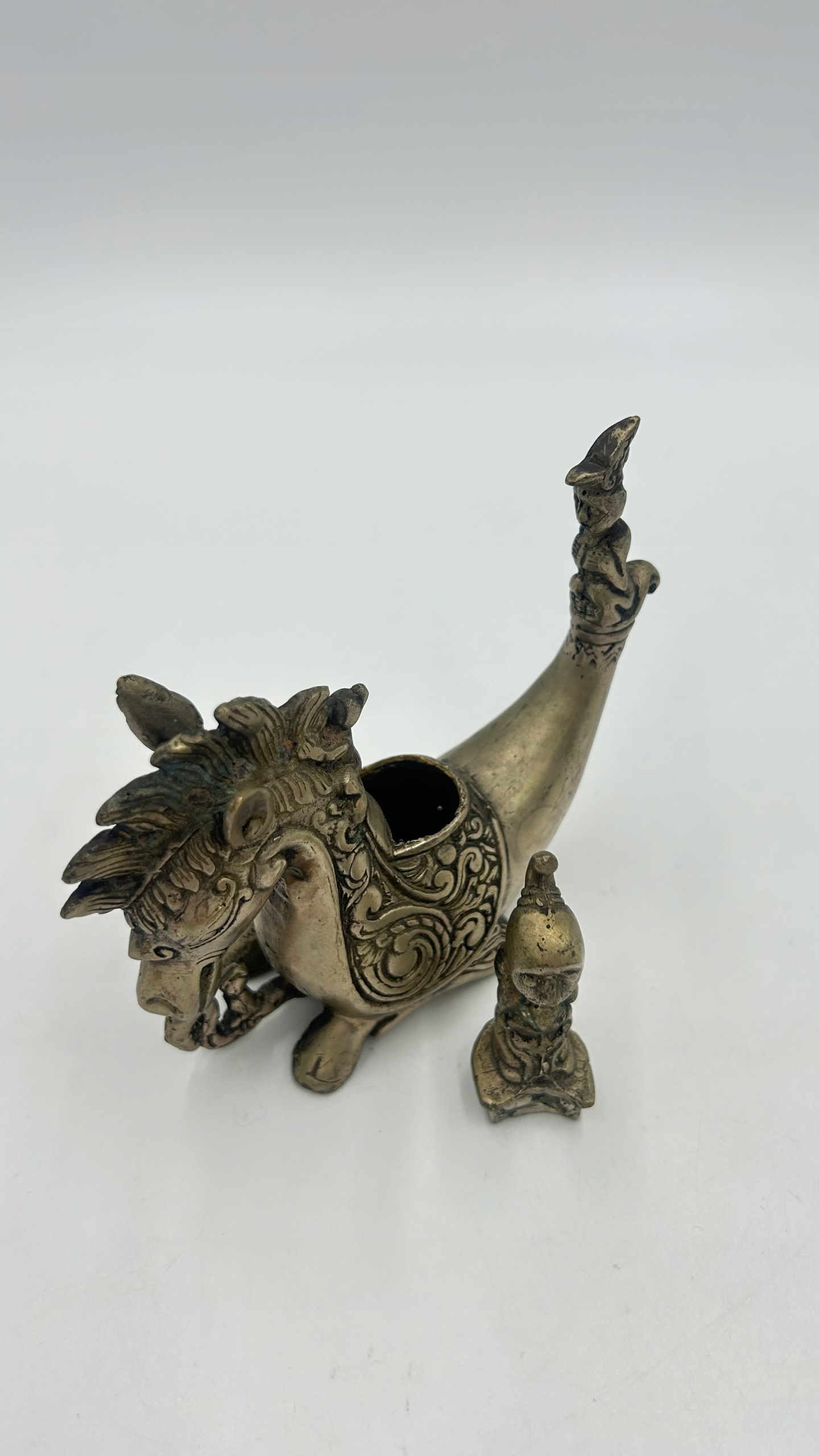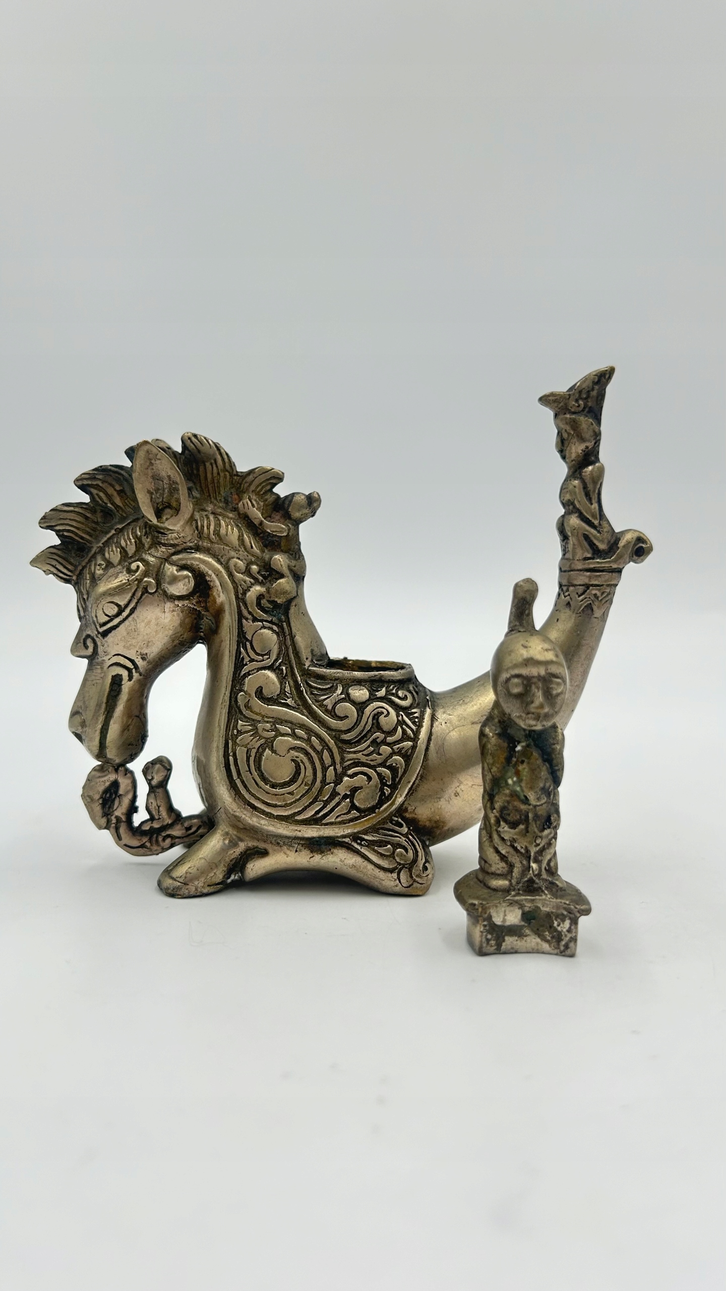 Объект имеет отверстие в верхней части, что указывает на его функцию. Изготовленный вручную, он отличается стилизованной, примитивной формой и племенными орнаментами.