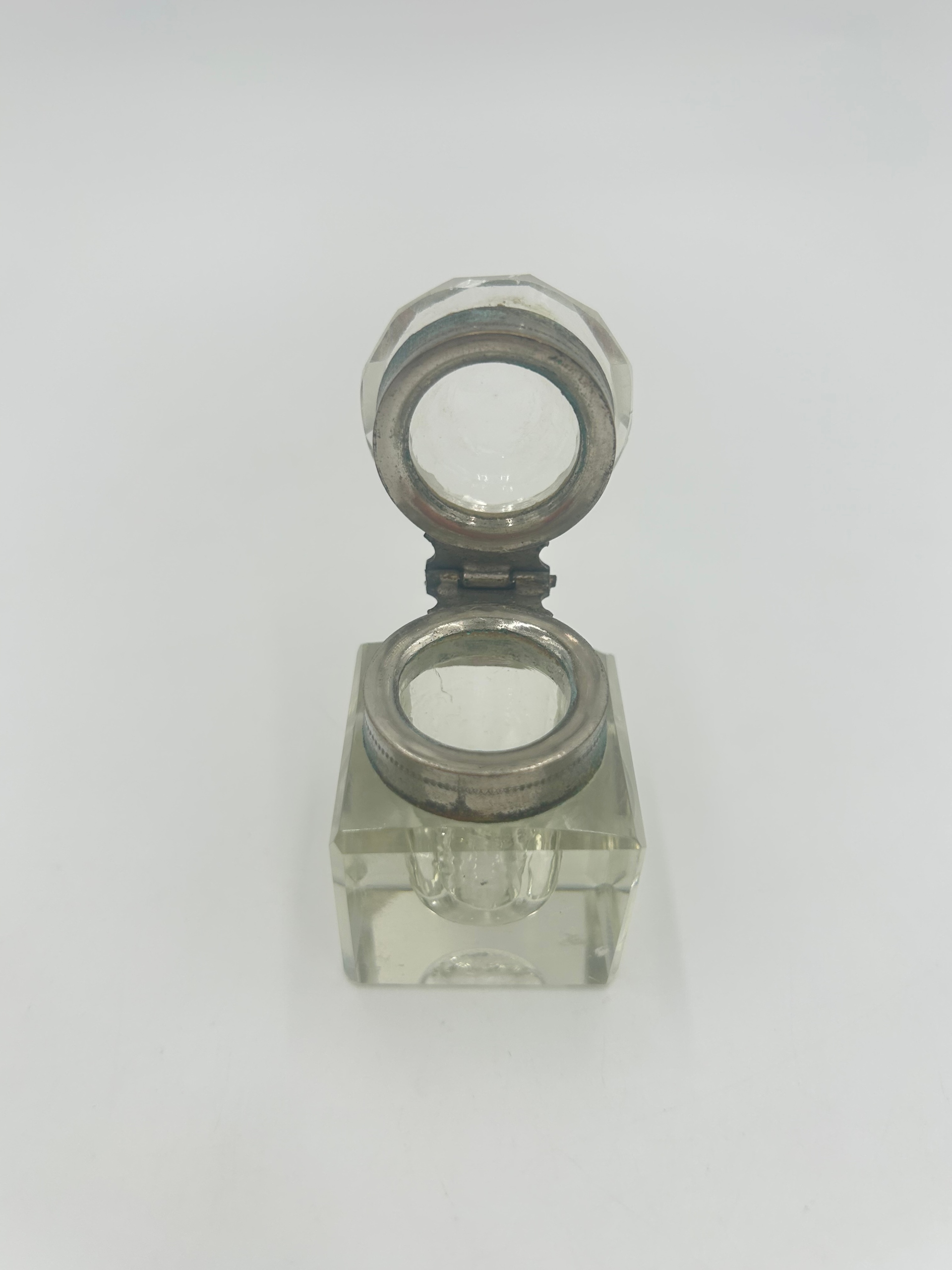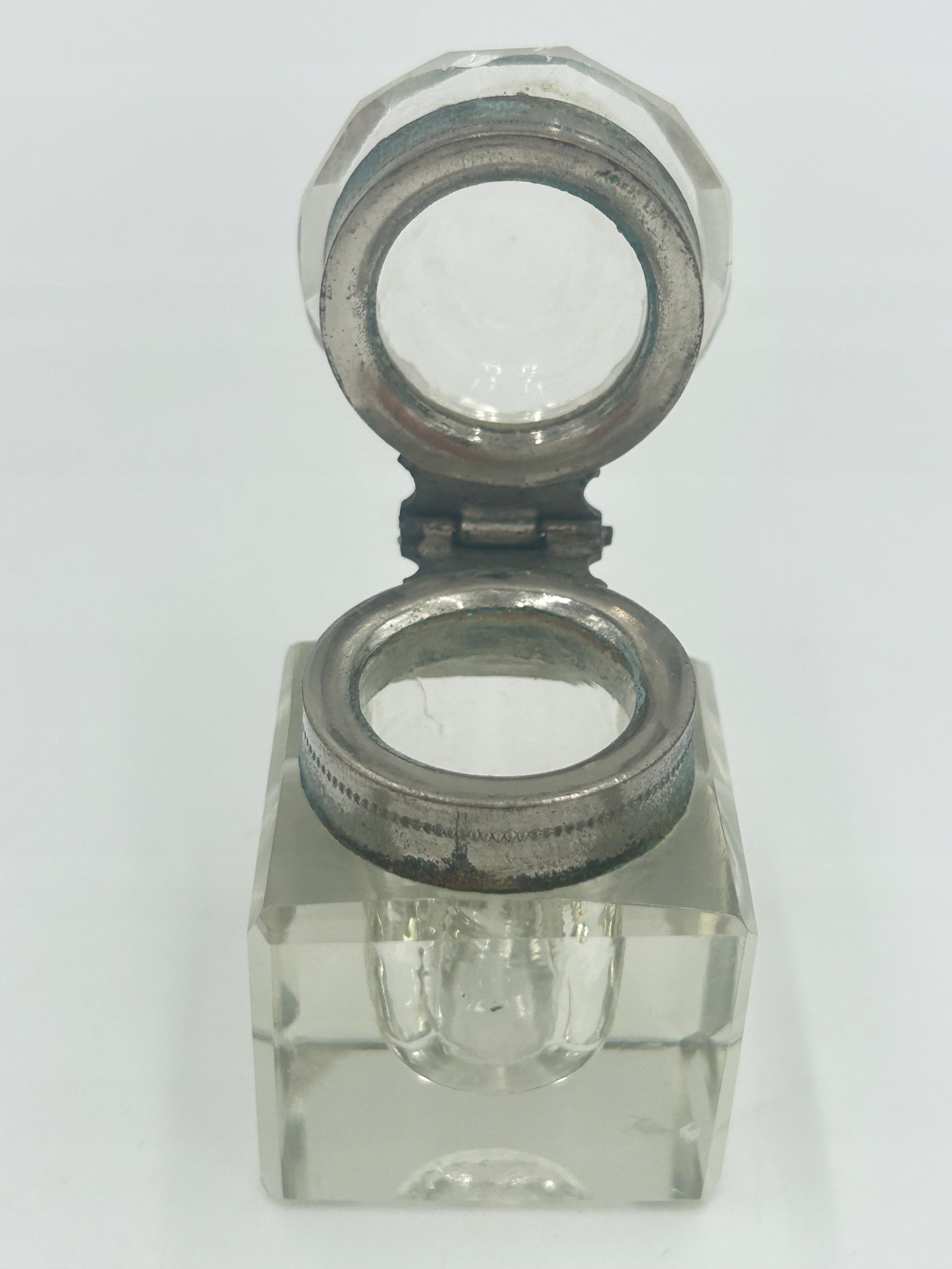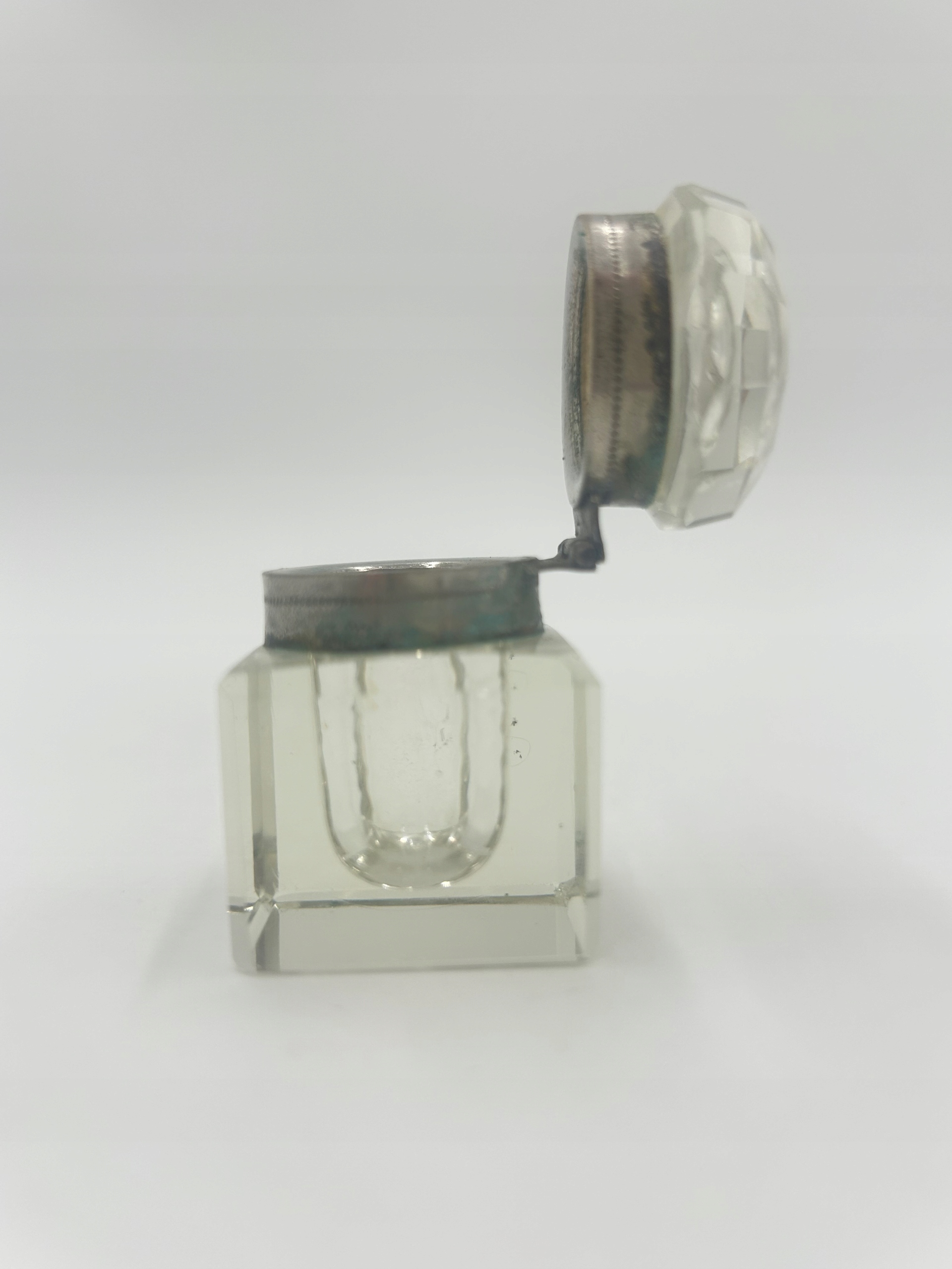 Уникальная хрустальная чернильница из толстого стекла с декоративной вырезкой. Красивая вещь, идеально подходящая для украшения стола.