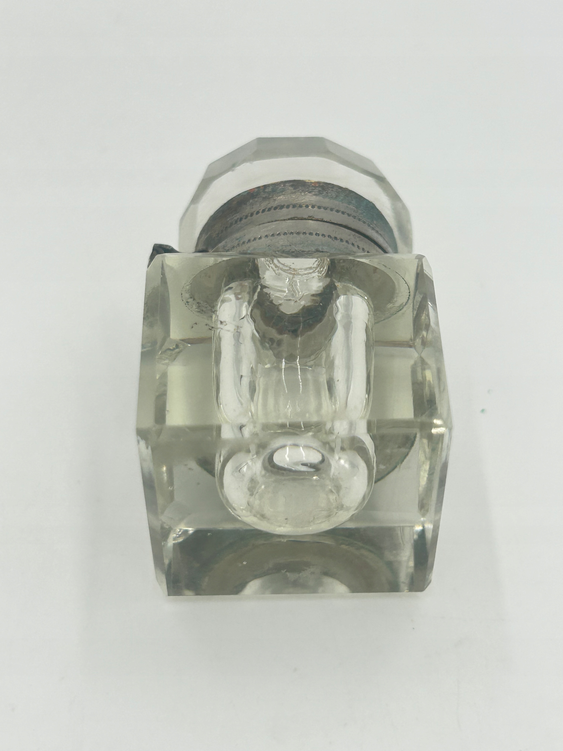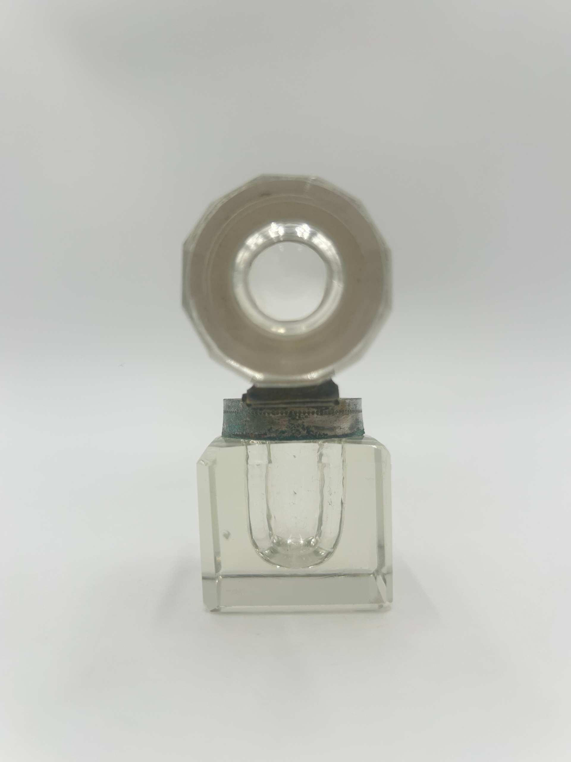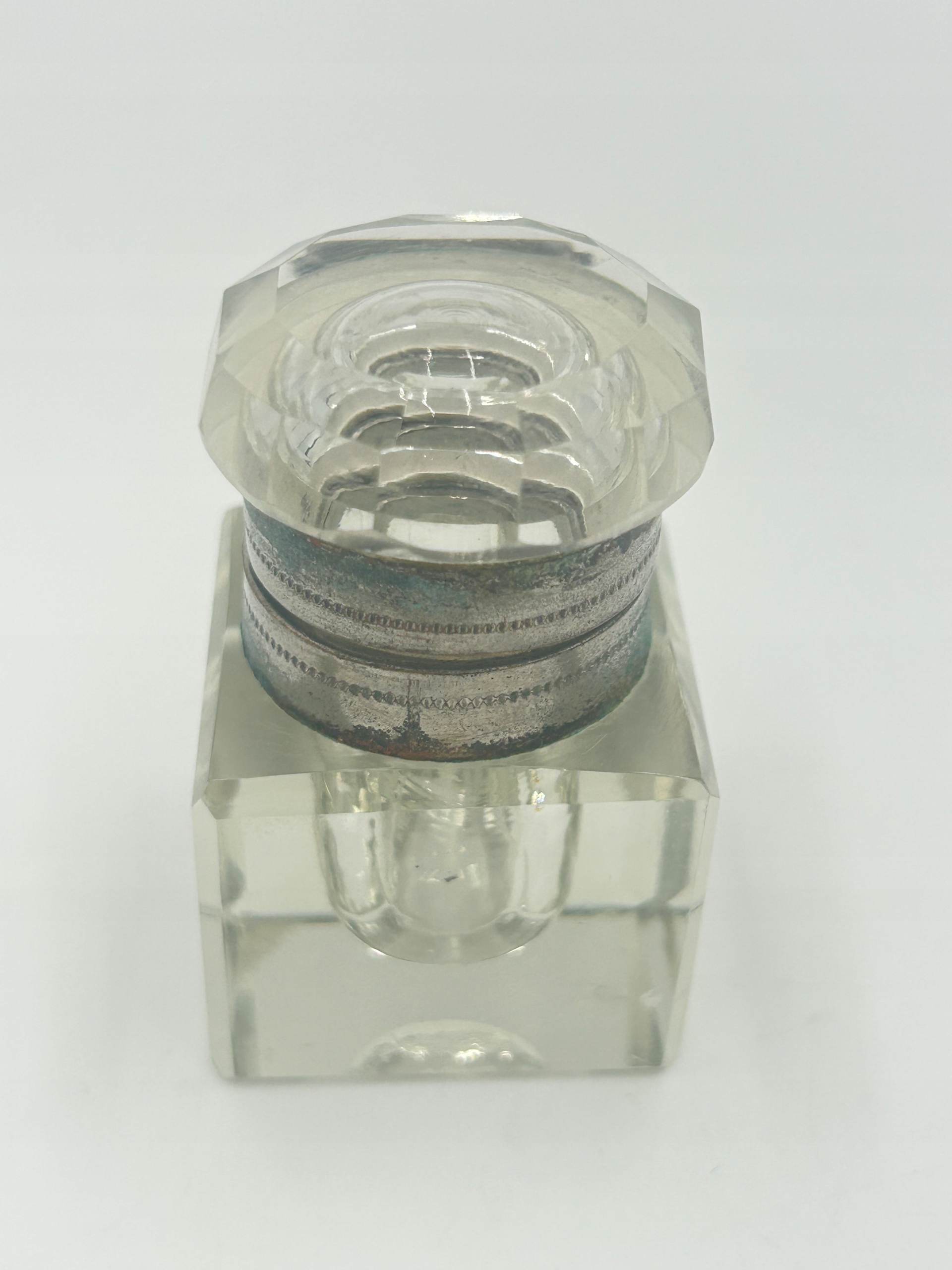 Уникальная хрустальная чернильница из толстого стекла с декоративной вырезкой. Красивая вещь, идеально подходящая для украшения стола.