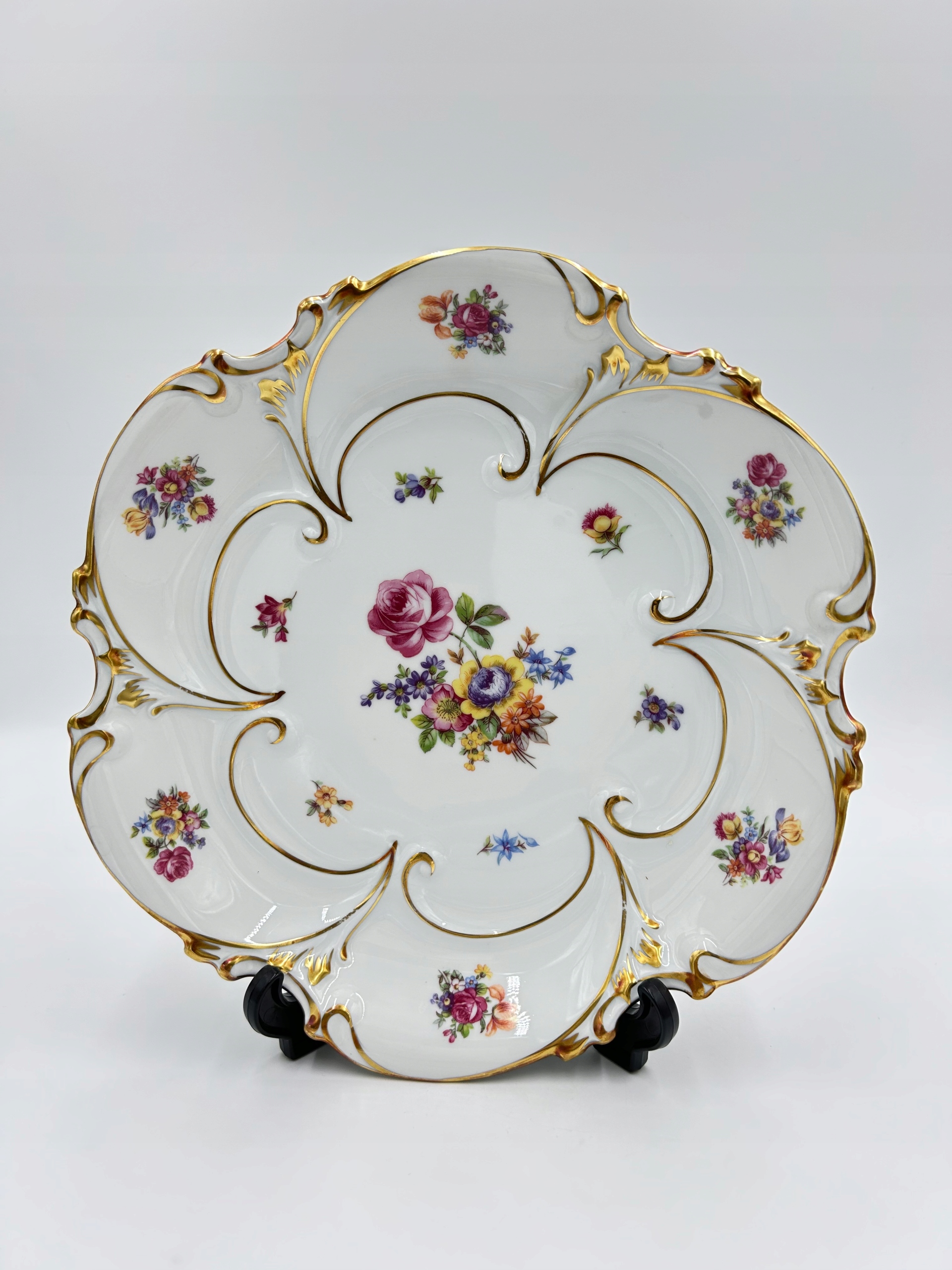 Предмет продажи — красивая большая тарелка производства фабрики ILMENAU. Красивое декоративное блюдо, которое украсит стол на любой вечеринке. Декорированная внутренняя часть и украшенный золотыми рельефами край подчеркивают ее уникальность и добавляют элегантности. Идеально подойдет в качестве подарка близкому человеку.