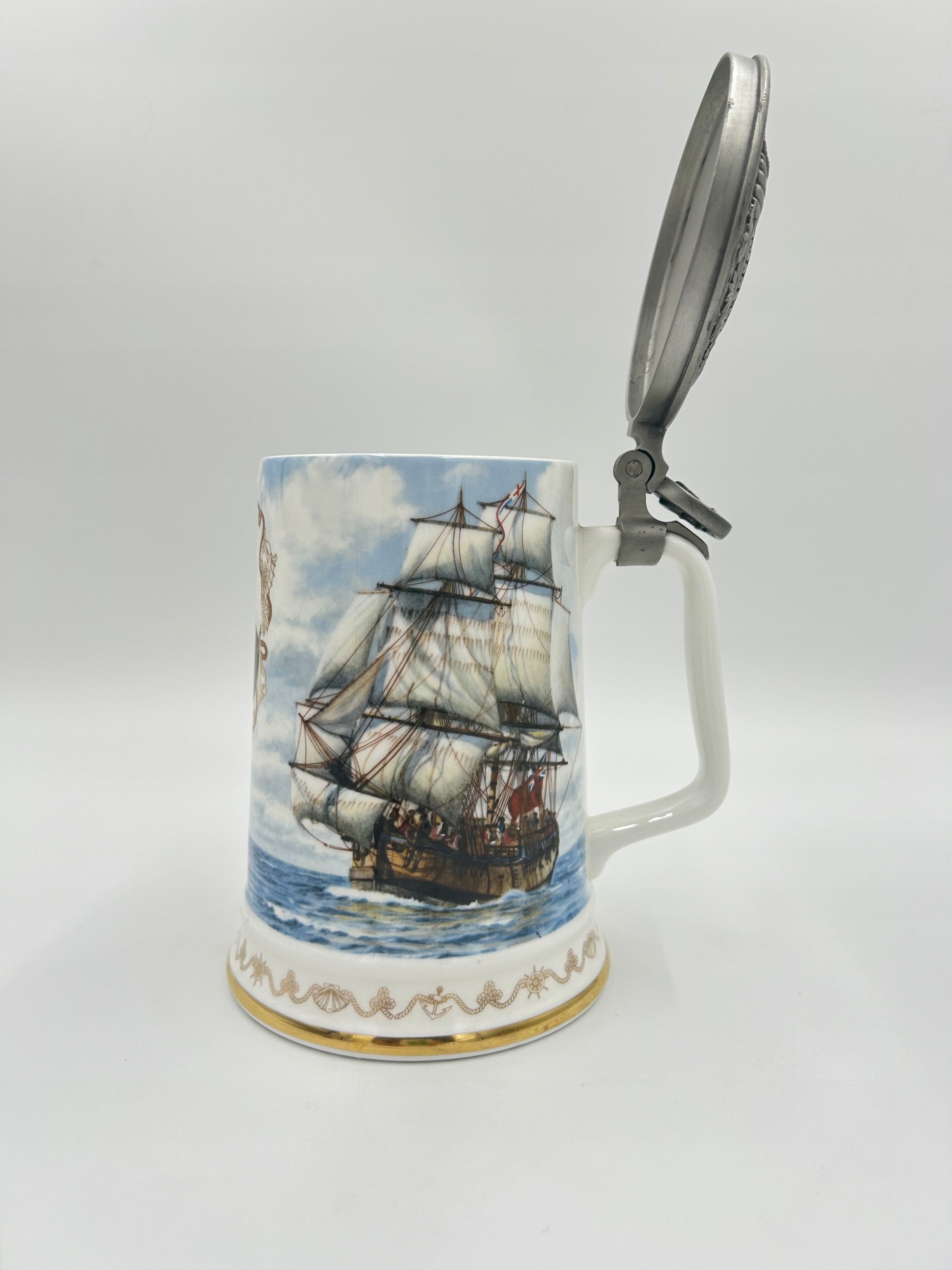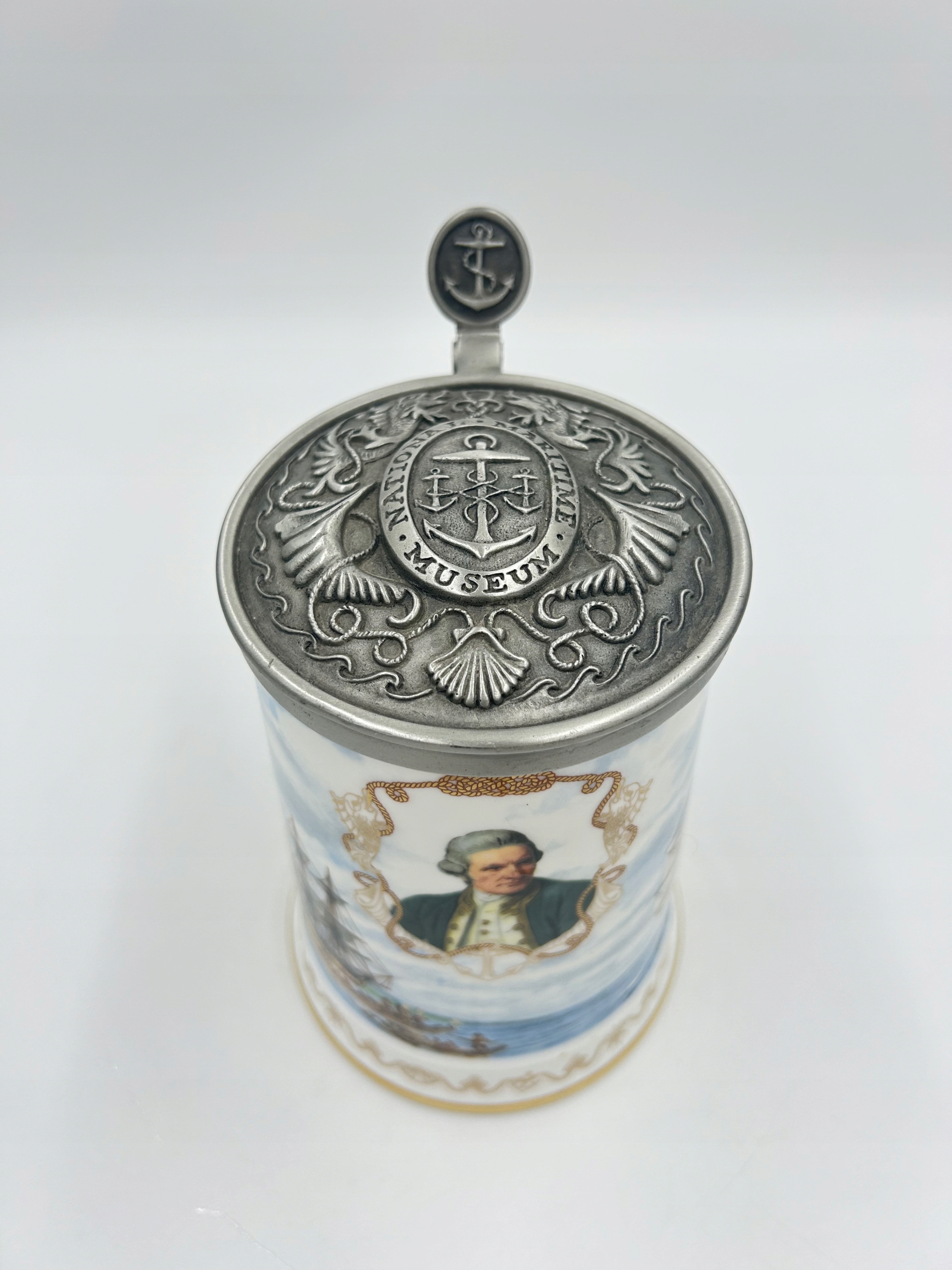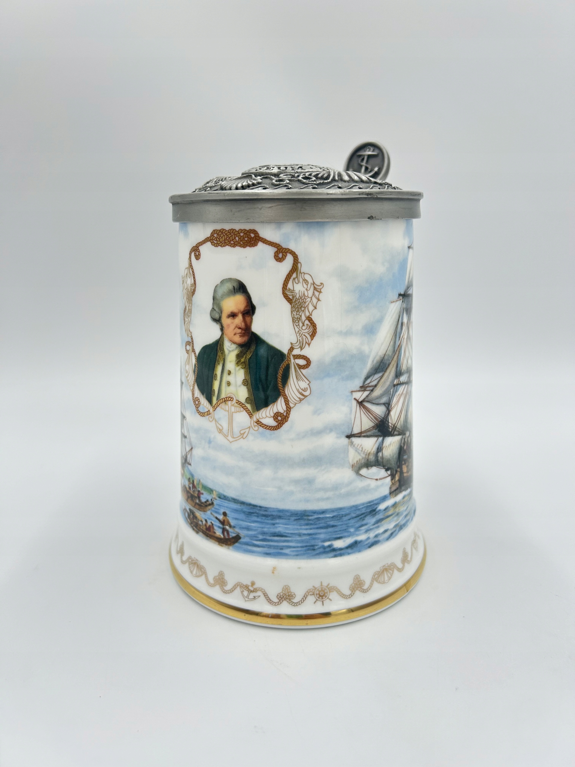Представляю вам коллекционную кружку с крышкой - «Путешествия Кука в южную часть Тихого океана». Кружка, украшенная изображением знаменитого английского моряка - Дж. Кука. Изготовлен из керамики, в жестяной обложке, декорирован. Автор Марк Р. Майерс.