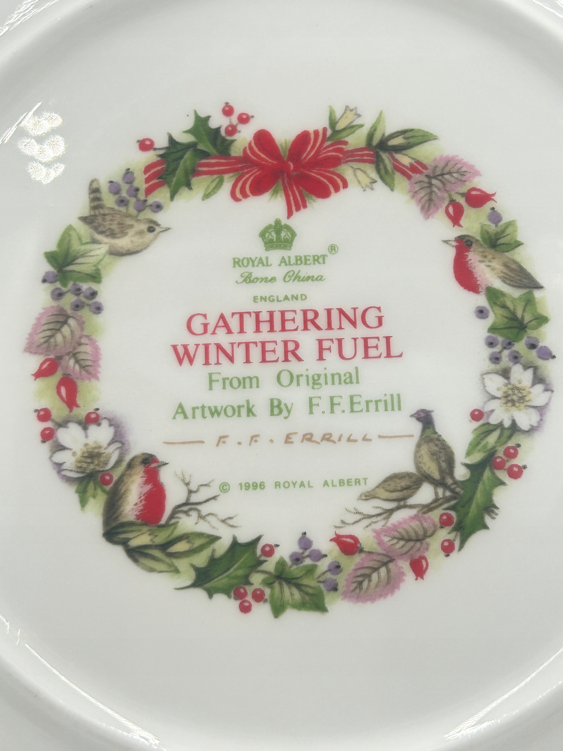 Объект продажи - тарелка Collector Royal Albert из рождественской коллекции F.F.Errill - Сбор зимний топливо. С их очарованием они сосредоточены на себе, представляя уютную семейную атмосферу в интерьере. Тонкий декоративный элемент для людей, которые ценят элегантность и гармонию цветов. Жемчужина английского любителя фарфора.