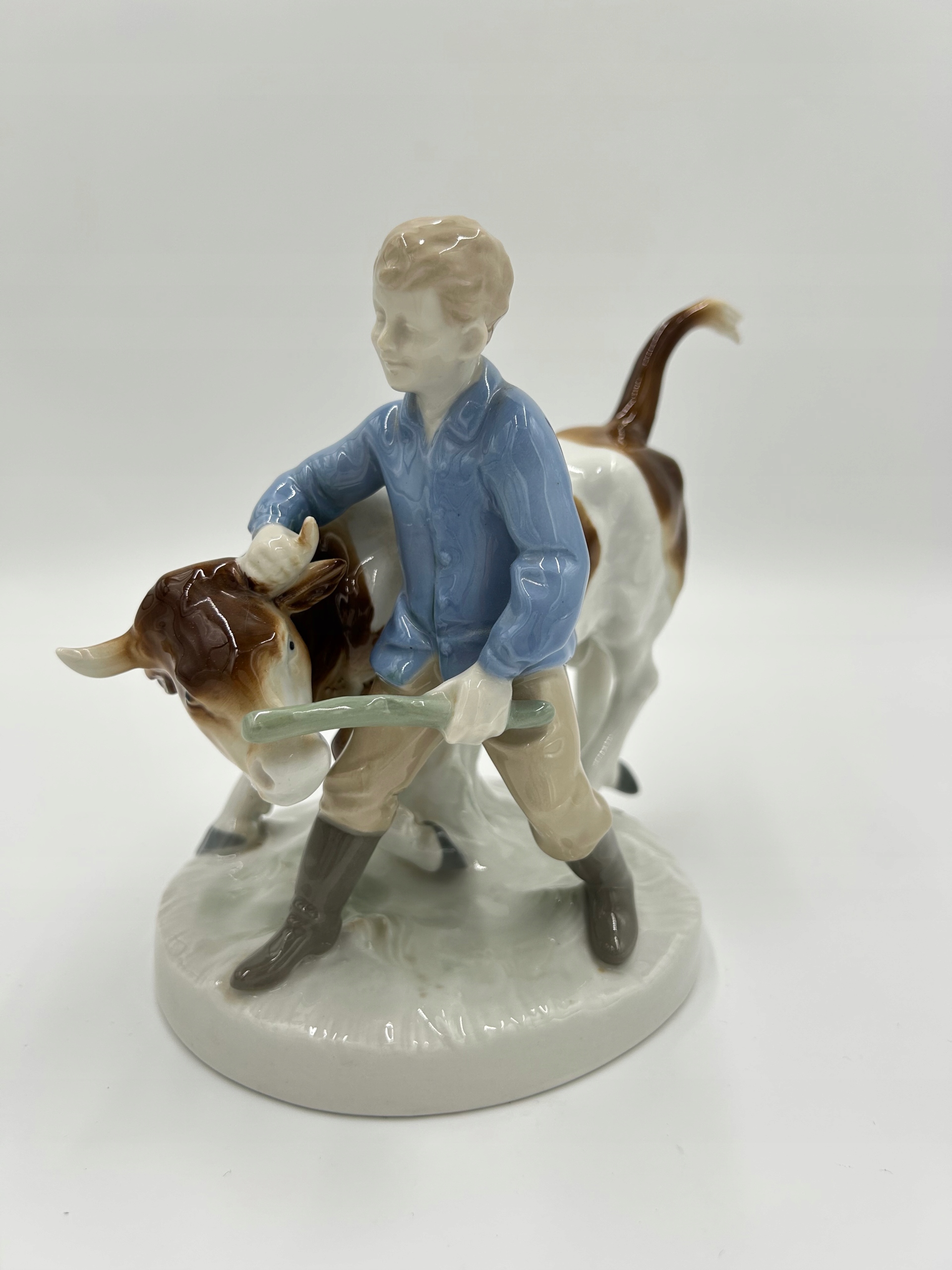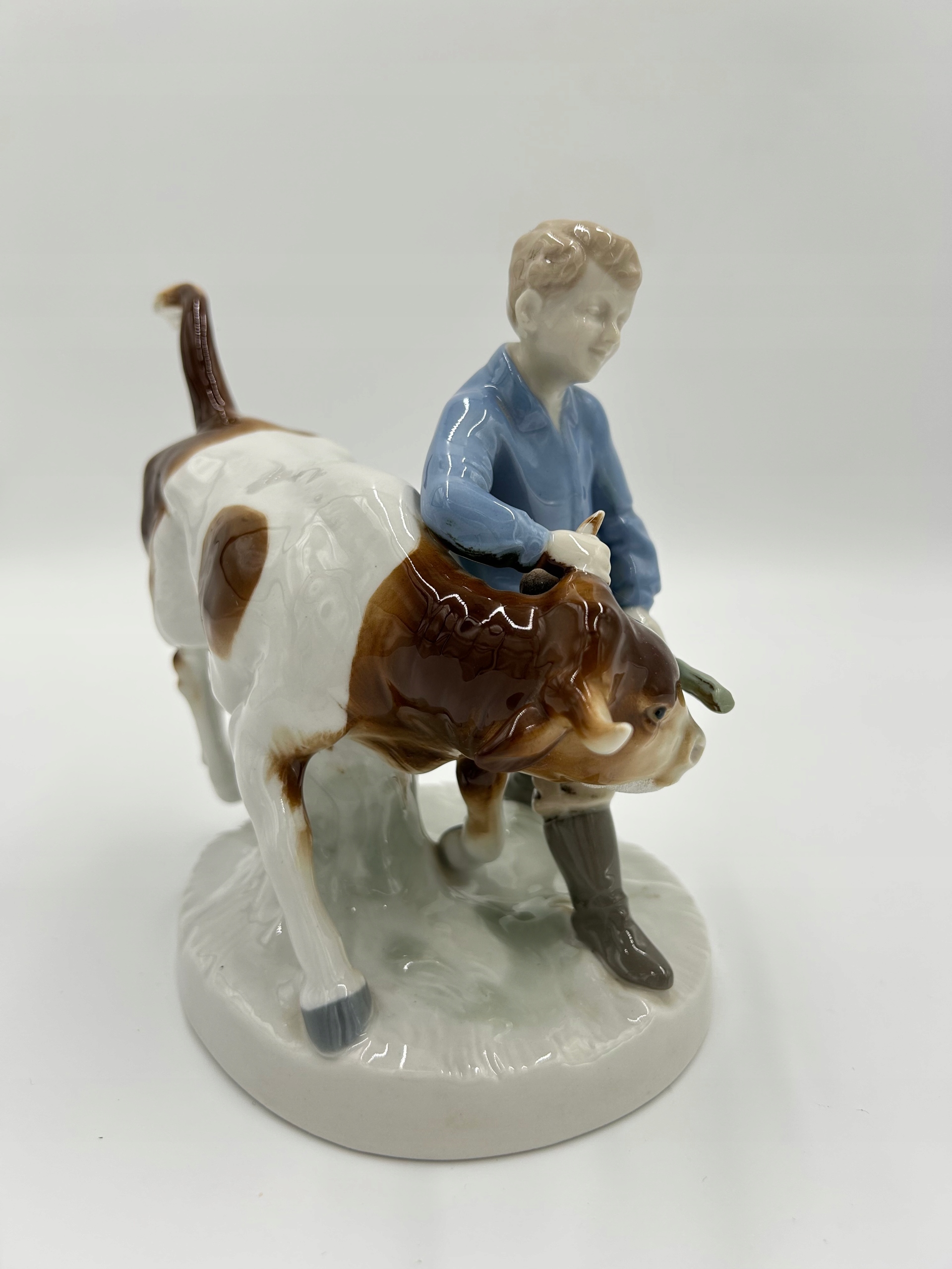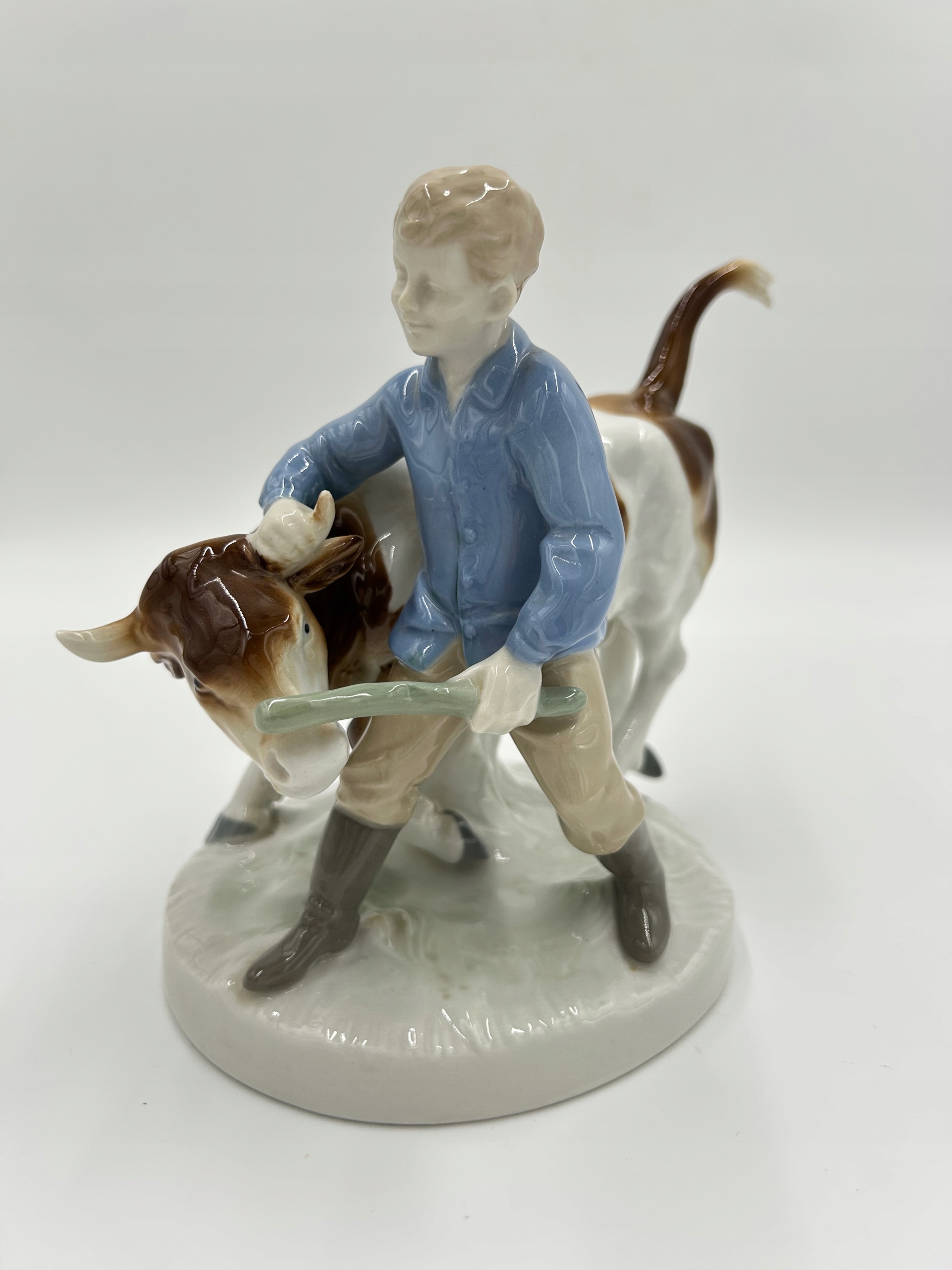 Я представляю вам статуэтку, изображающую мальчика с коровью. Статуэтка с большим вниманием к поддержанию деталей. Держите в спокойном, приглушенном цвете, который добавляет элегантность и деликатесу статуэтки. С его очарованием и деликатесом фокусируется внимание.