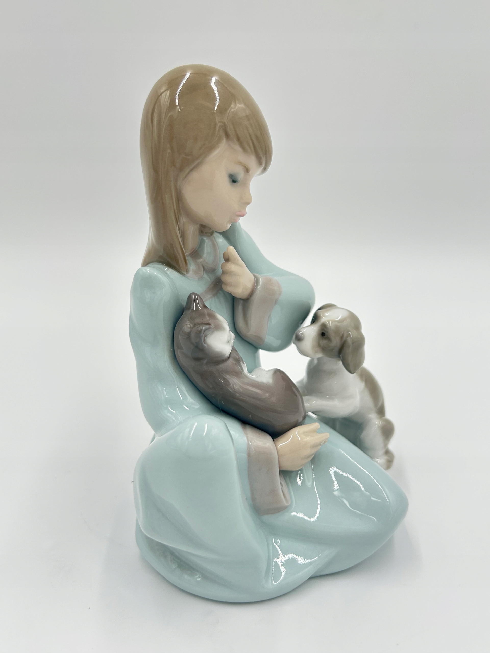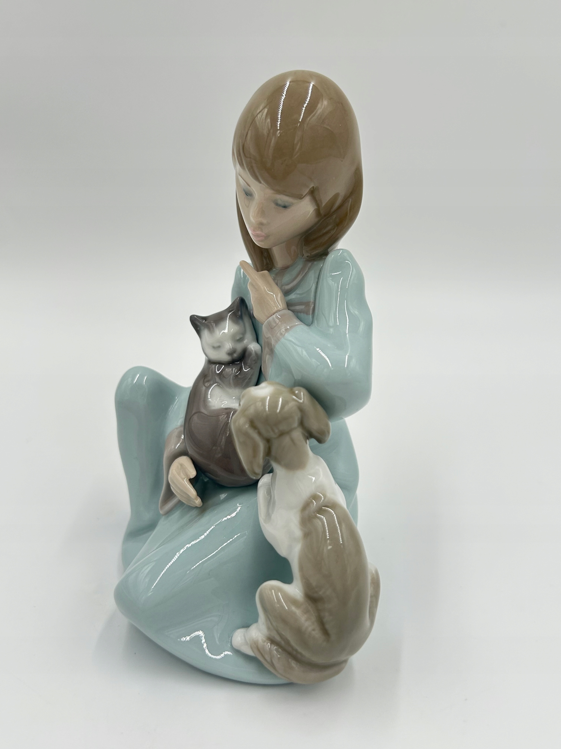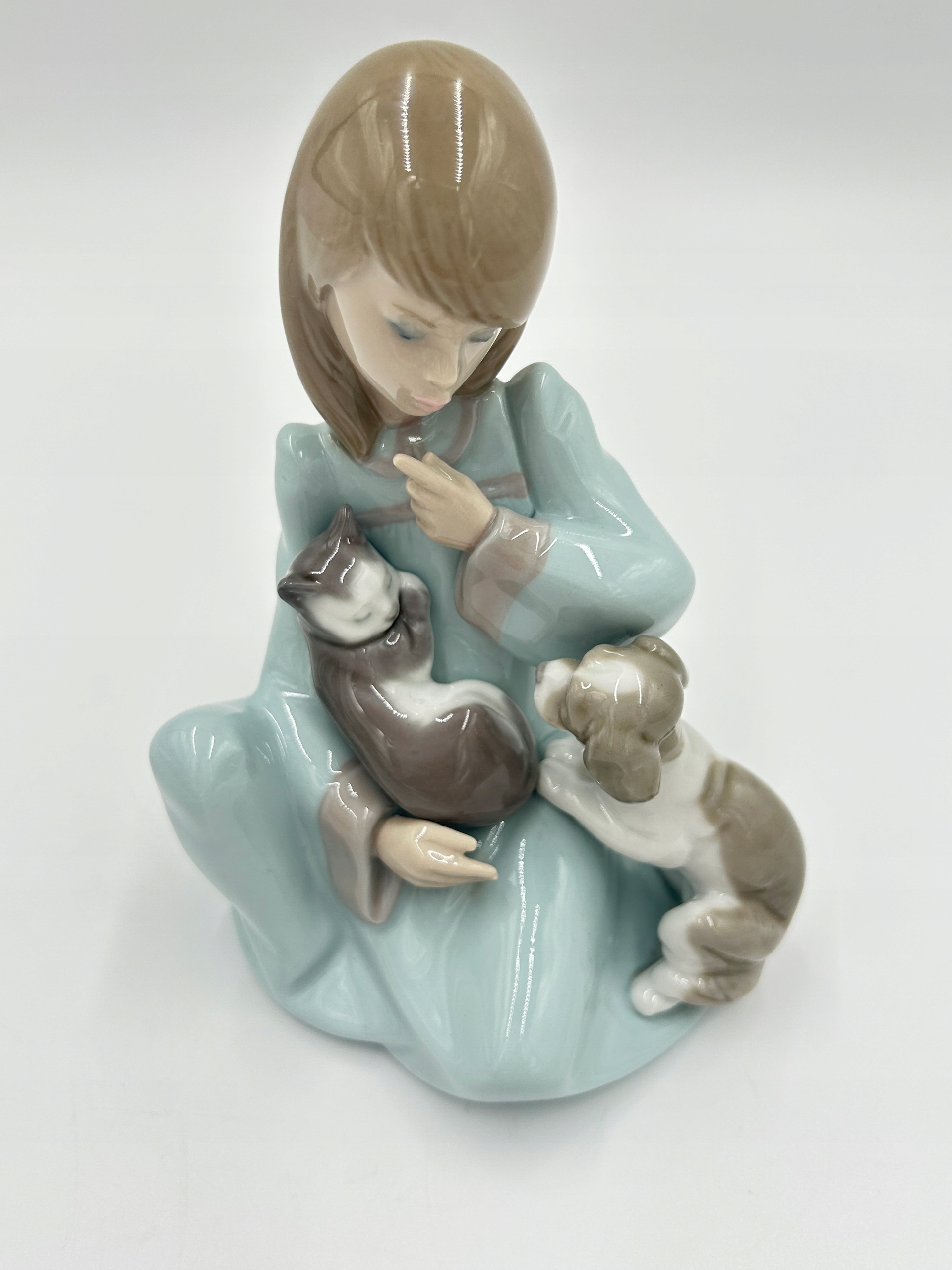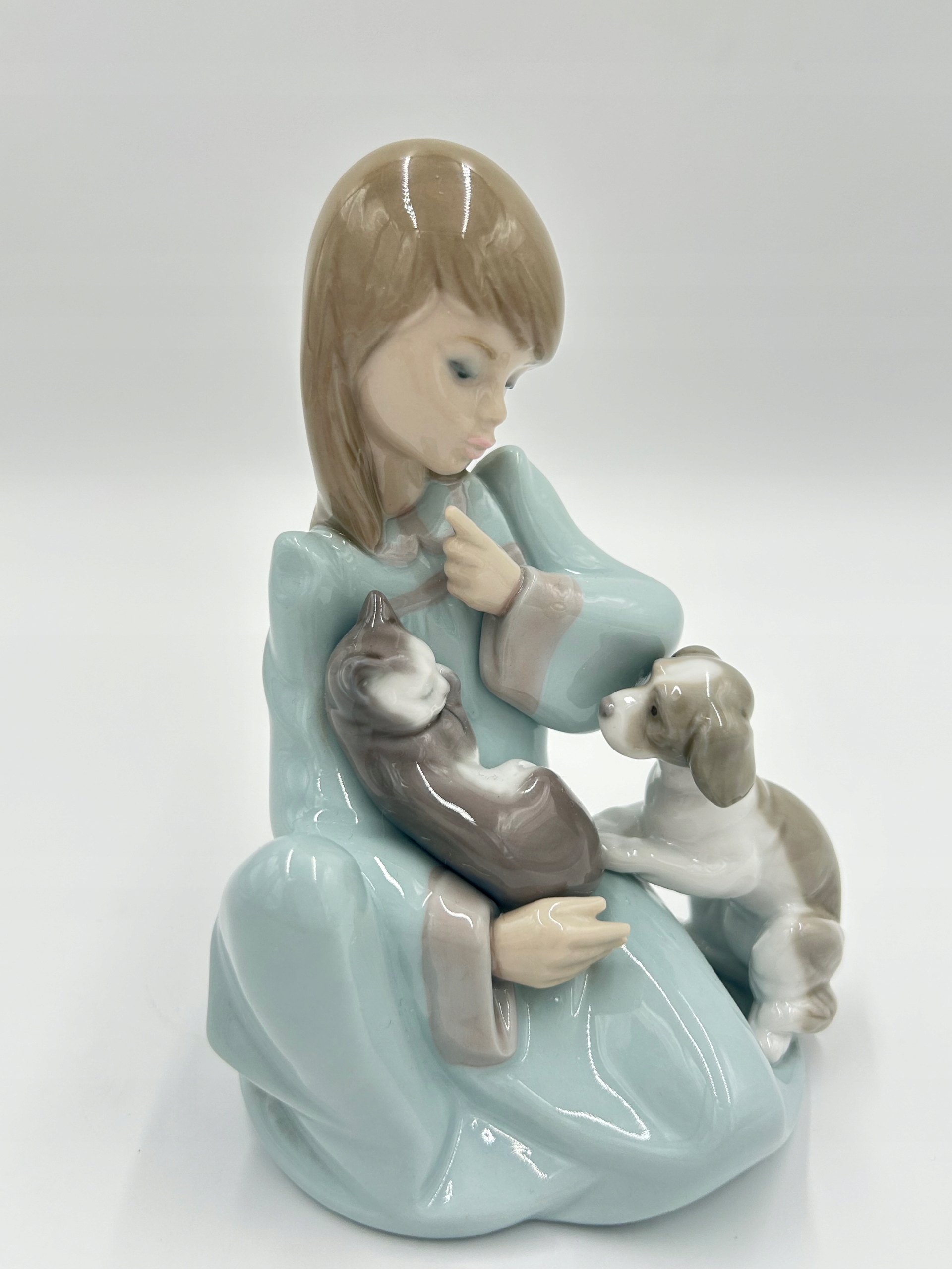 Объект продажи - очаровательная статуэтка испанской мастерской lladro - девушка со скрытым котенком и собакой.