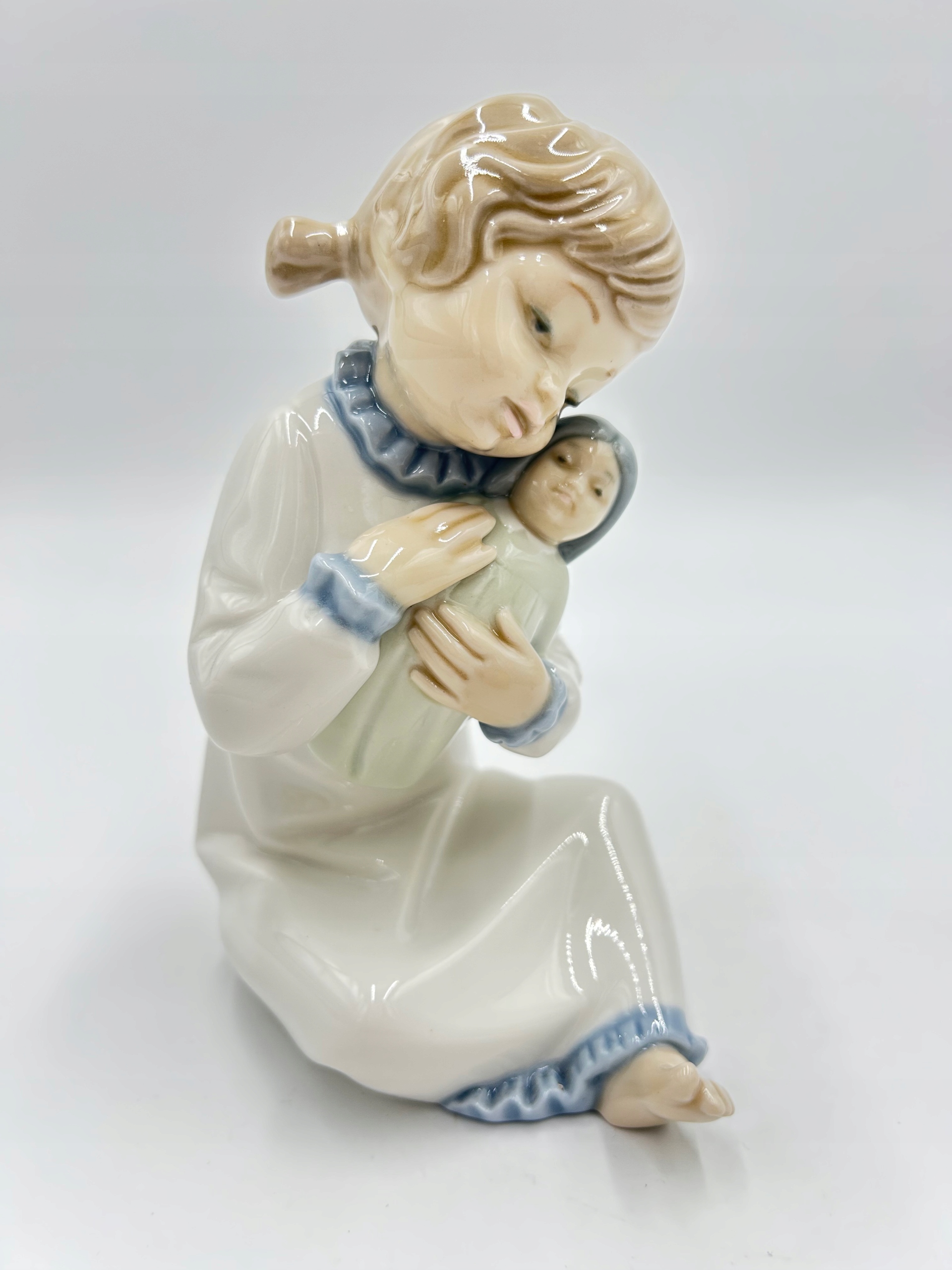 Объект продажи - очаровательная статуэтка испанского производства lladro nao - изображающая девушку, обнимающую куклу.