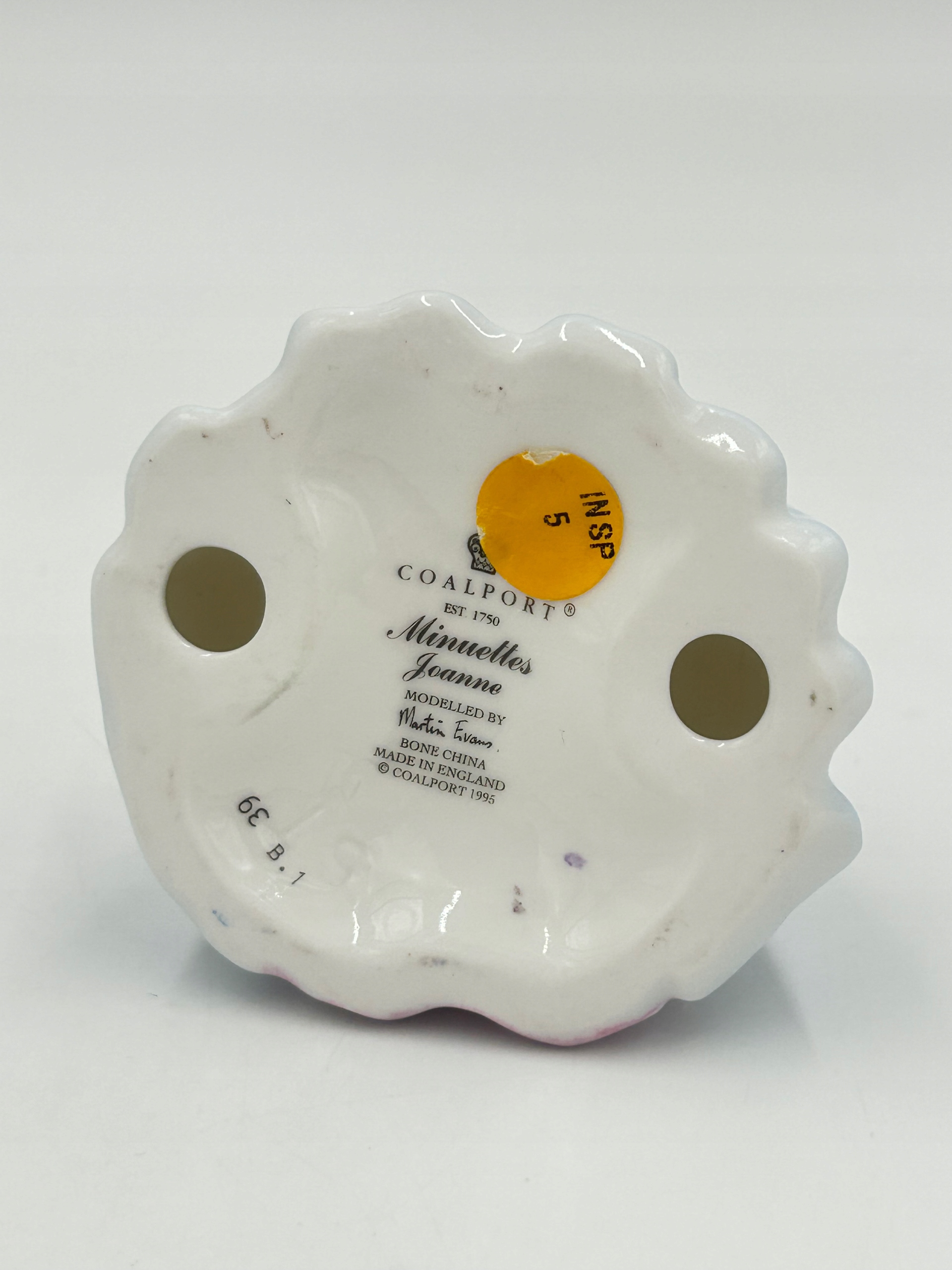 Предлагаю элегантную коллекционную статуэтку Coalport Minuettes "Joanne", выполненную из высококачественного костяного фарфора. Модель разработана художником Мартином Эвансом, а клеймо 1995 года подтверждает ее оригинальность и происхождение от известной английской мануфактуры Coalport (основана в 1750 году).