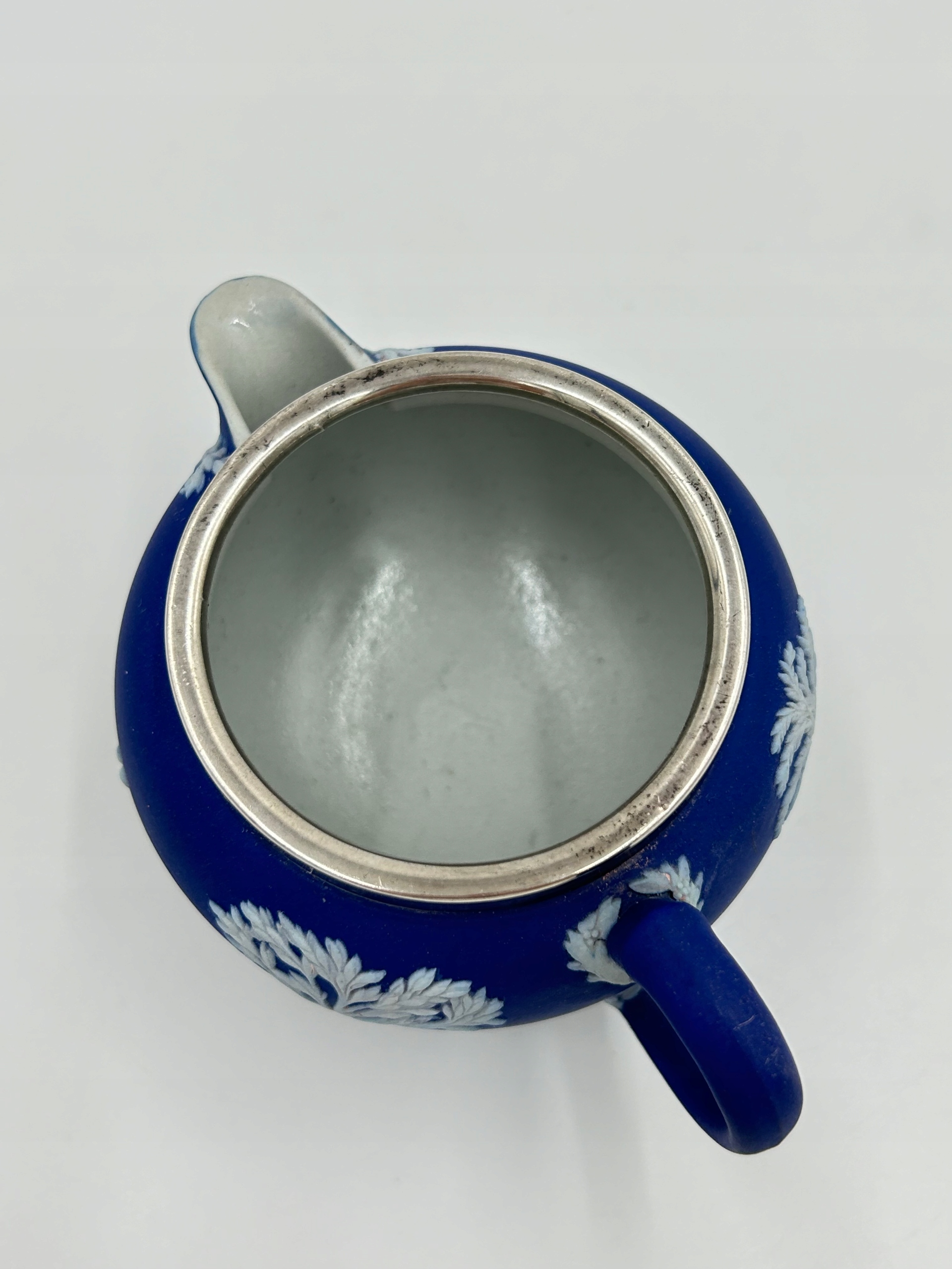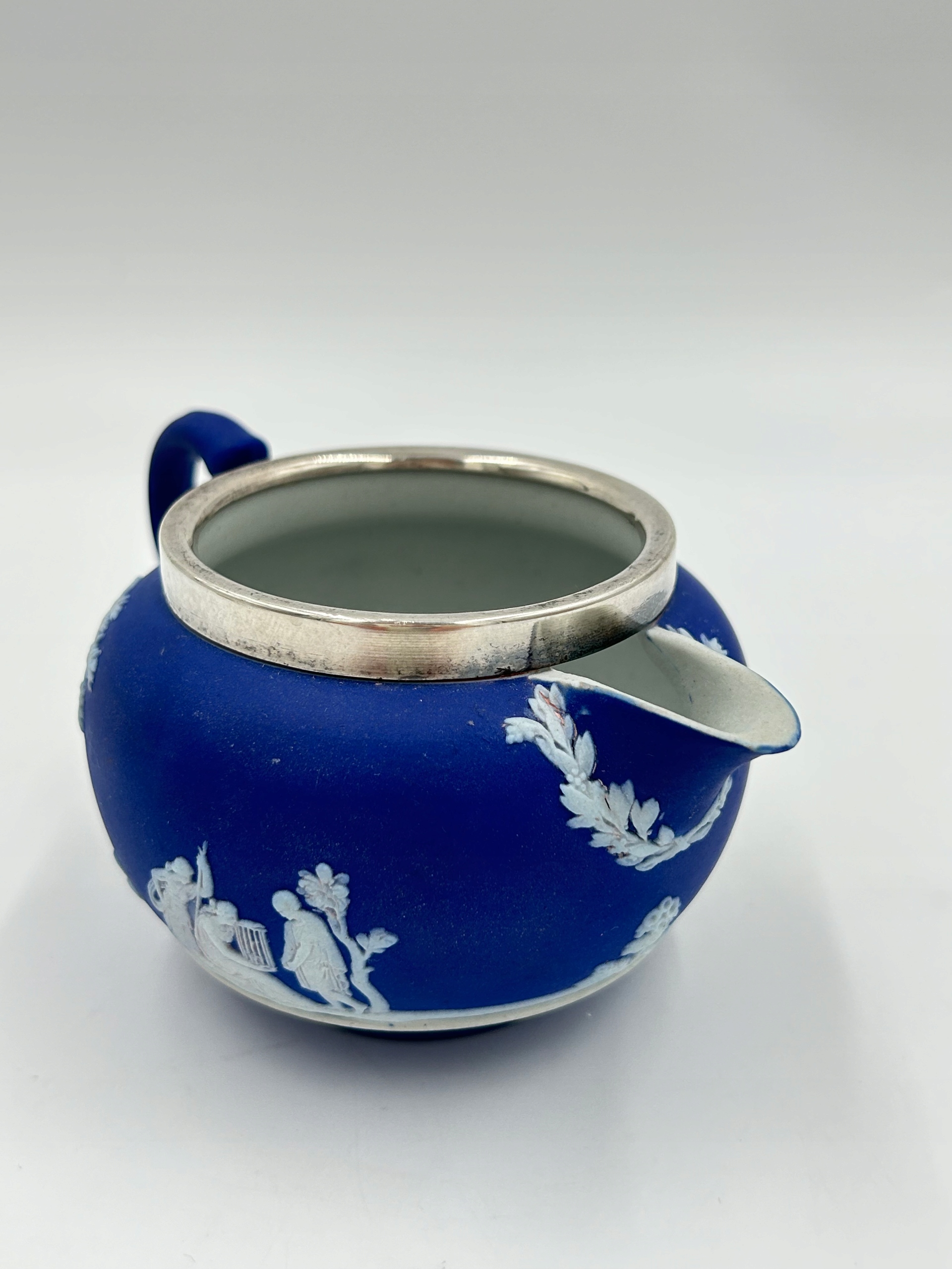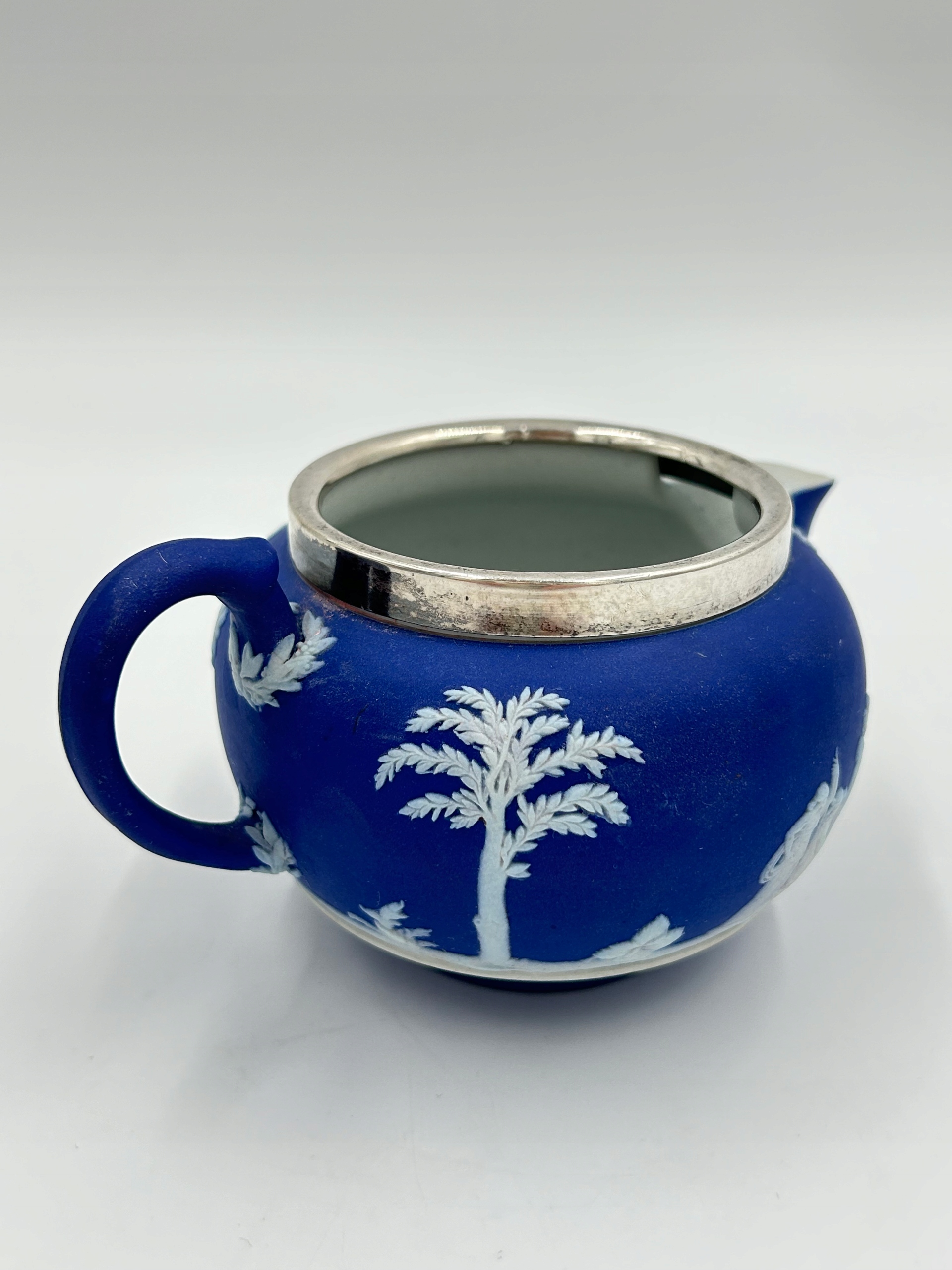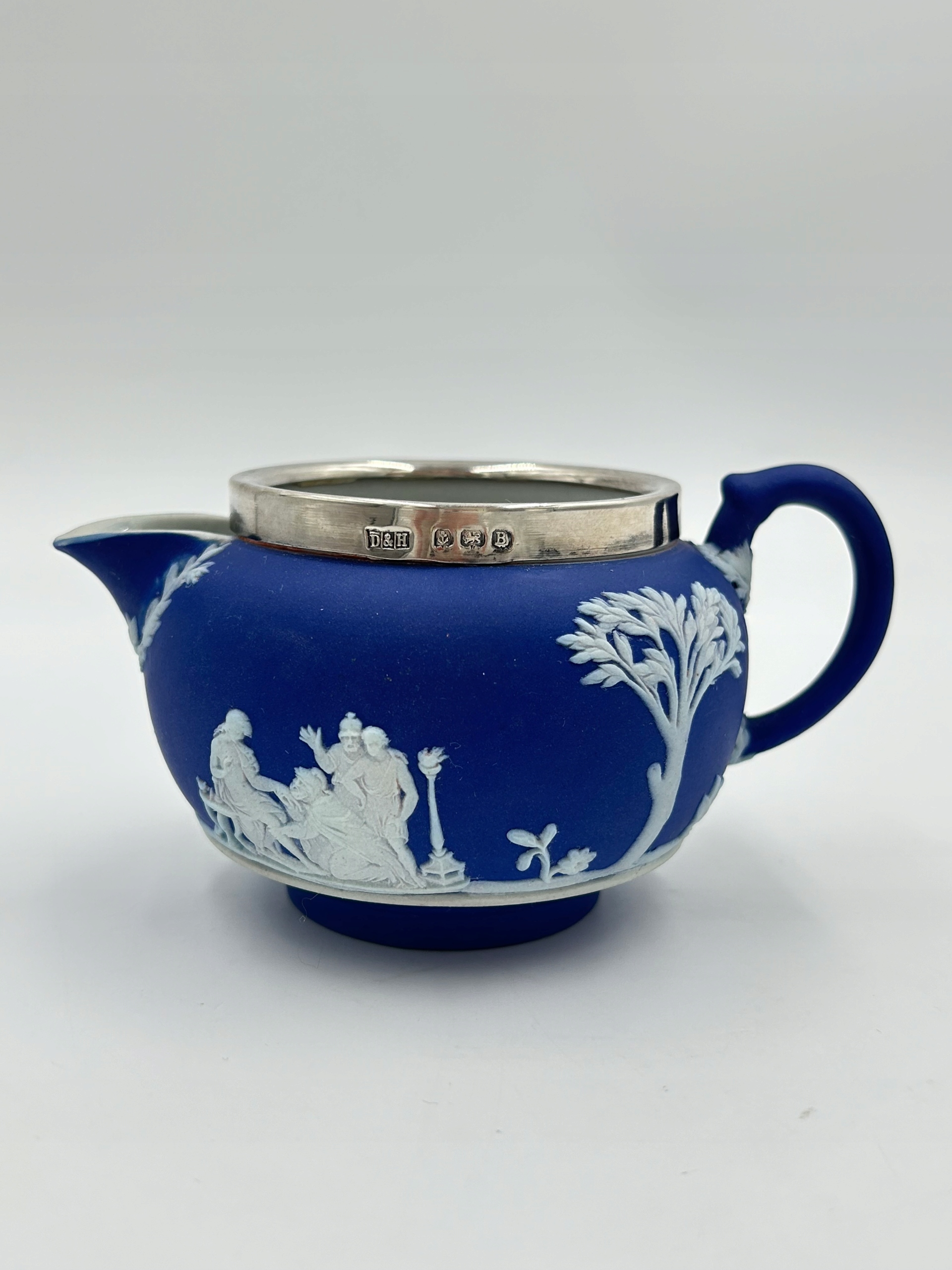 Представляю вам уникальный кувшин-молочник с серебряным ободком, изготовленный известной и уважаемой английской компанией Wedgwood Jasperware, который с 1772 года очаровывает коллекционеров и любителей своим неповторимым шармом.