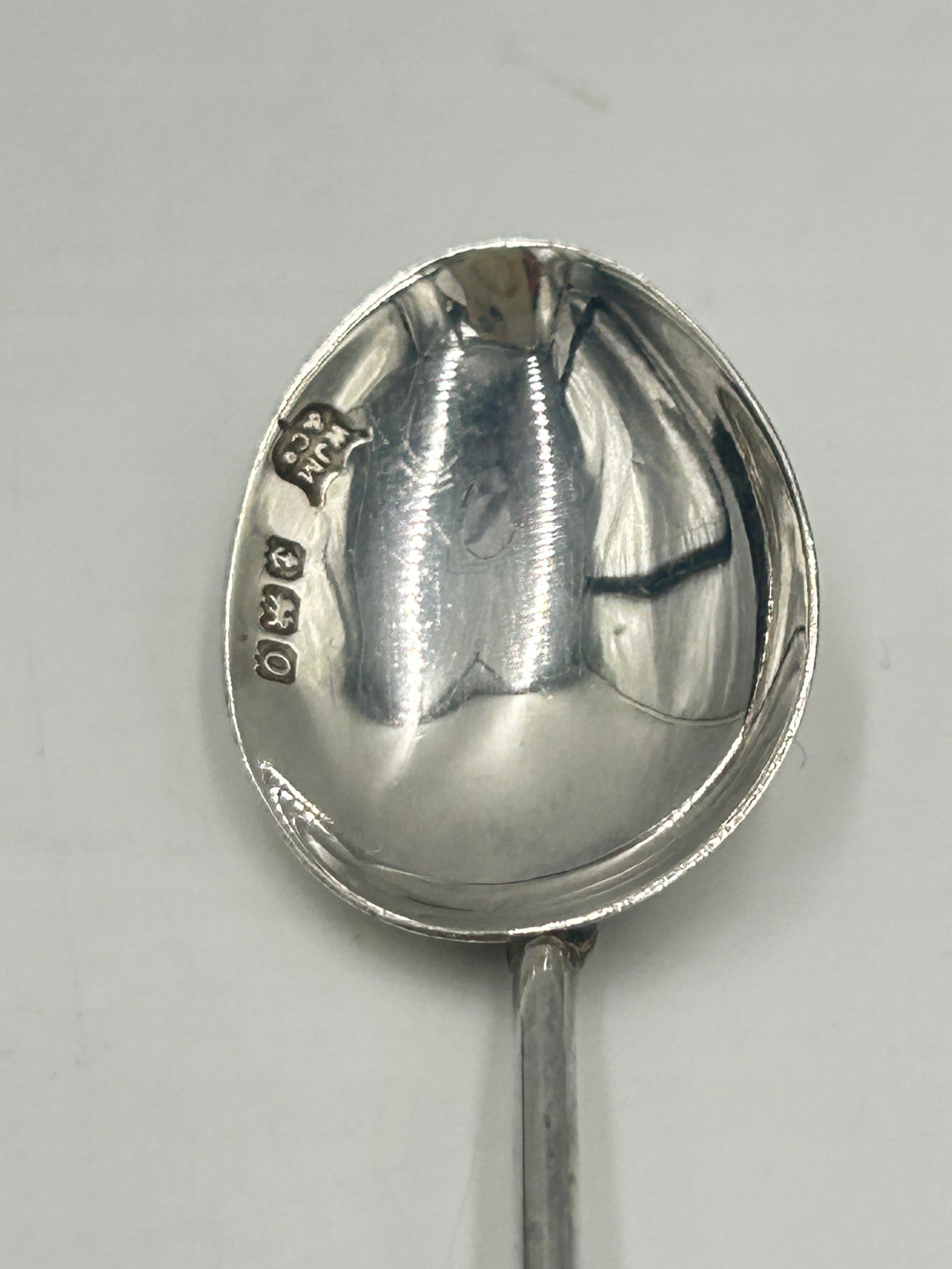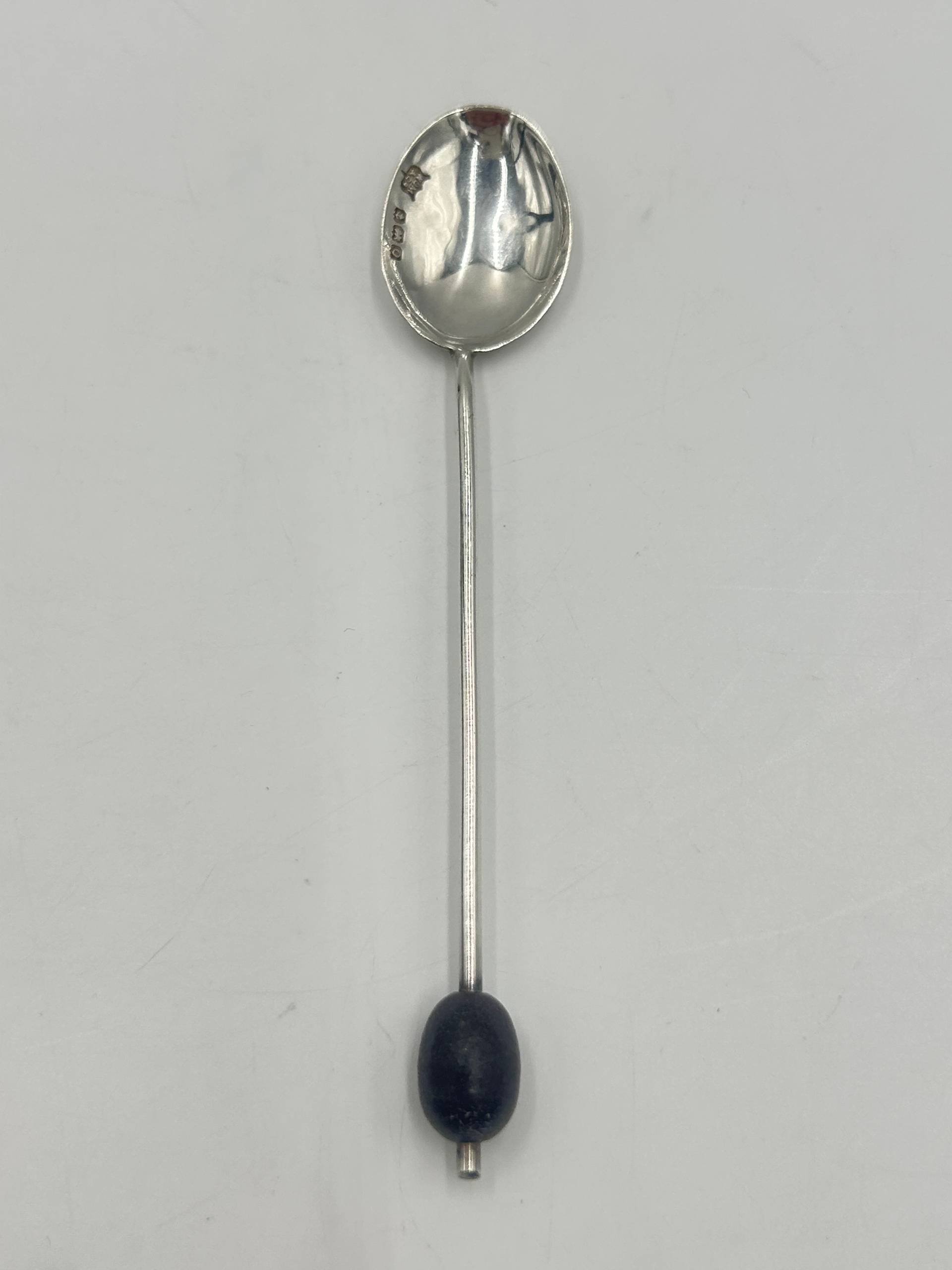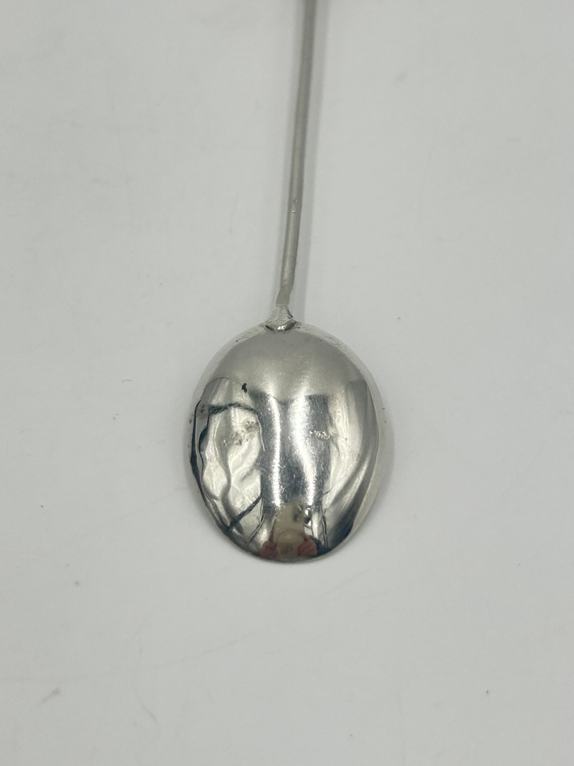 На каждой ложке проставлено английское клеймо, подтверждающее подлинность серебра. Чаши ложек классически закруглены, а ручка заканчивается декоративным элементом, напоминающим кофейное зерно.