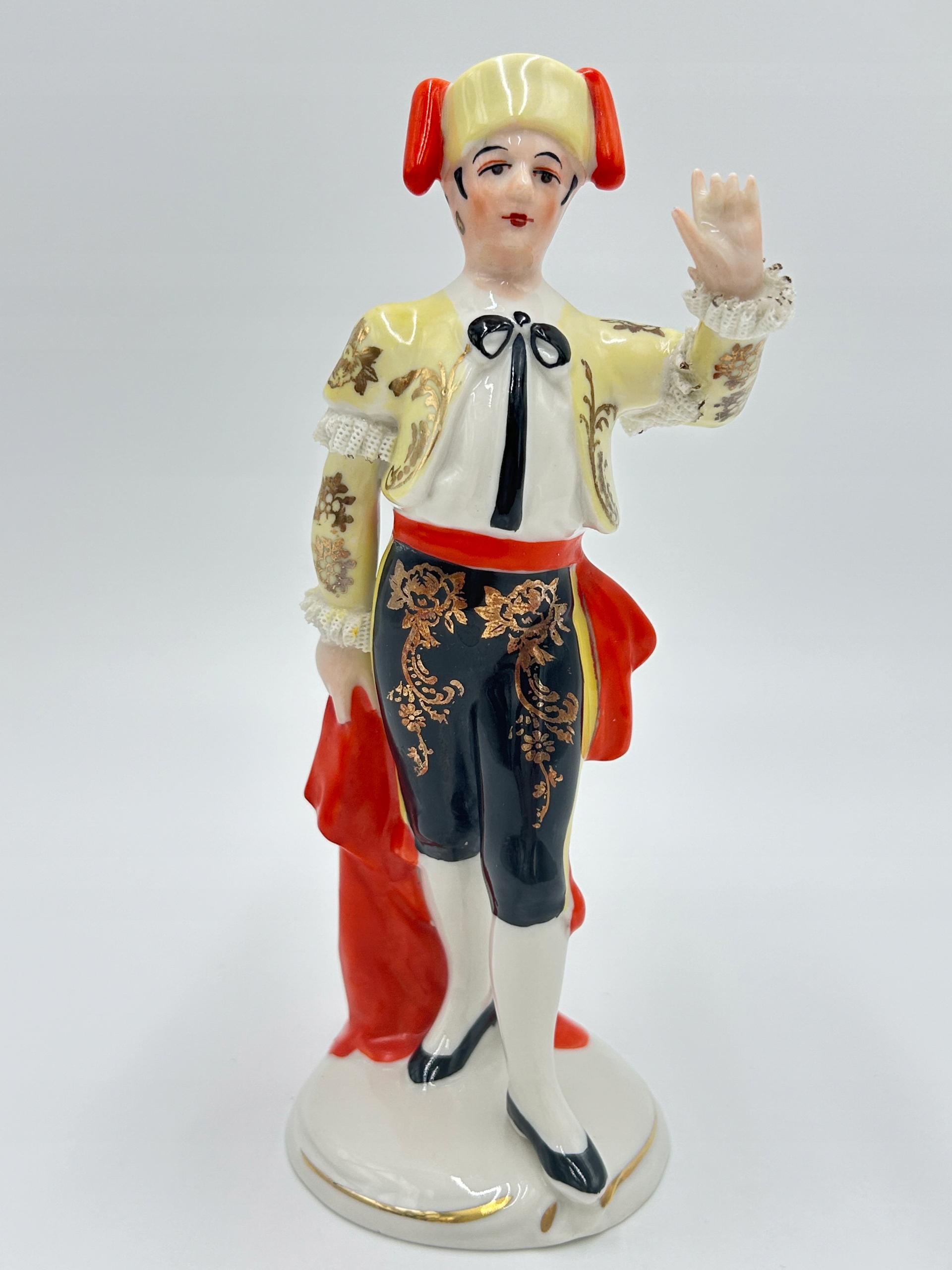 Я представляю вам очаровательную фигурку немецкого производства фарфорового фарфора - изображение matador . Сделано с большой точностью и усердием. Подпись находится на дне статуэтки.