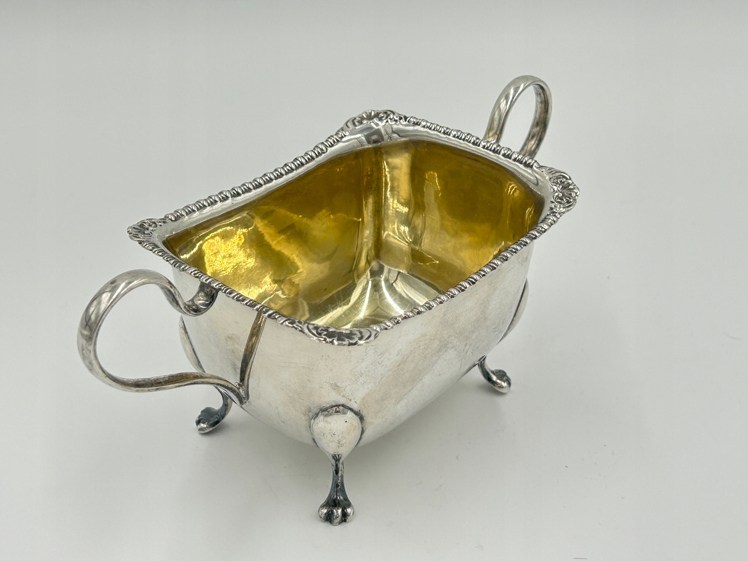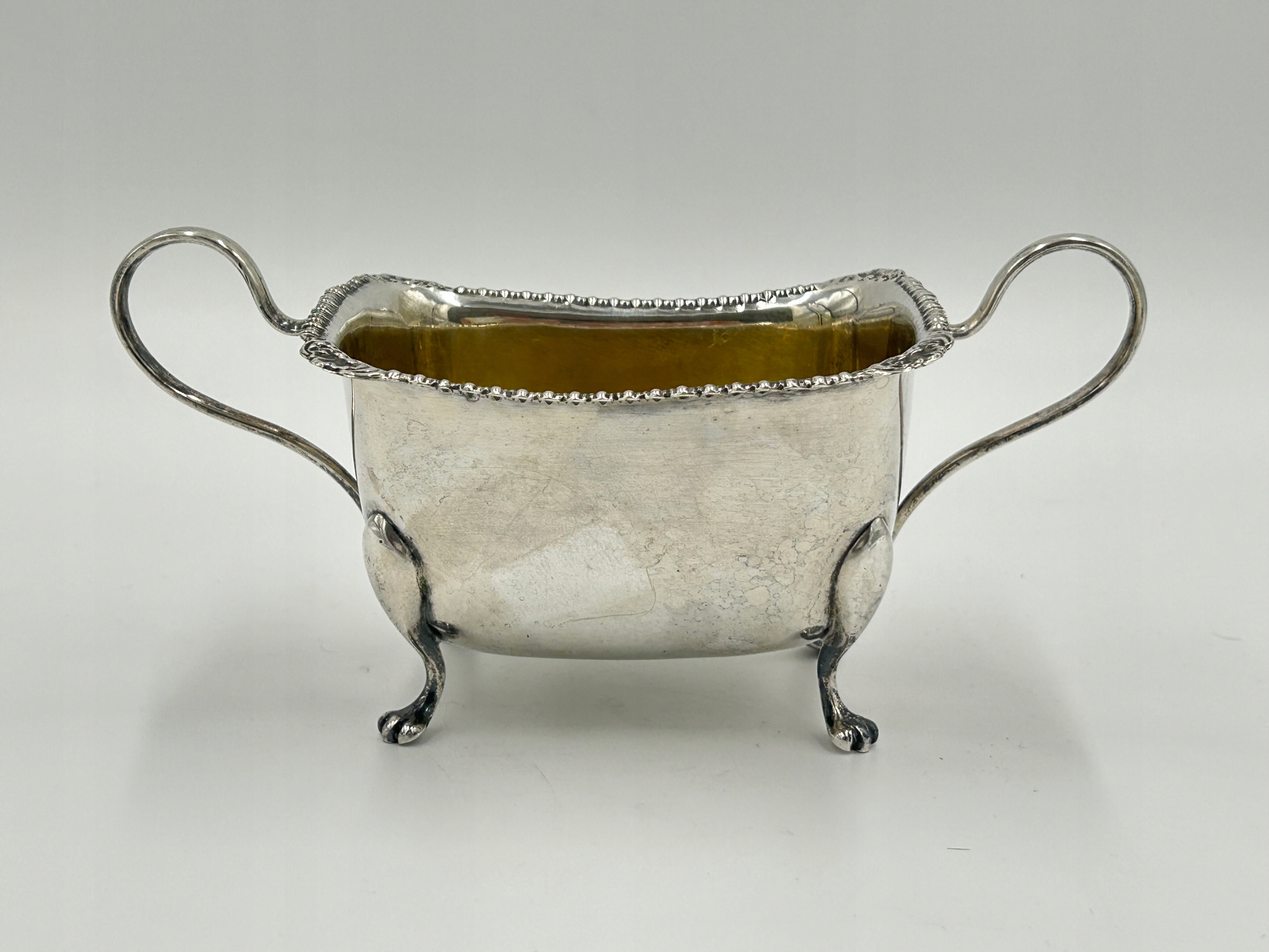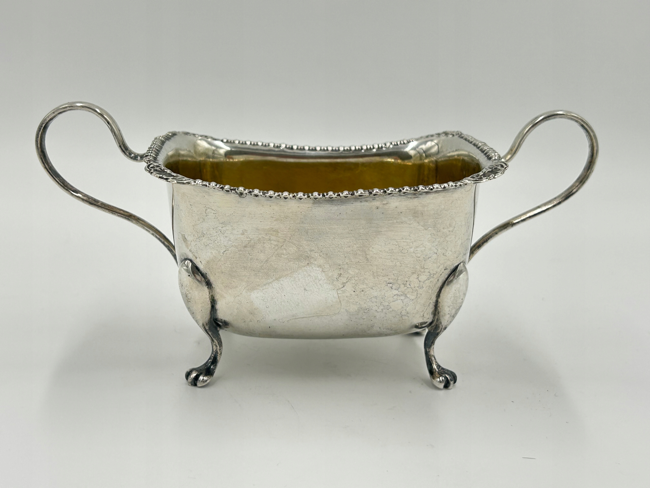 Объект продажи - красивая сахарная чаша, встроенная на четыре ноги. Верхний край украшен. Я рекомендую элегантное декоративное блюдо, чтобы обогатить вашу собственную коллекцию, для подарка любимому человеку. Подписанный.