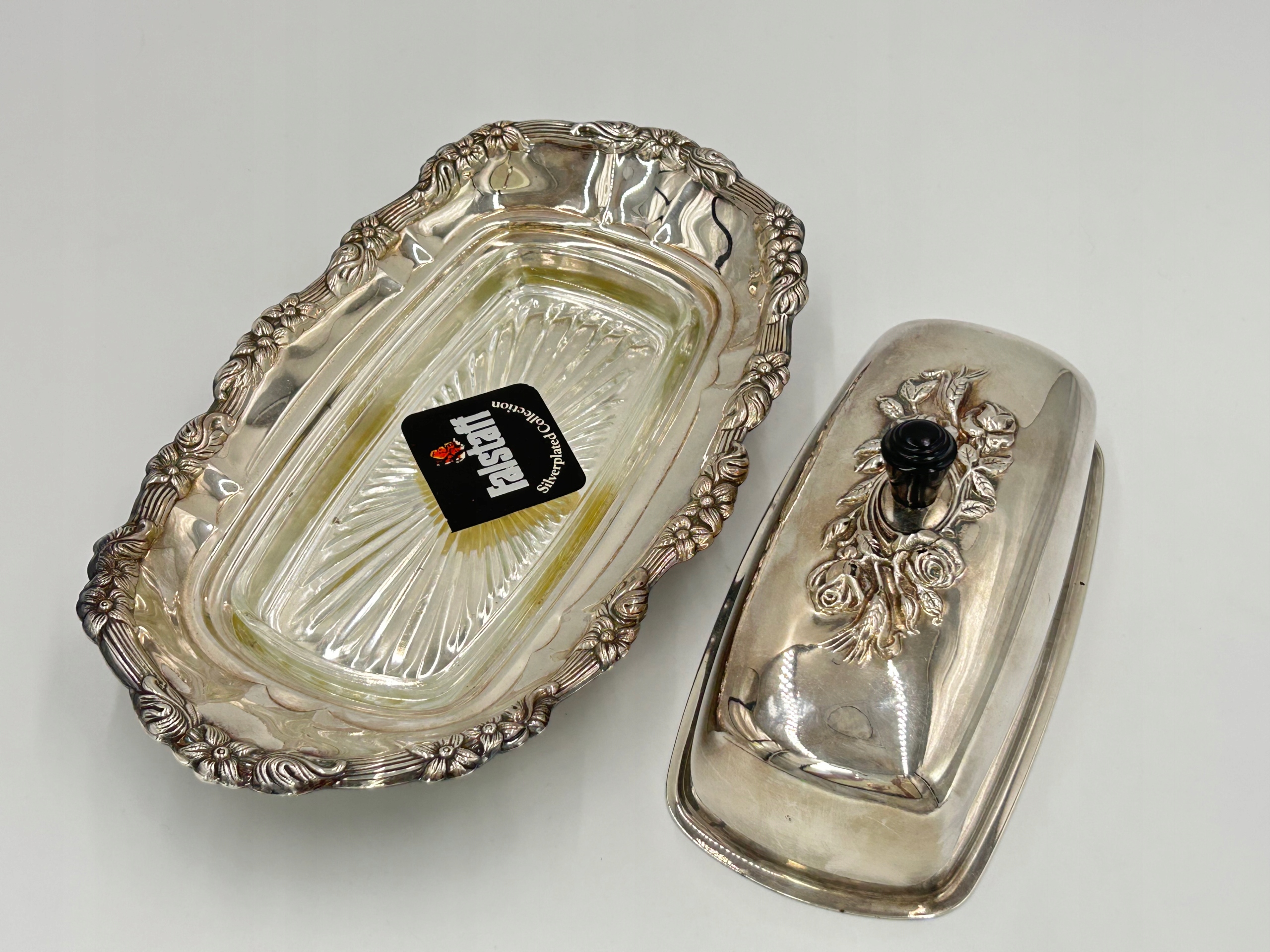 Тема продажи - красивое масло. Основание богато украшено, внутри стеклянного блюда, крышка, украшенной ручкой. Я рекомендую элегантное декоративное блюдо, чтобы обогатить вашу собственную коллекцию, для подарка любимому человеку. Подписано - Фальстафф, Англия.