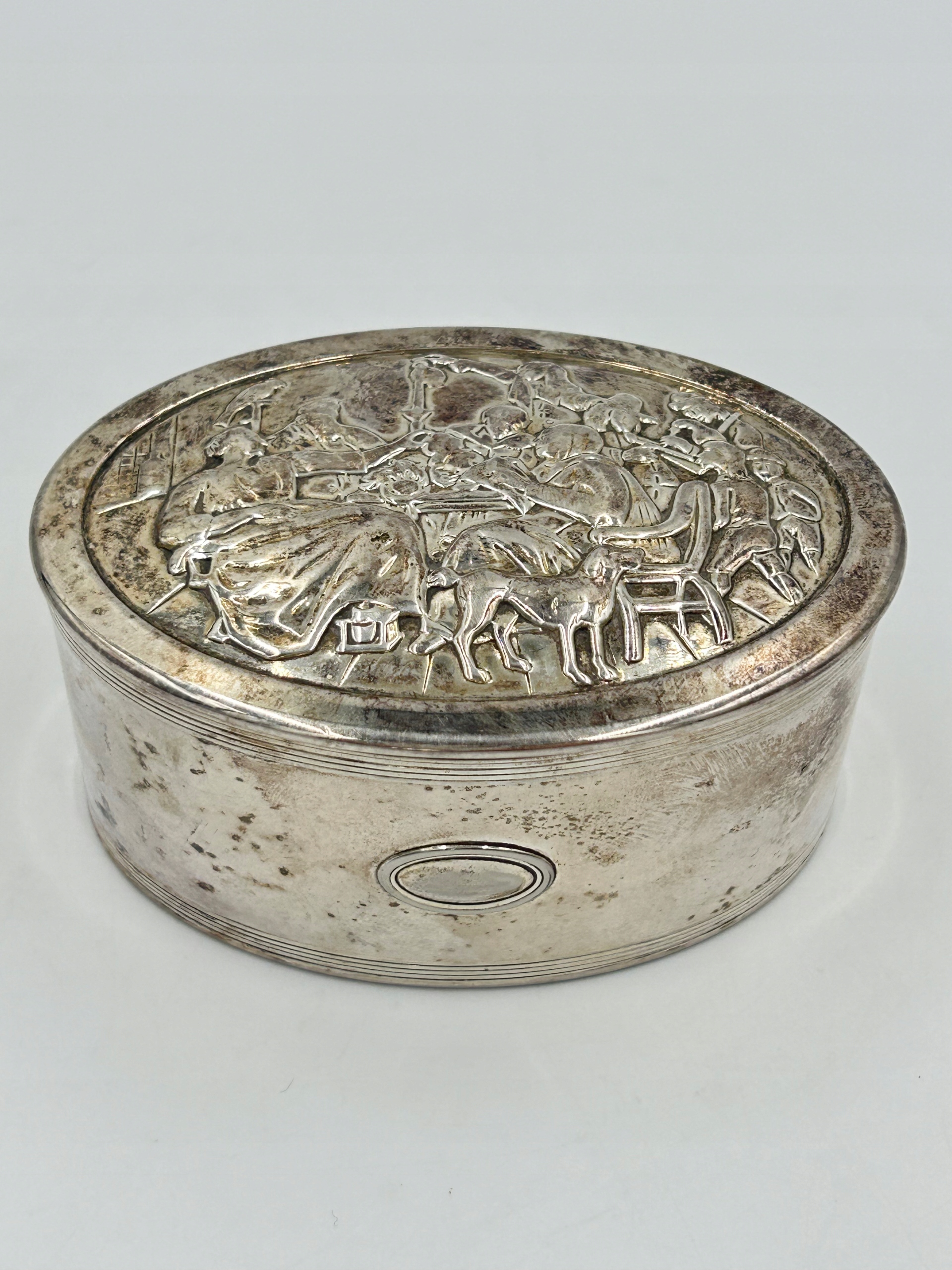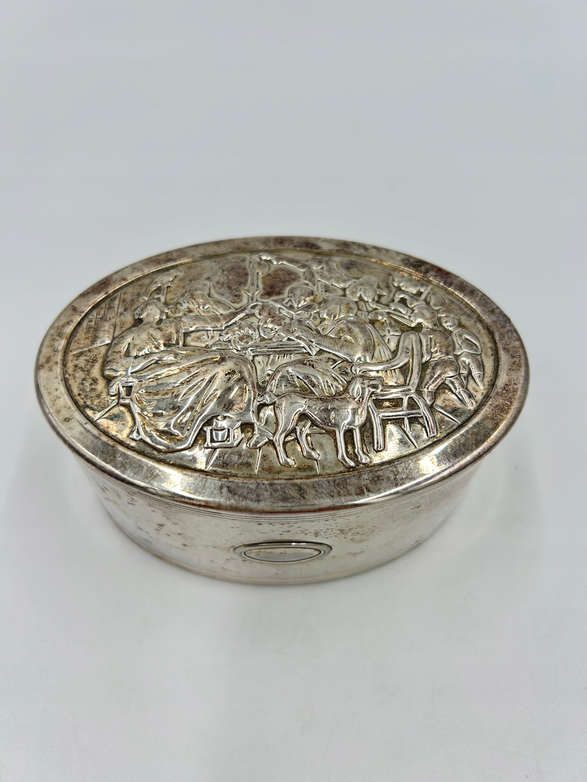 Тема продажи - овальная шкатулка, пуздро с украшенной крышкой. Обложка украшена сценой. Уникальный предмет, идеально подходящий для хранения кадров - ювелирные изделия. Я рекомендую подарок любимому человеку, красивый декоративный предмет.
