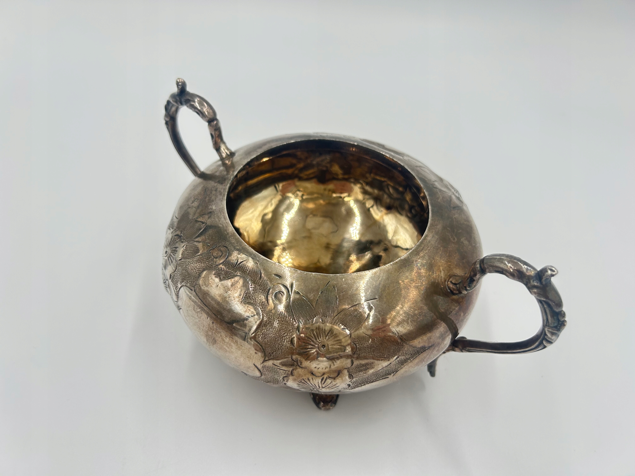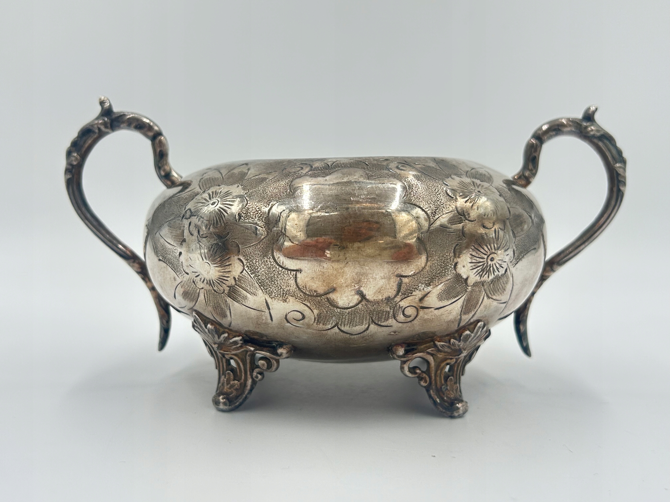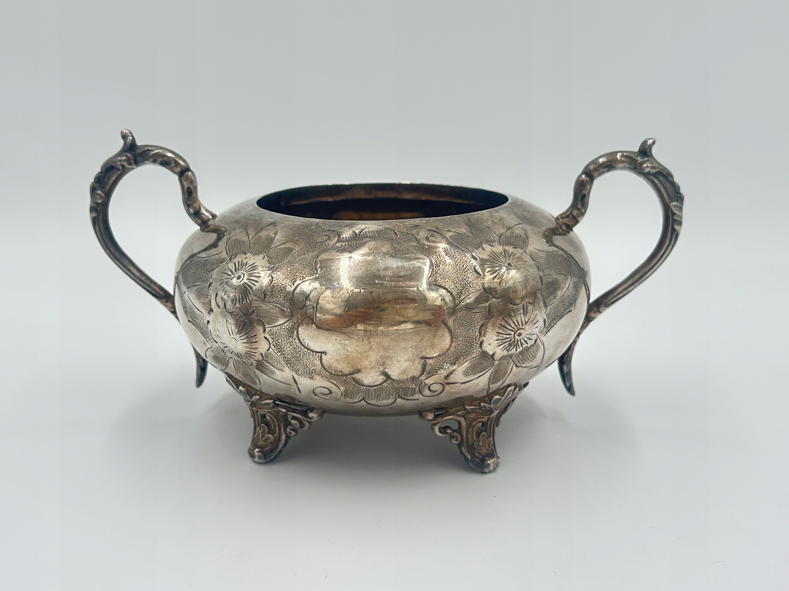 Объект продажи - элегантная историческая сахарная чаша с богатым гравированным украшением. У кондитерской есть две ручки и стоят на четырех ногах. Уникальный, красивый объект имеет практическую и декоративную функцию. Я рекомендую его обогатить свою собственную коллекцию или подарок для любимого человека.