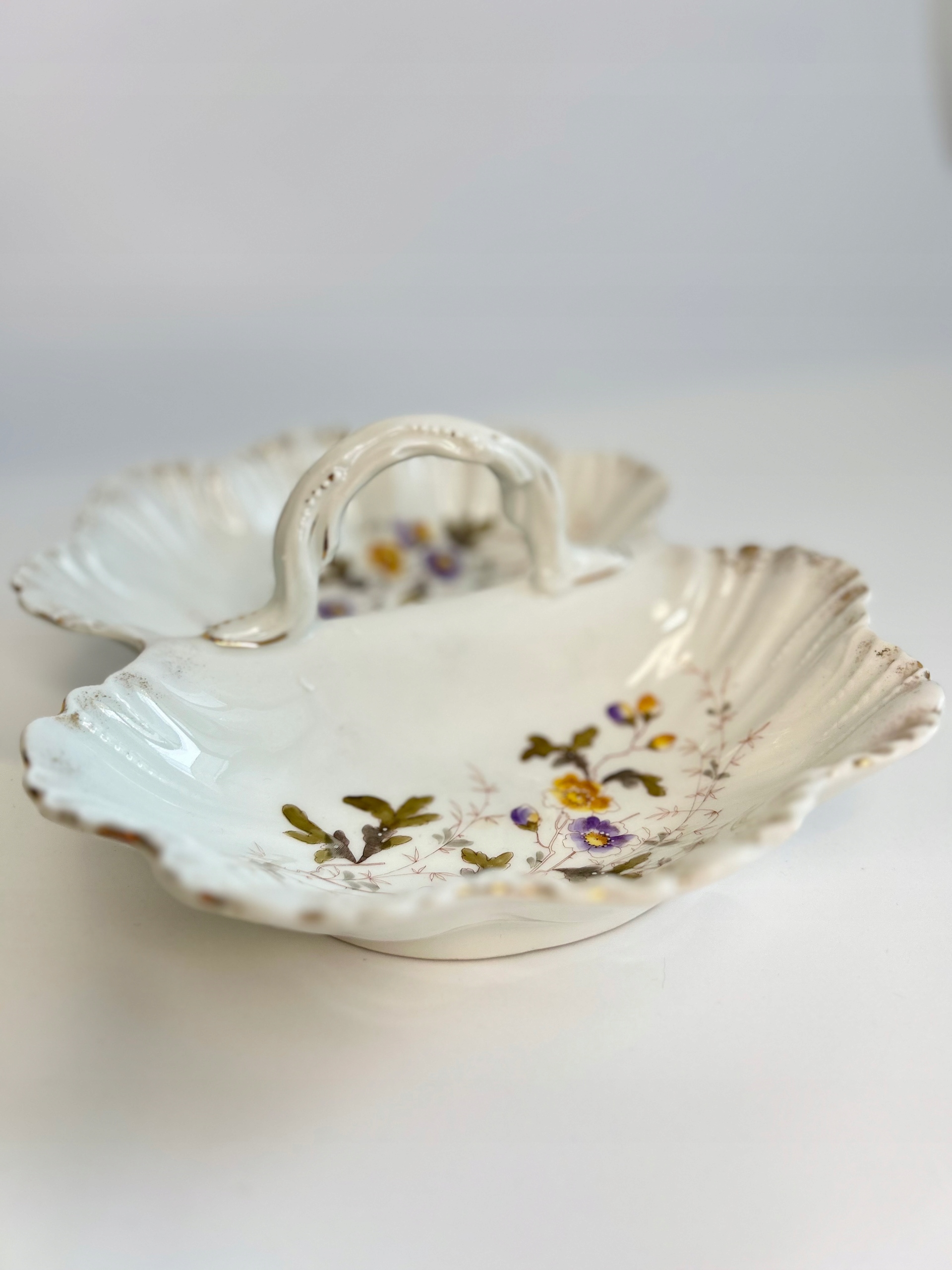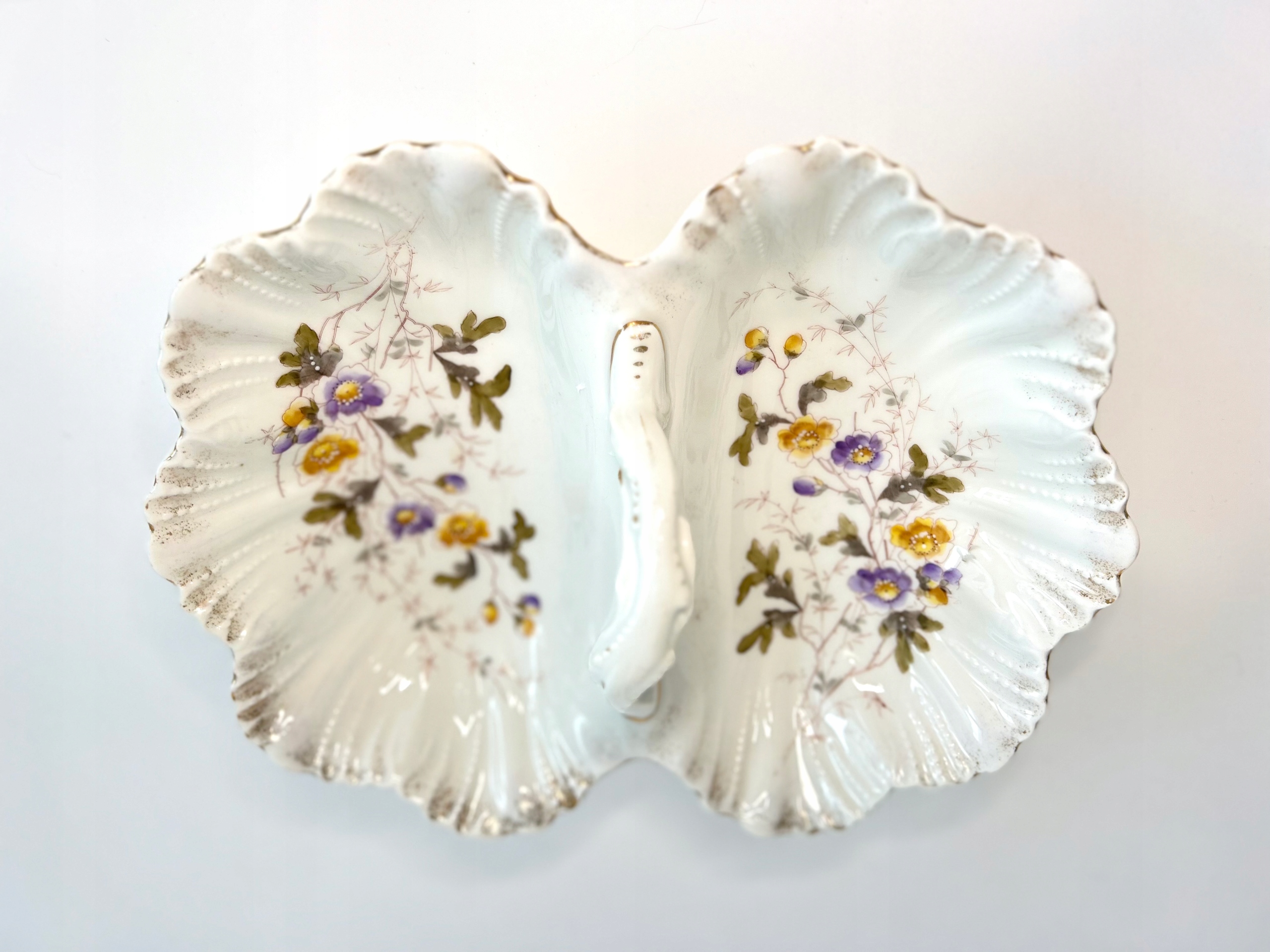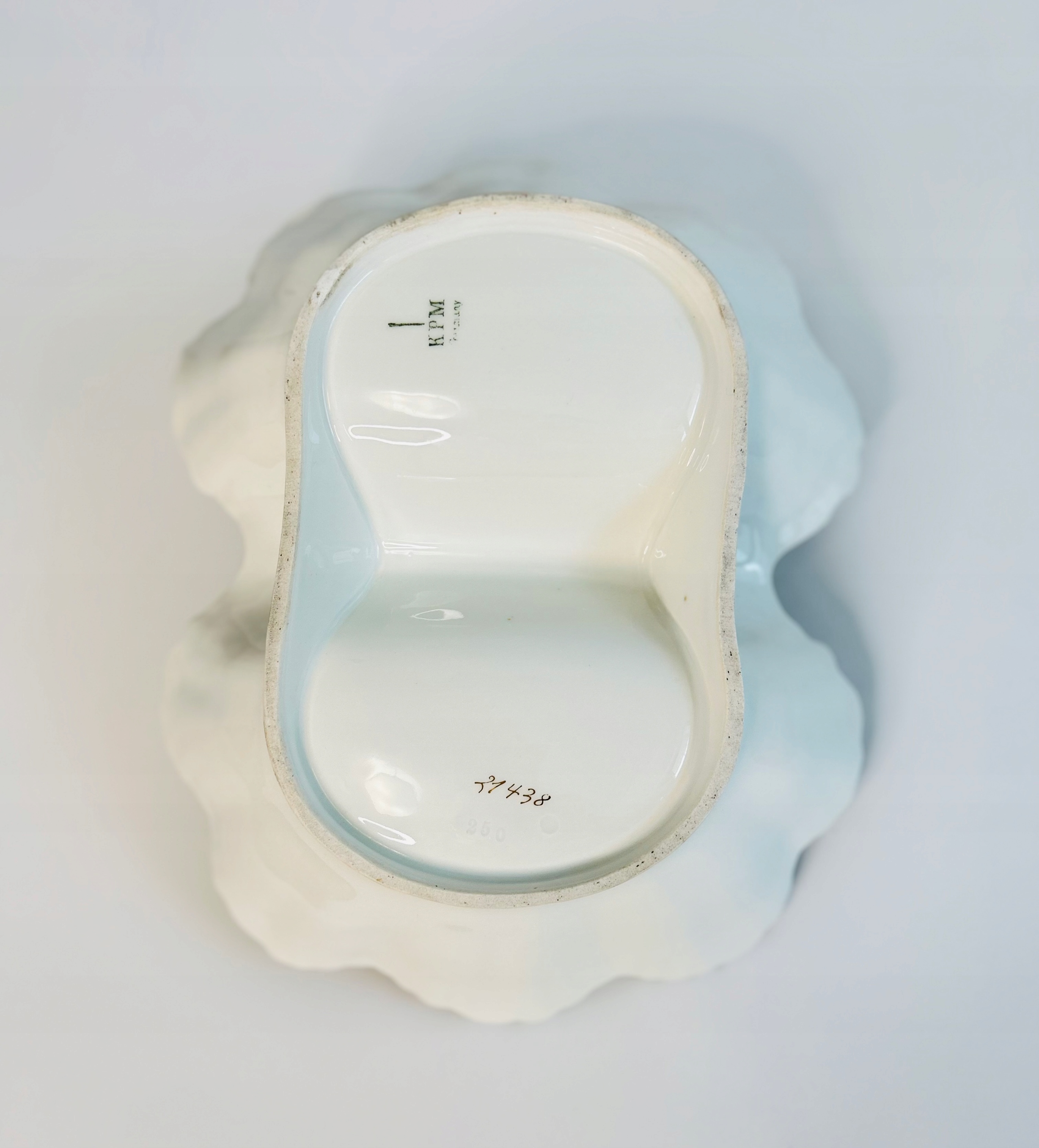 Я представляю вам очаровательную фарфоровую патеру Manufaktura kpm, разделенную на две чашки с ручкой.
