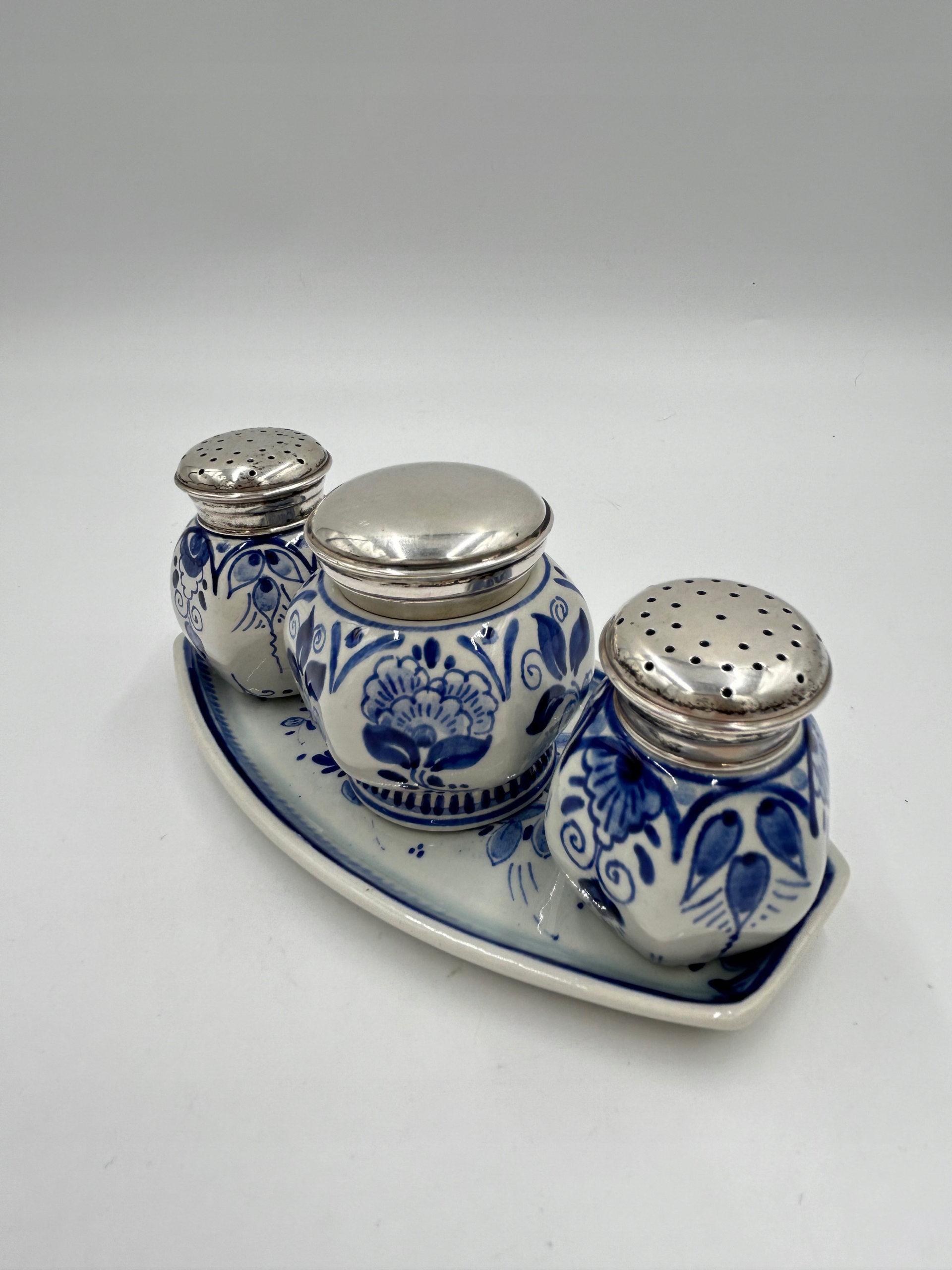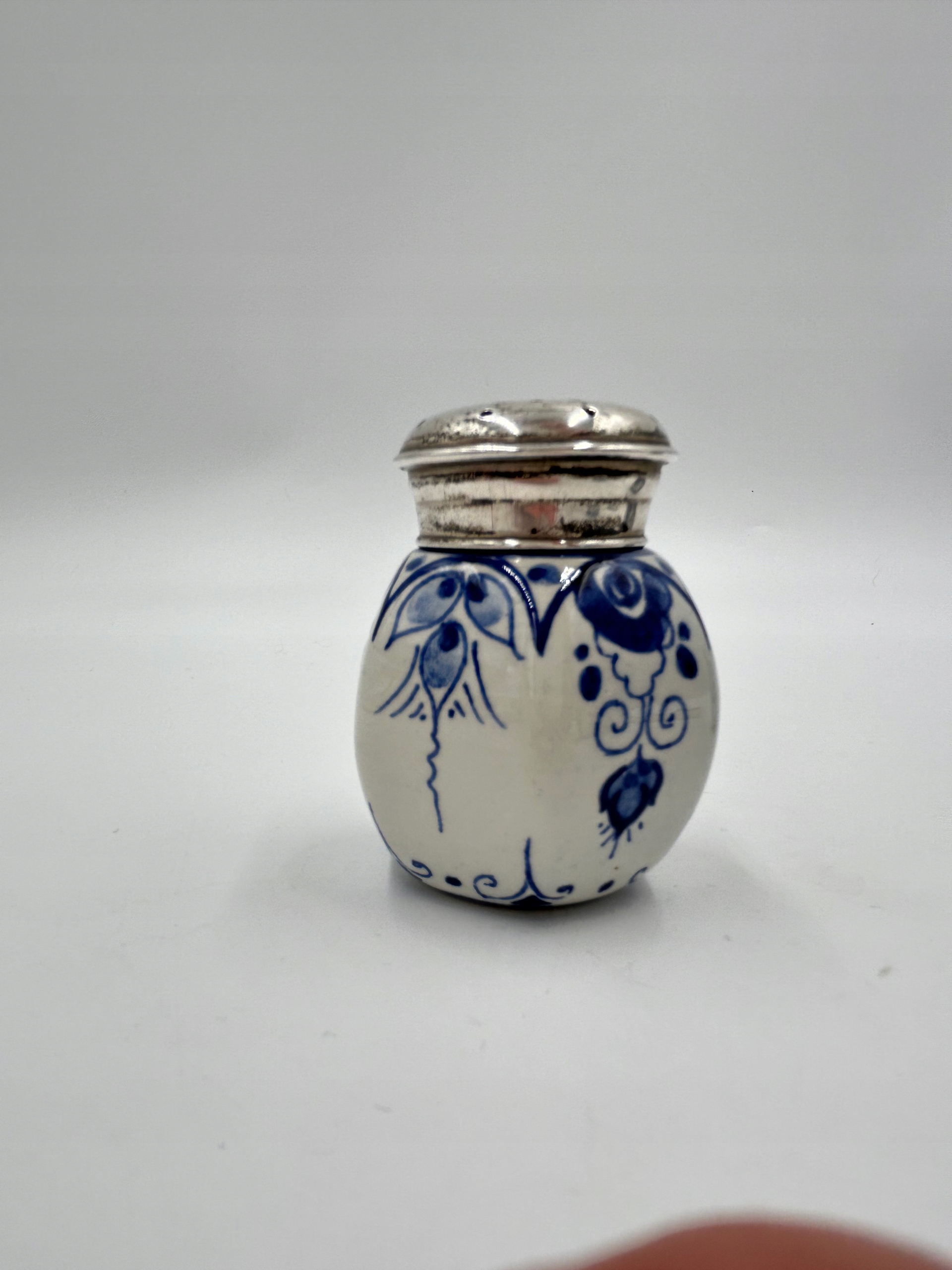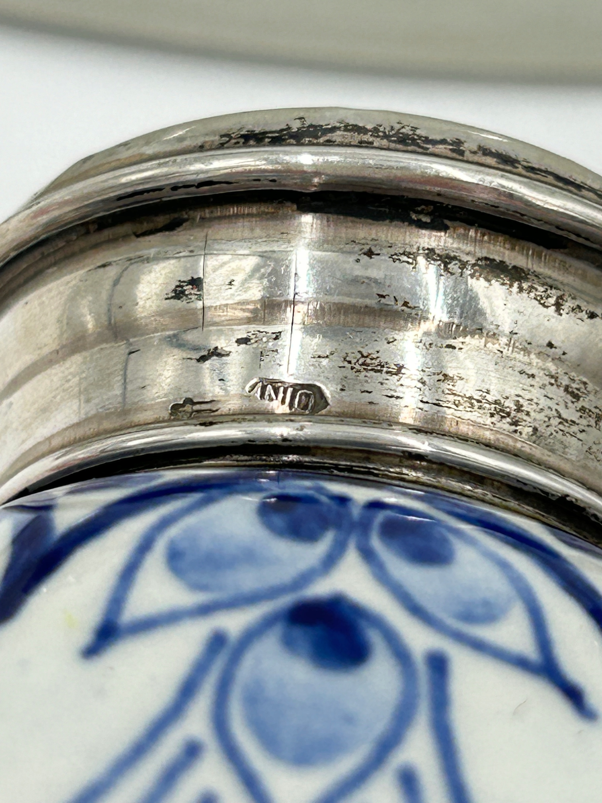 Тема продажи -это набор красивых фарфоровых спинов, ручной работы, приспособленной в серебро 925. Голландия, Дельфты.