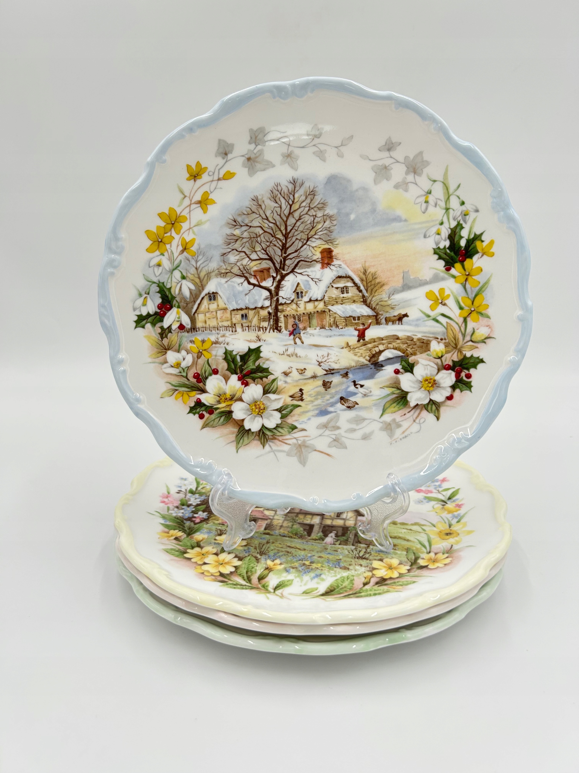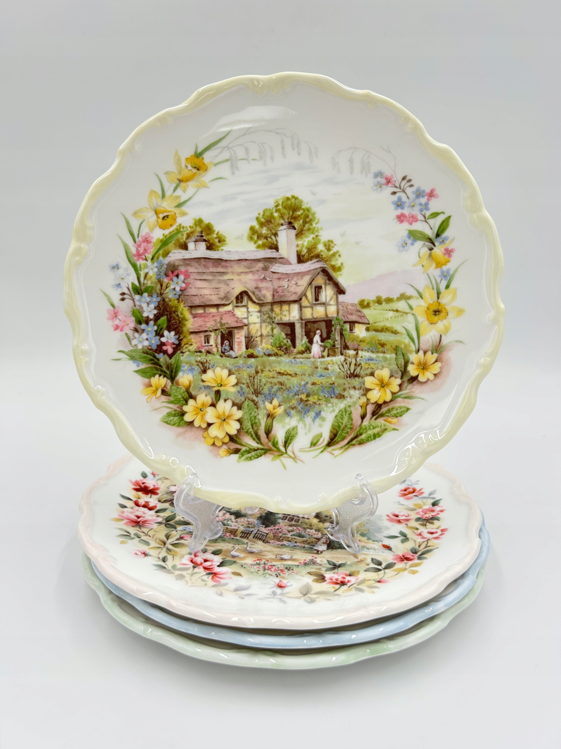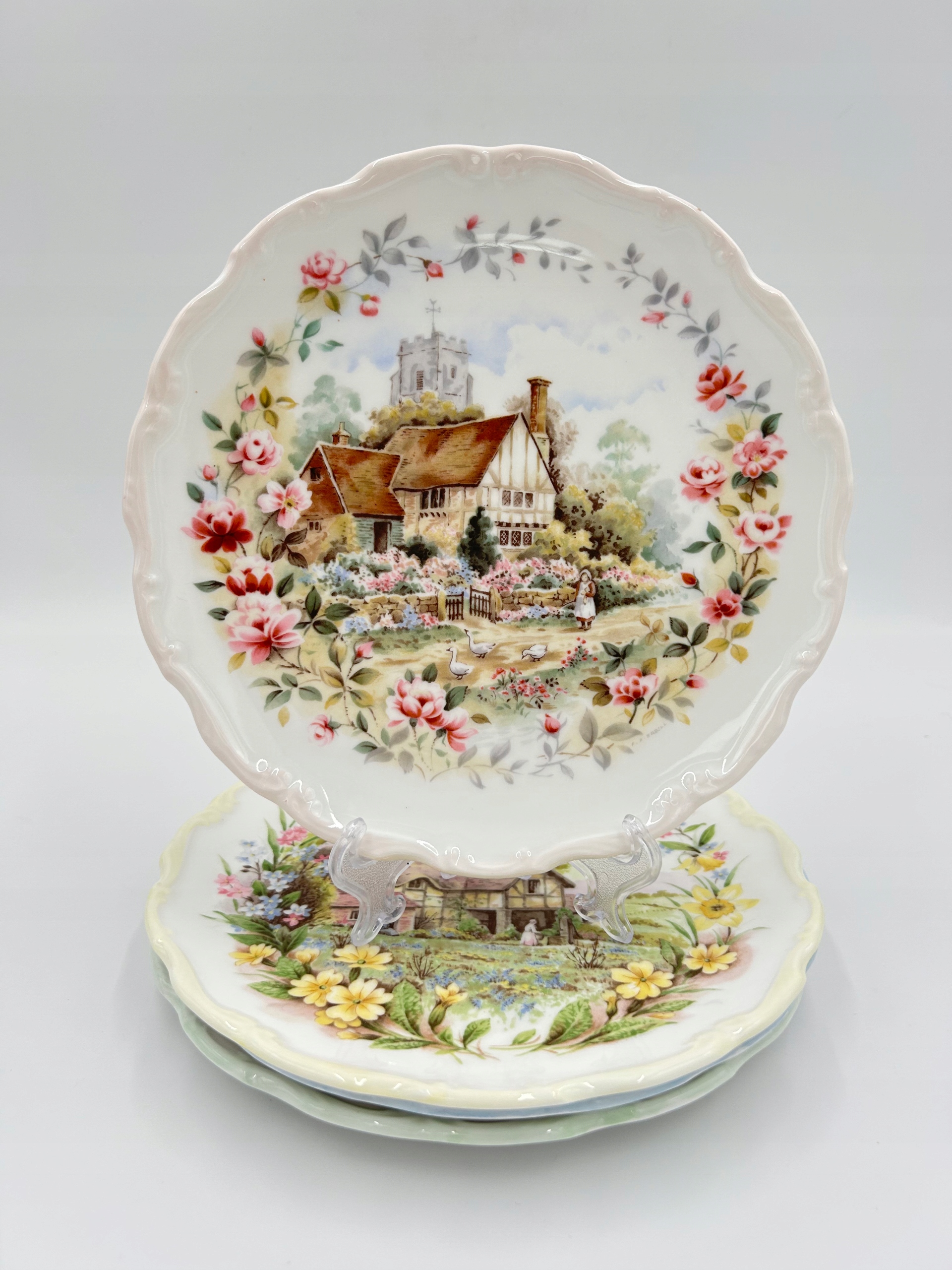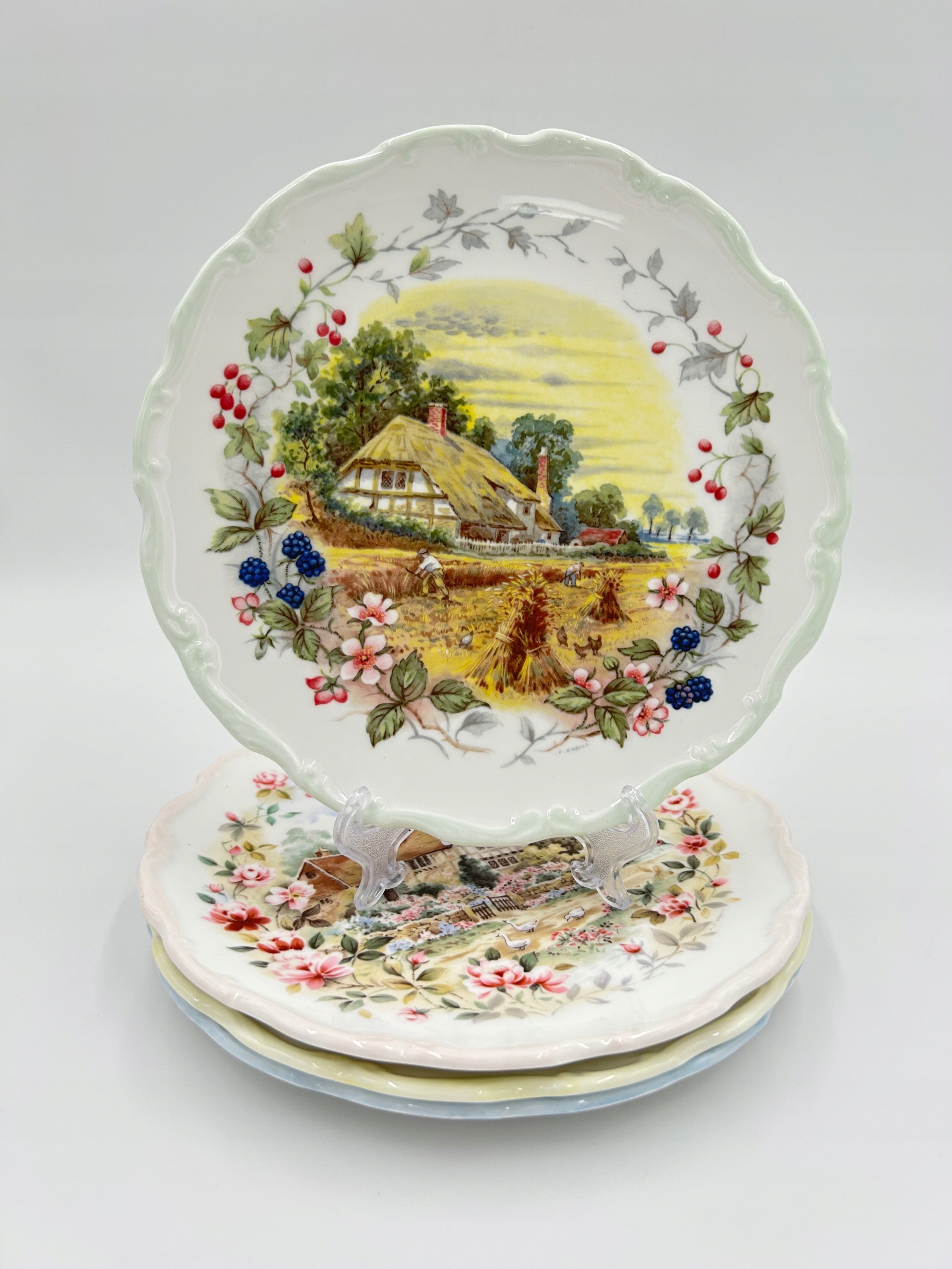 из серии годов в саду. Украшения, сделанные с большой точностью и усердием, края тарелок в пастельных тонах. Они сосредотачивают внимание на своем очаровании и деликатесе, представляя уютную семейную атмосферу в интерьере. Тонкий декоративный элемент для людей, которые ценят элегантность и гармонию цветов. Жемчужина для любителя английского фарфора, ценного набора коллекционеров.