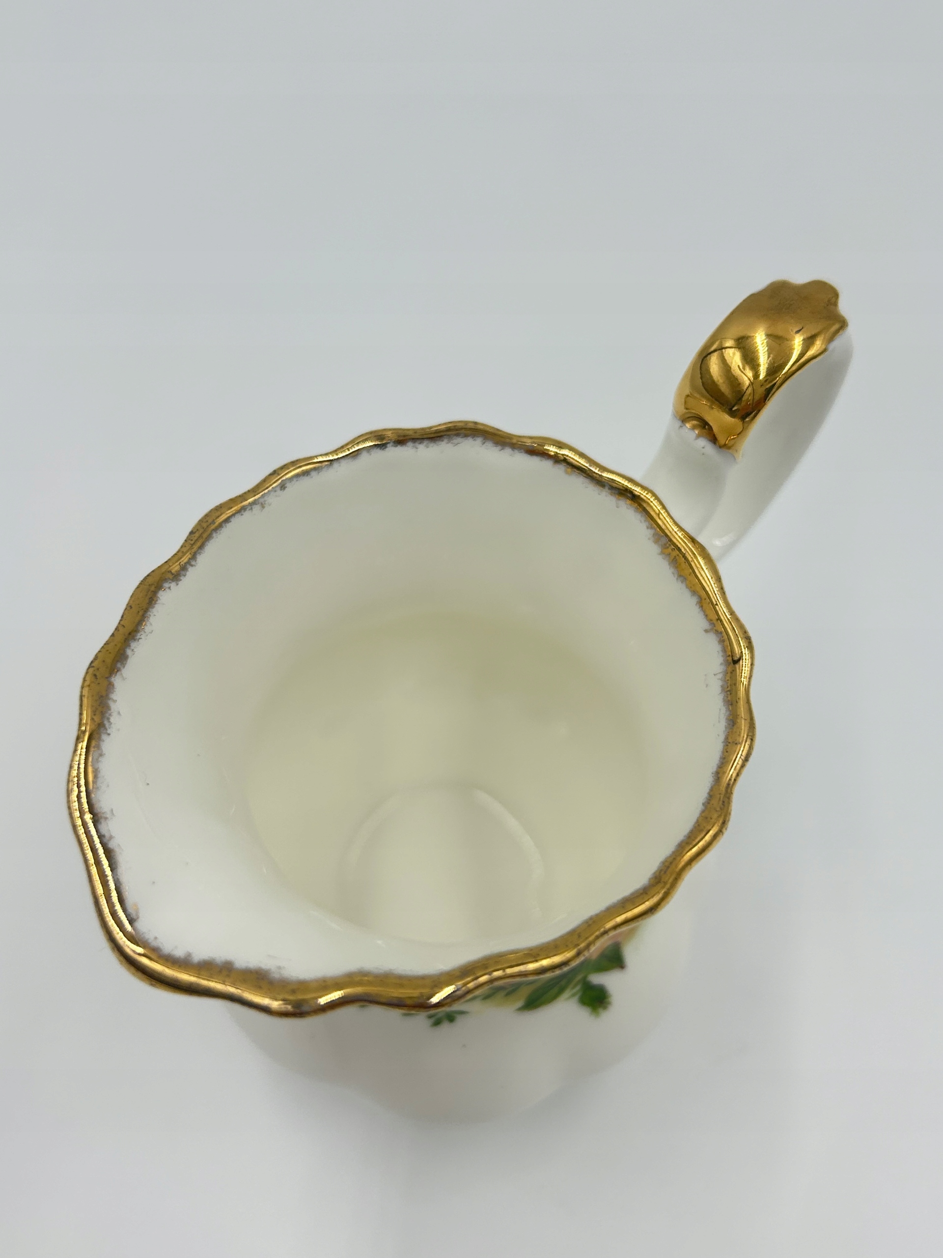 богатые украшения цветочного мотива, золотых краев и изысканной формы с позолоченным ухом дают тонкость и элегантность. Уникальный декоративный элемент для любителей красивого английского фарфора.