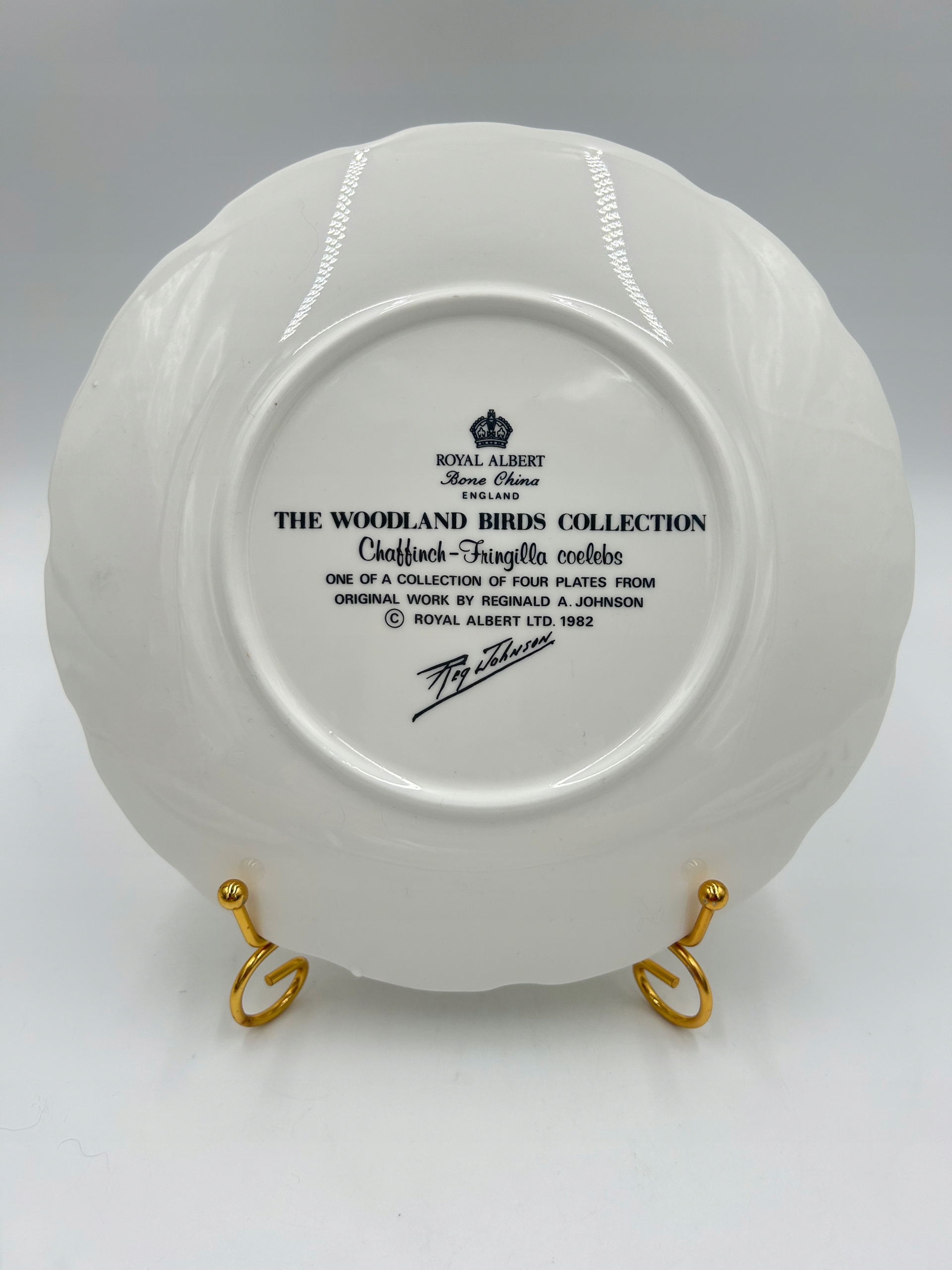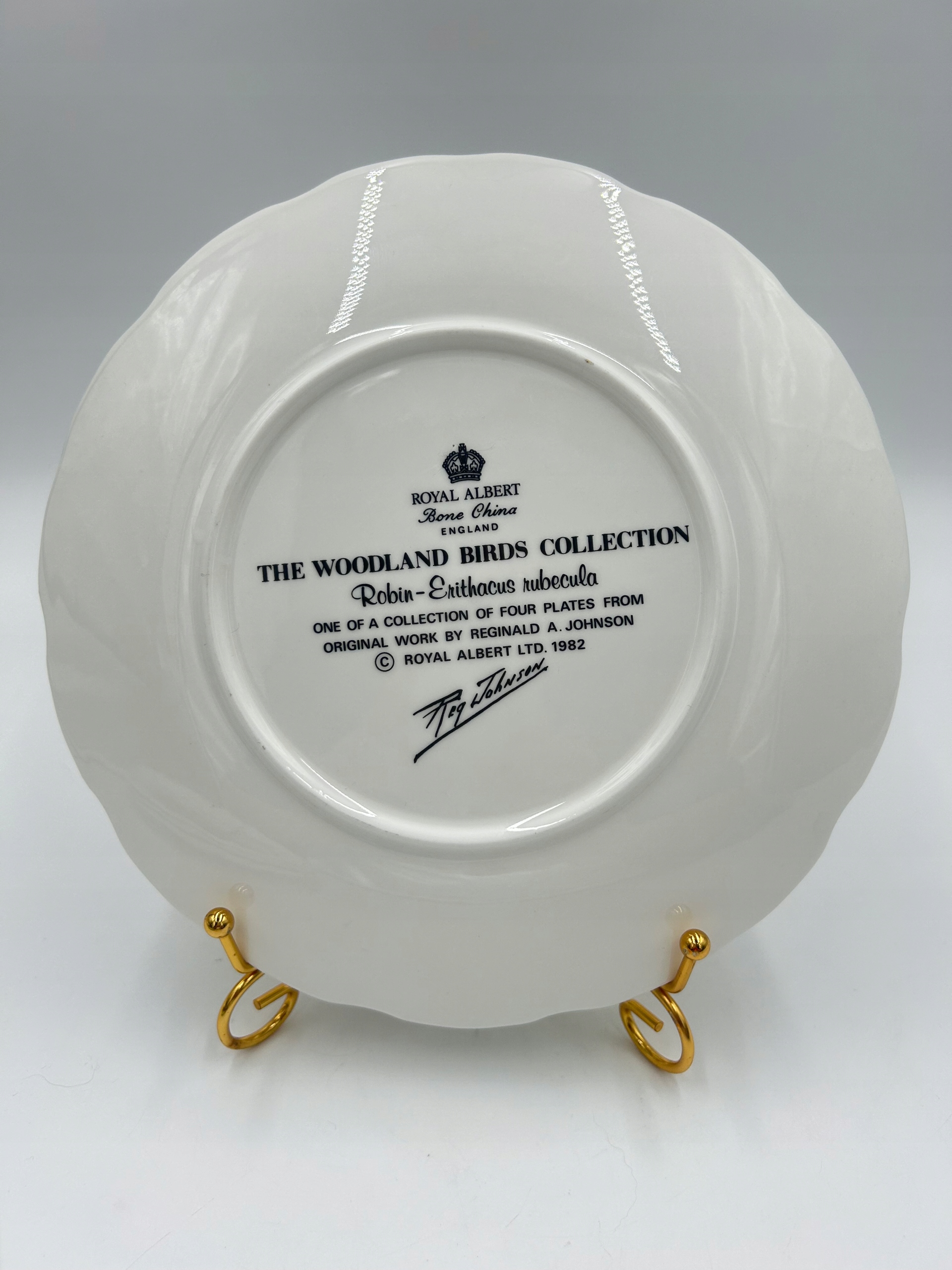 Предлагаю красивый полный набор из четырех фарфоровых коллекционных тарелок Royal Albert из ограниченной серии «The Woodland Birds Collection» 1982 года. Каждая тарелка украшена изображением птицы, расписанным вручную Реджинальдом А. Джонсоном — известным художником, работающим с Royal Albert.
