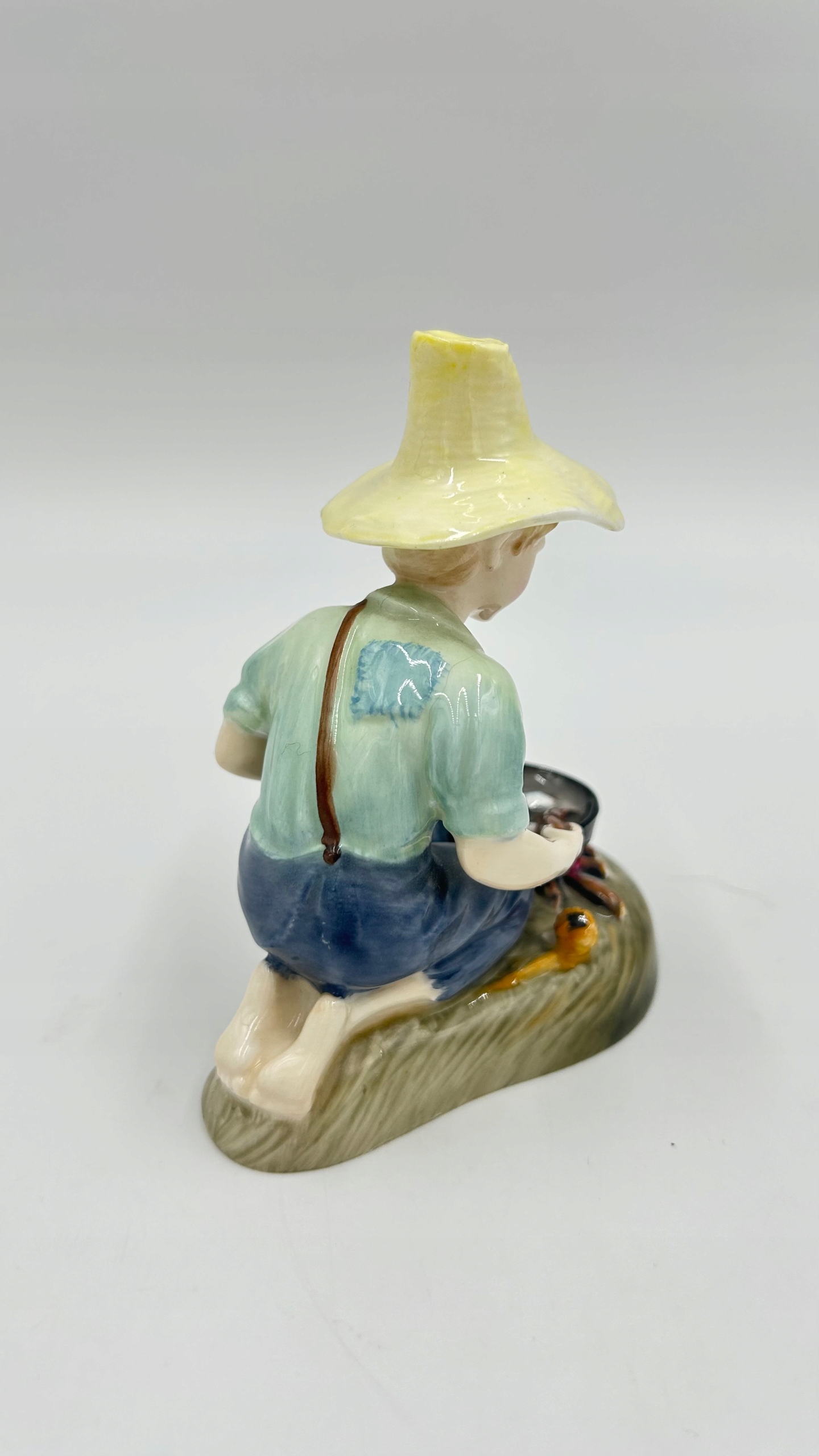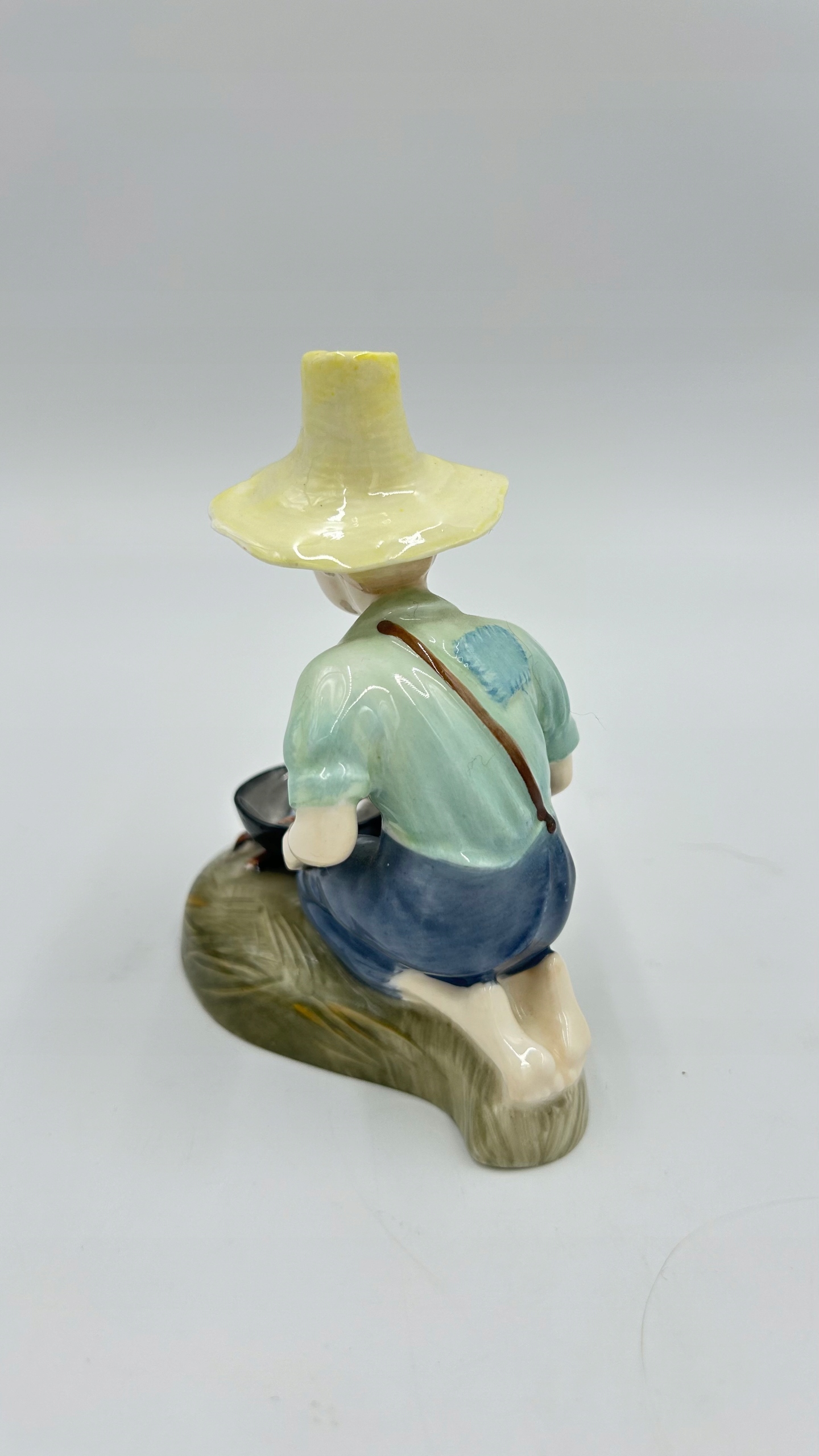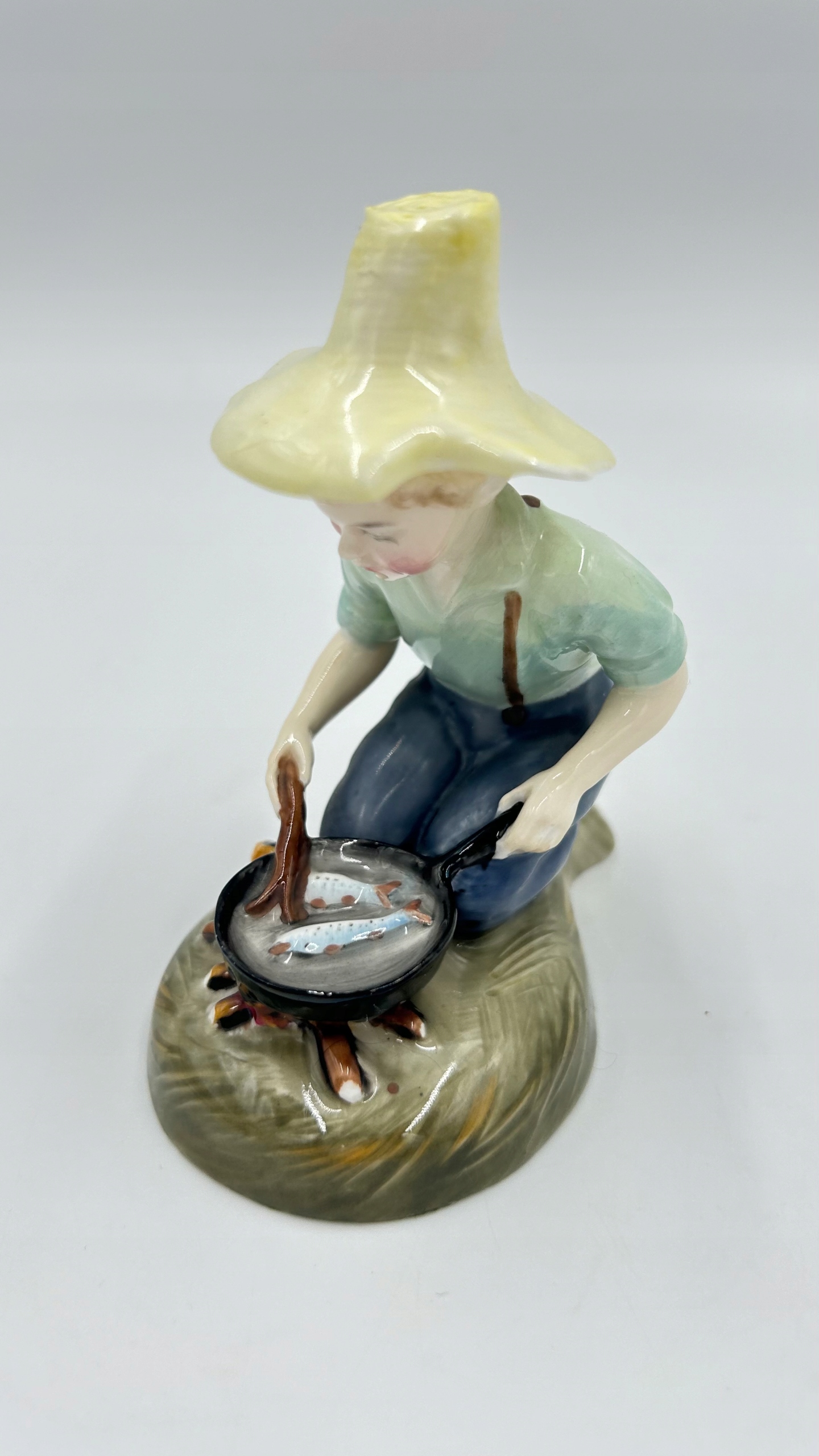 Объект продажи - уникальная статуэтка Royalon Dulton - River Boy, изображающий мальчика, готовящего еду над костра. Мальчик босиком, в залаженной рубашке, у него на голове желтая, поврежденная шляпа.