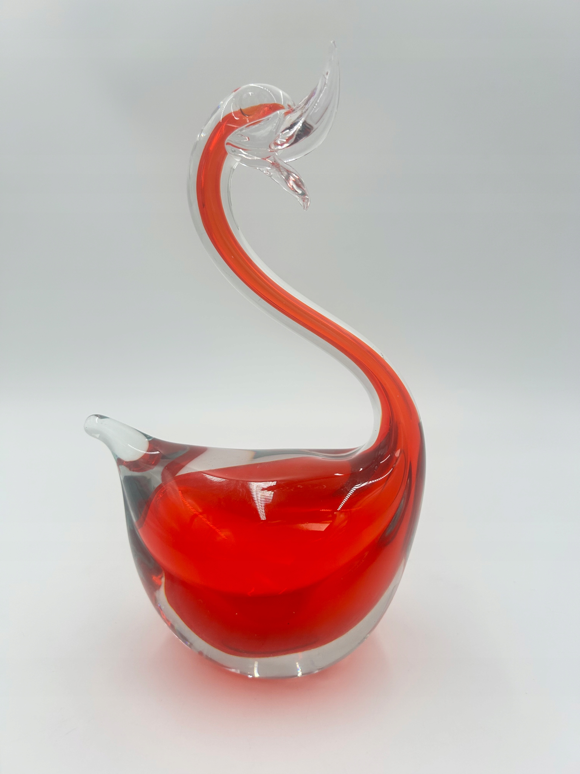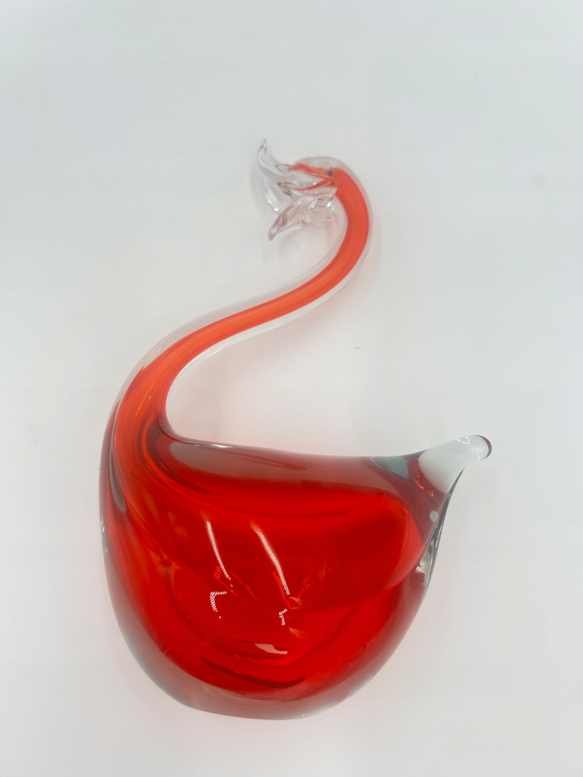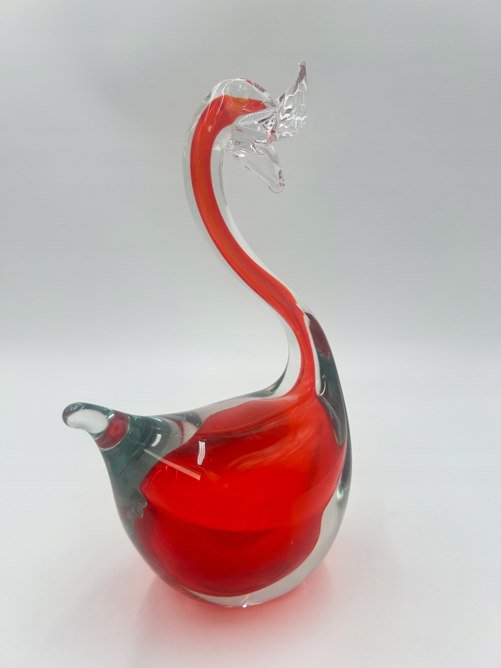 Стеклянная статуэтка с изображением достойного лебедя. Доминирующий цвет - красный.