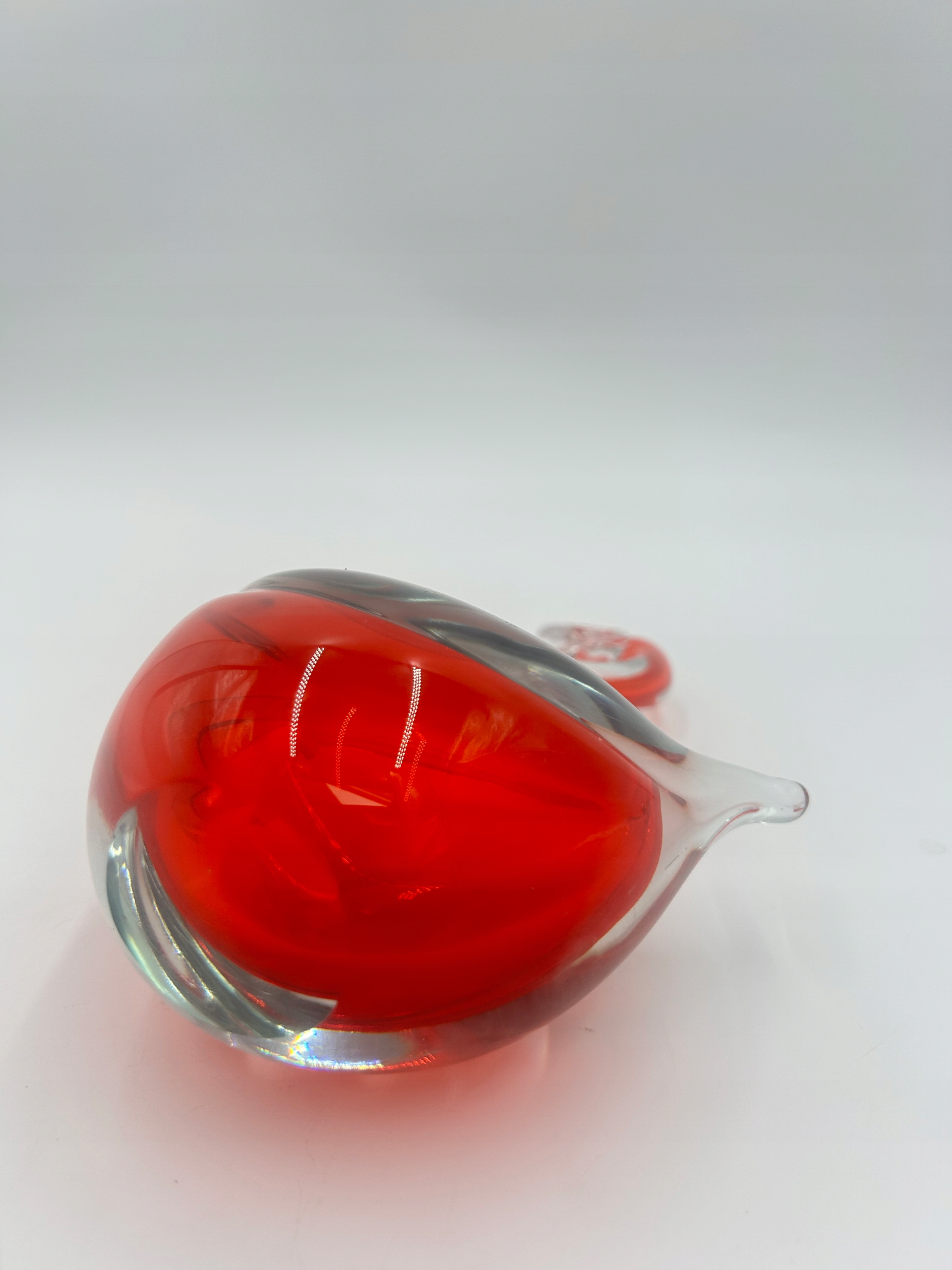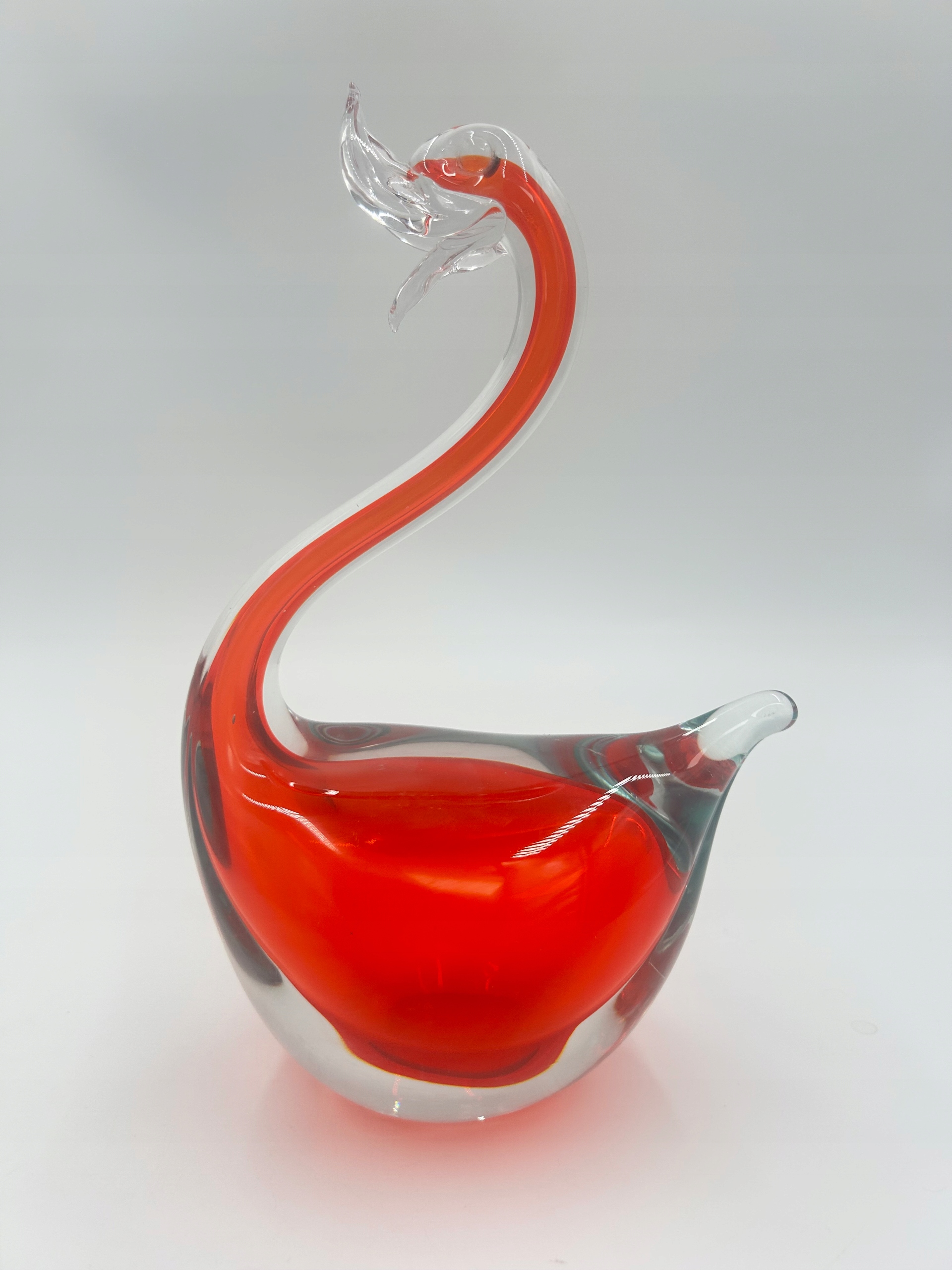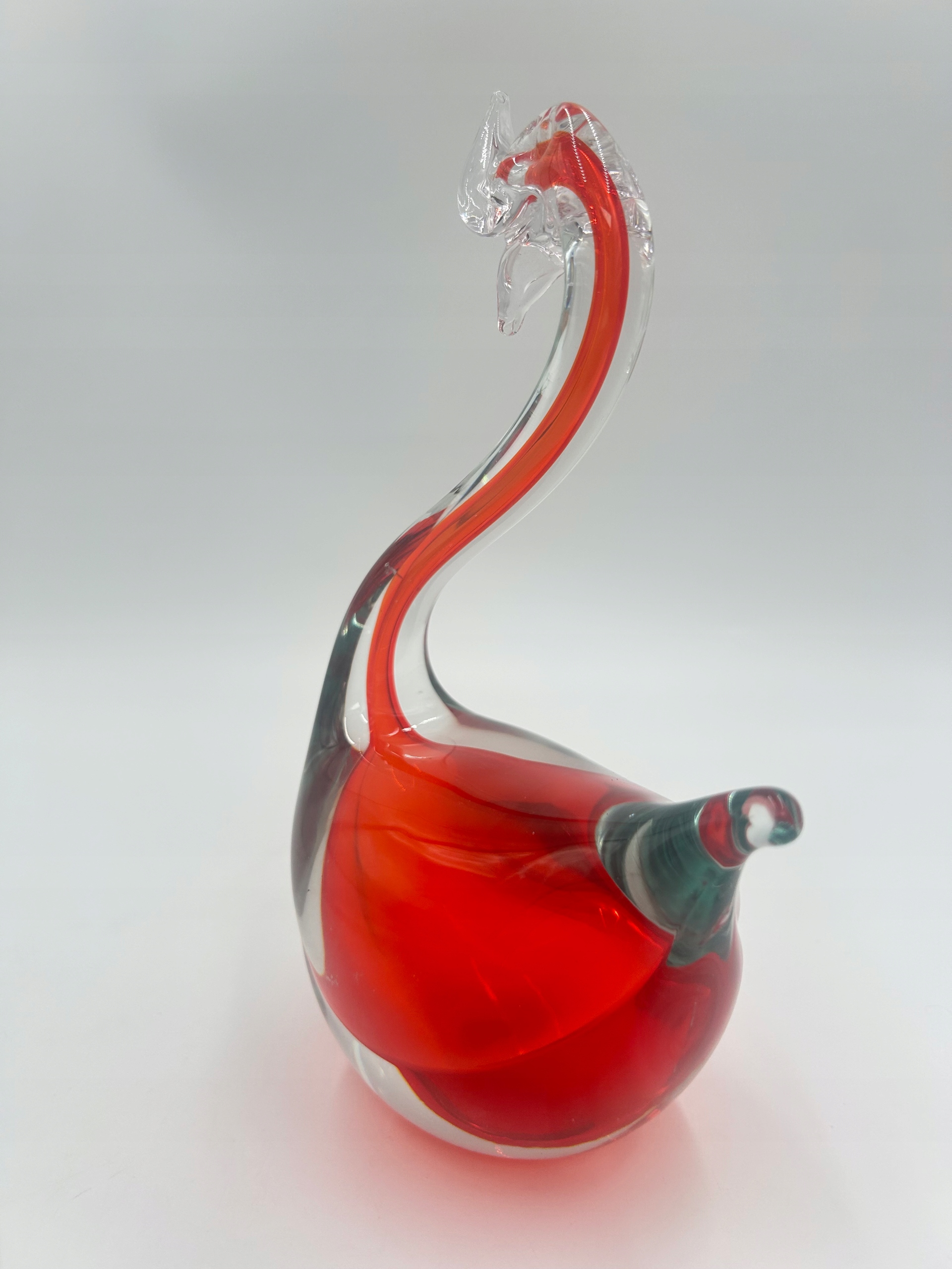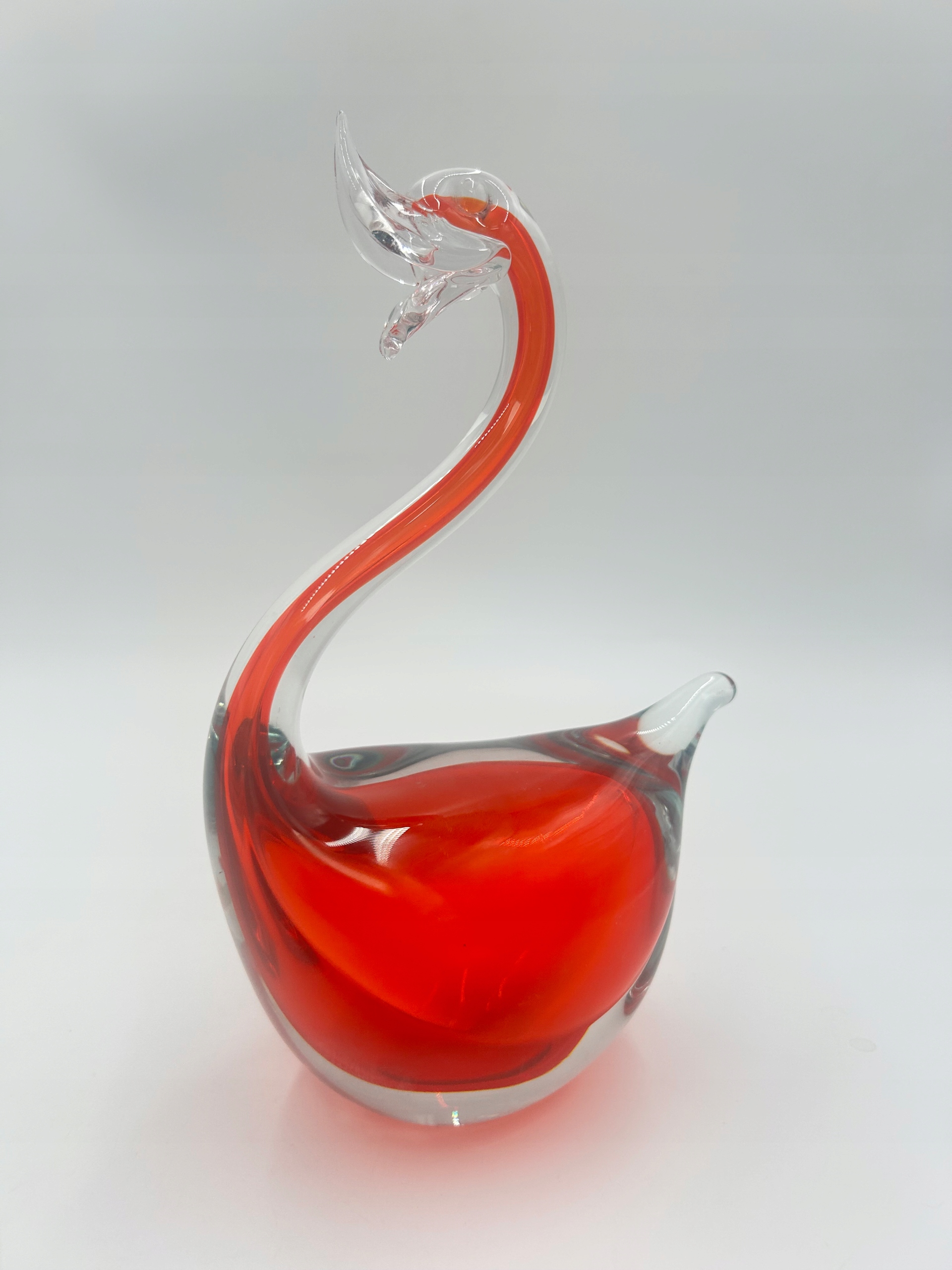Стеклянная статуэтка с изображением достойного лебедя. Доминирующий цвет - красный.