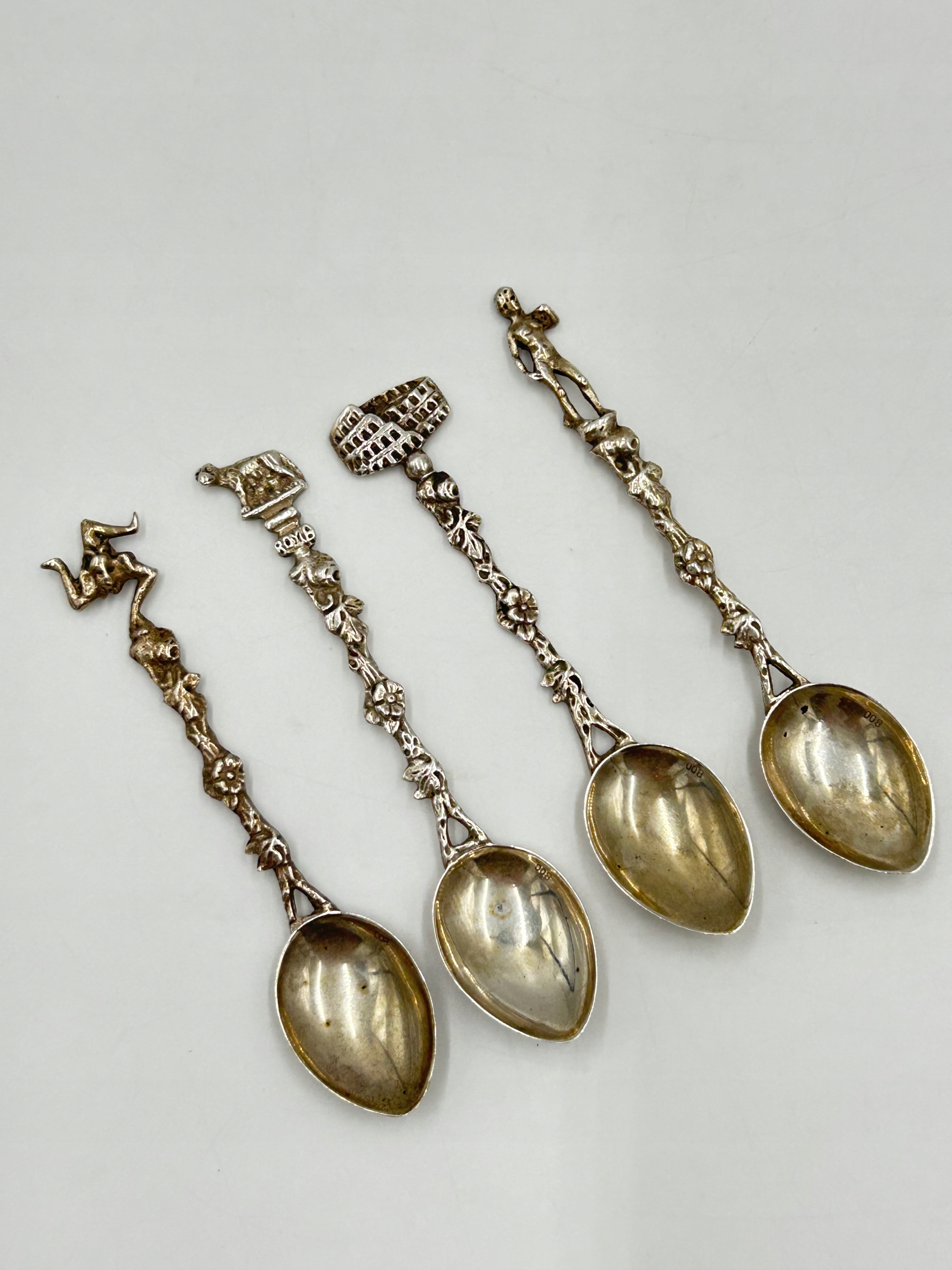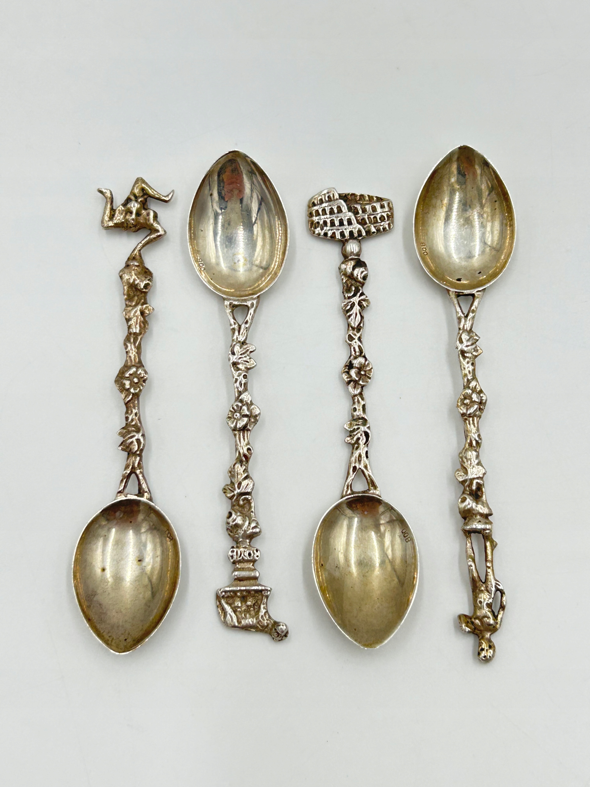 Объект продажи -4 чайные ложки коллекционера, сделанные из серебра 800. Тонрусная чайная ложка, декоративная, фигуральная ложка. Я рекомендую красивый набор для подарка или обогатить вашу собственную коллекцию.