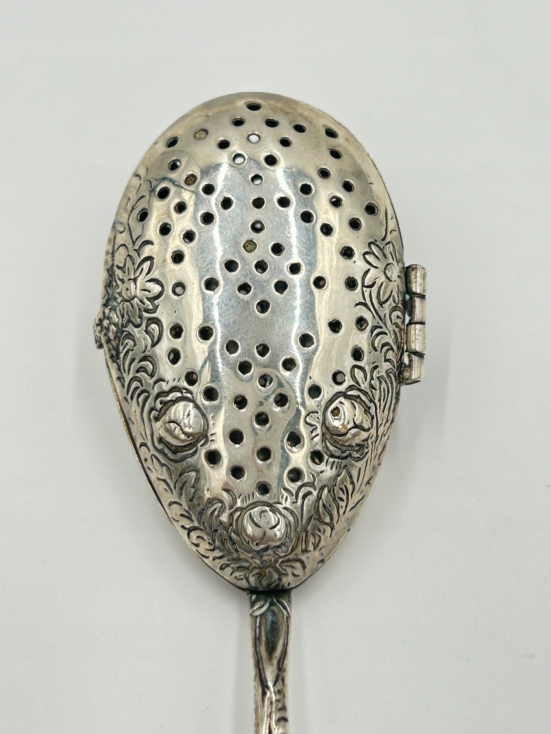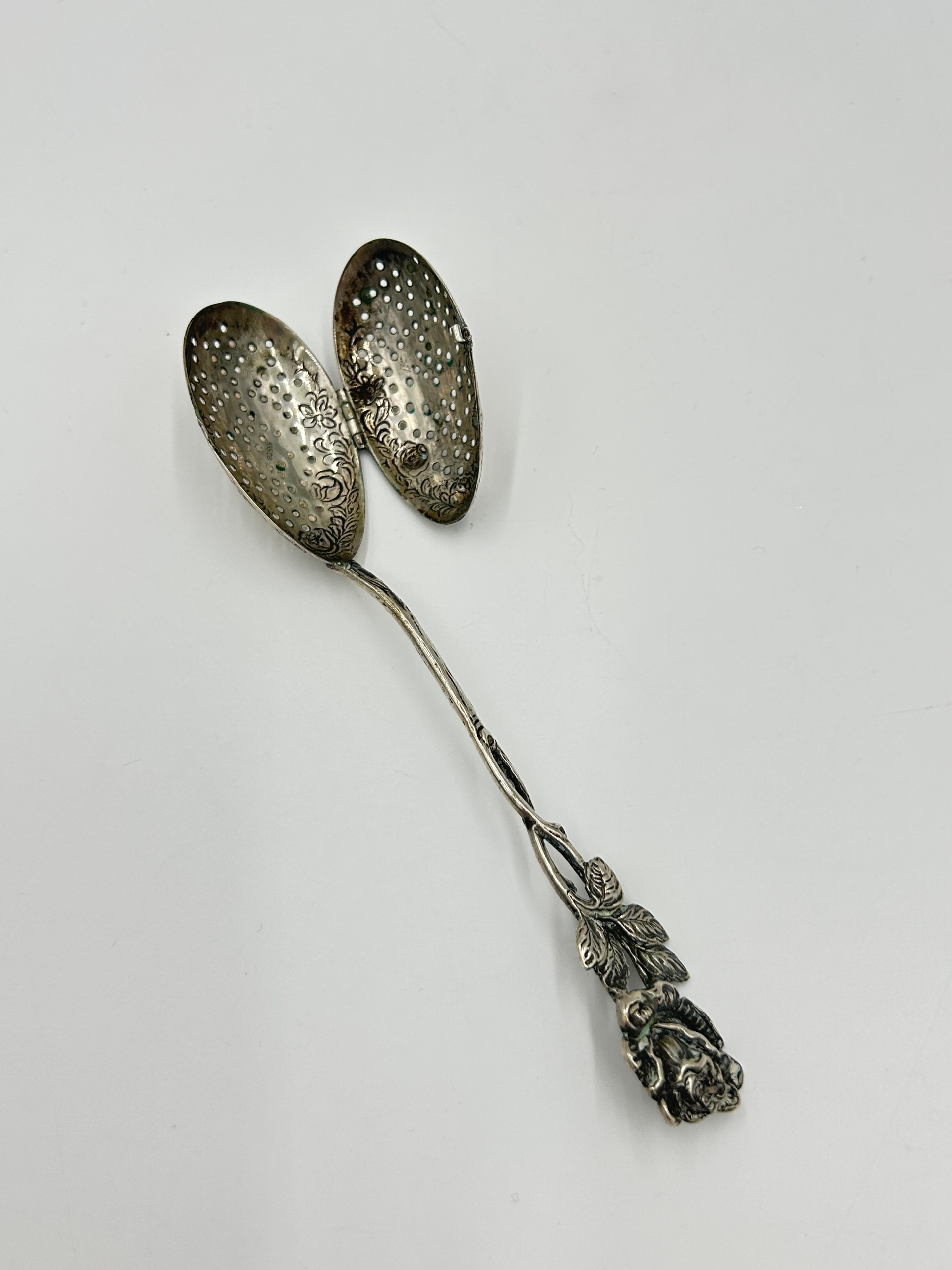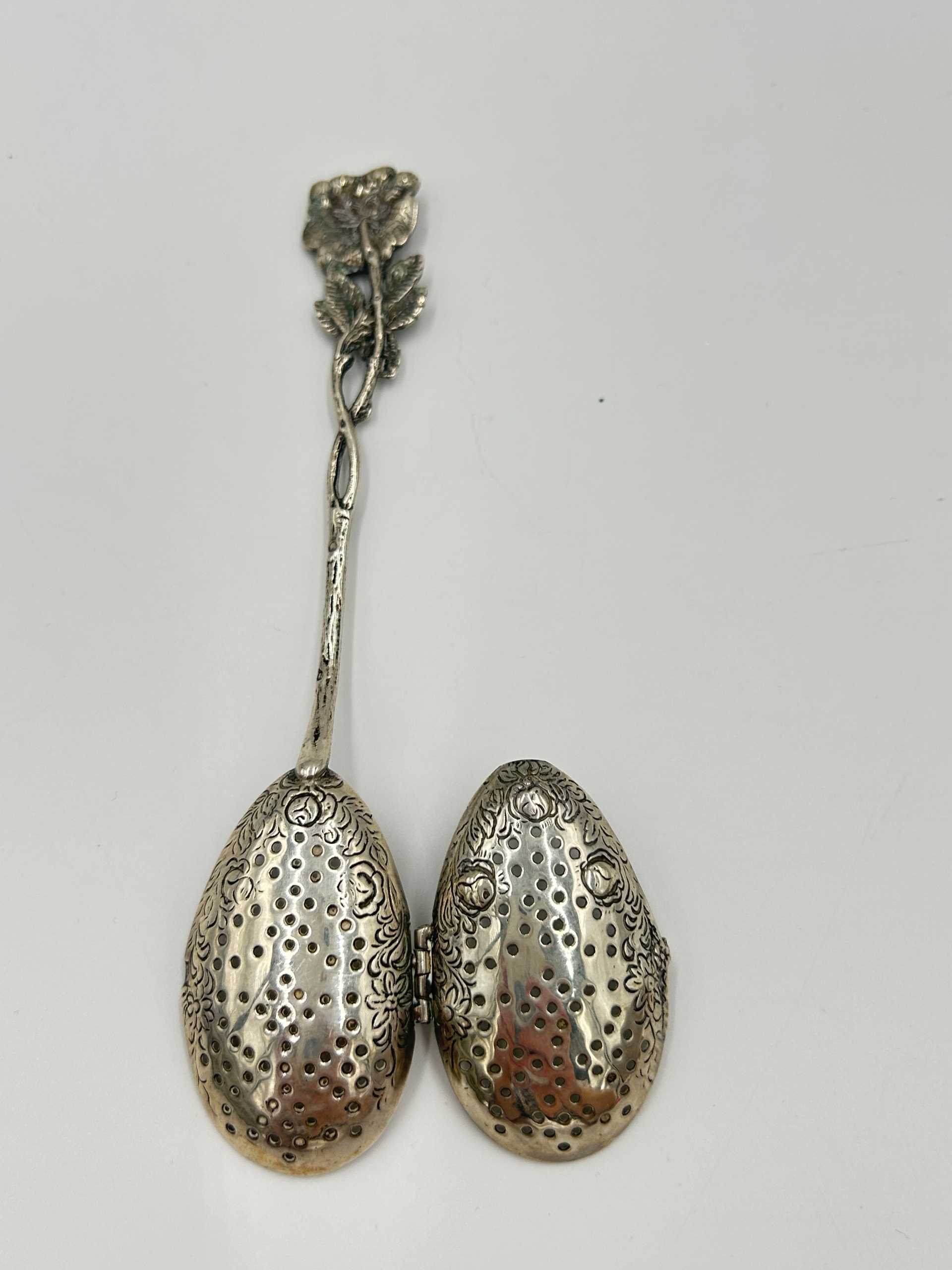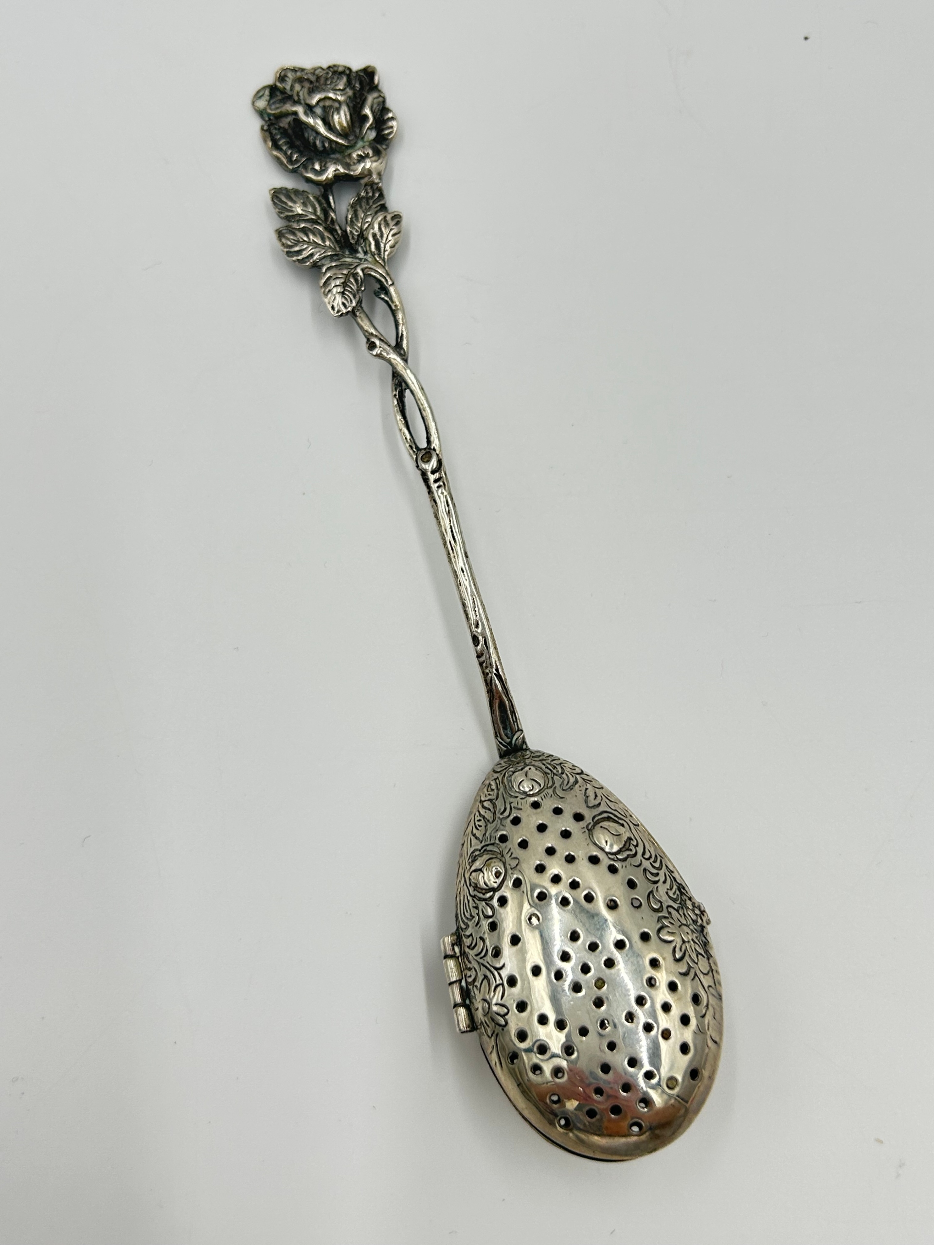 Тема продажи - это уникальный, редкий объект - ситечко/чайная ложка. Сделано из серебра, Punca 835 в немецкой студии ch. Бах . Обработайте длинную, украшенную мотивом знаменитой «Роза Хильдесхайма», , которая является символом силы, стойкости и процветания. Я рекомендую, ценную копию коллекционера, элегантный подарок для человека, который ценит уникальные предметы.