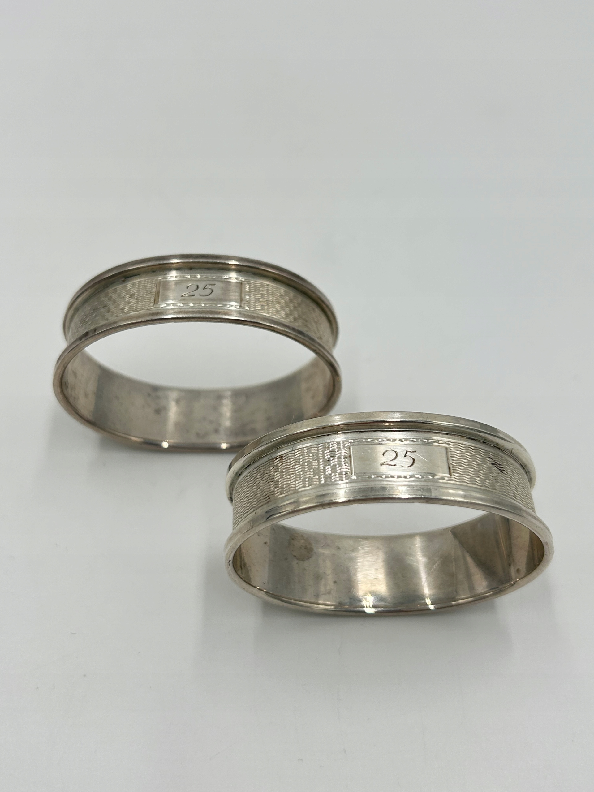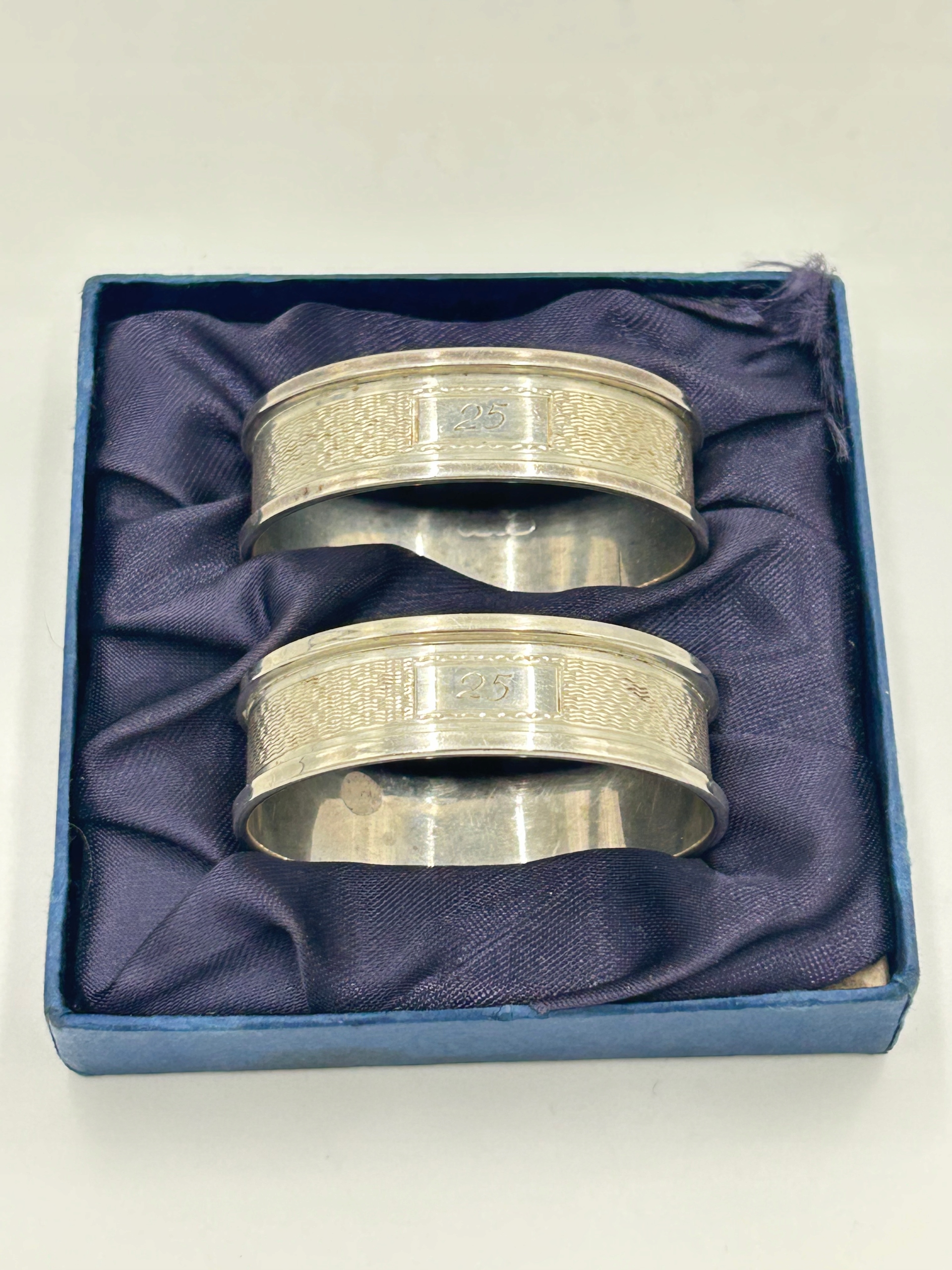 Я представляю вам несколько серебряных салфеток 925, кольца, украшенные гравировкой и номер 25. Я рекомендую идеально подходит для подарка !!! Англия, Бирмингем 1997