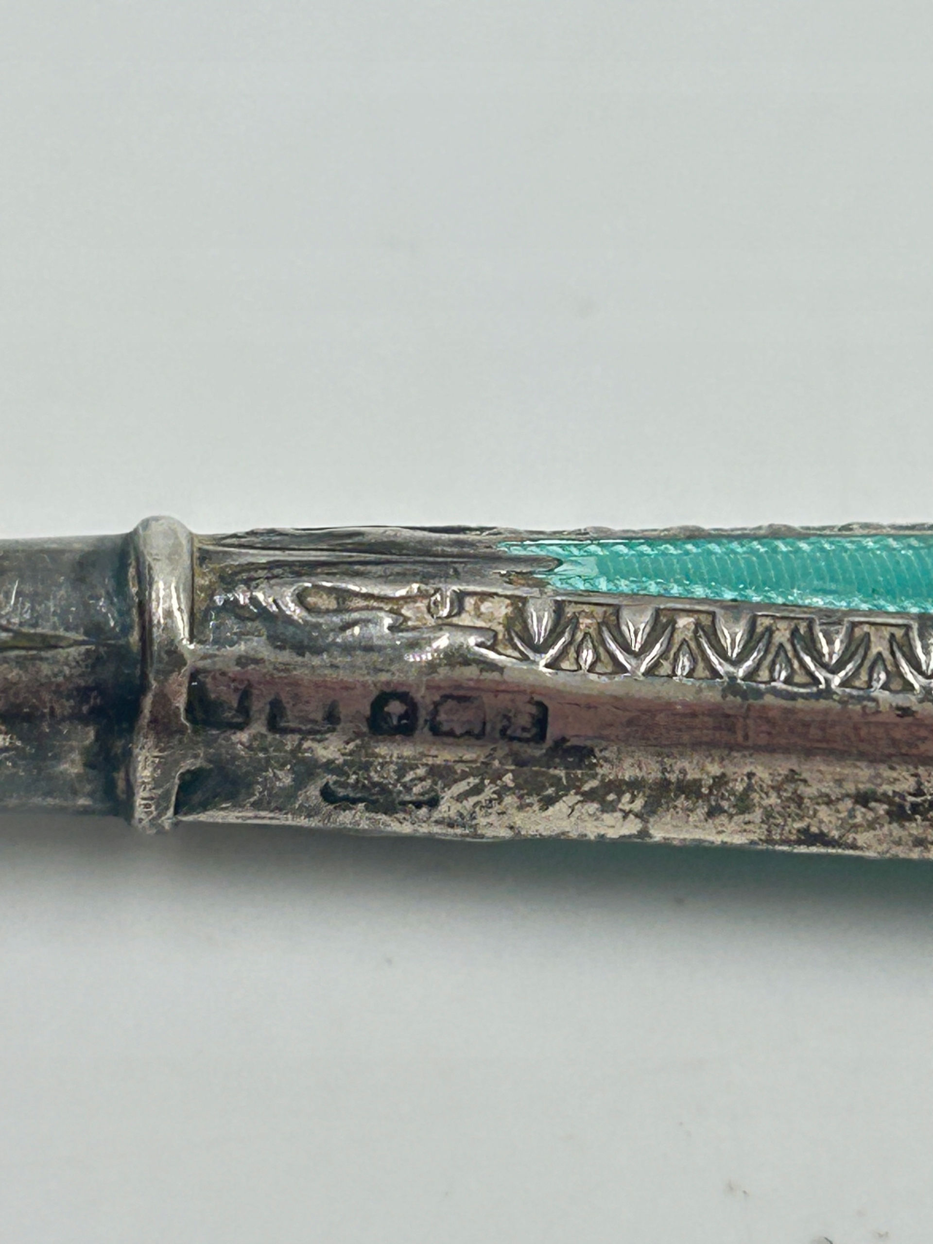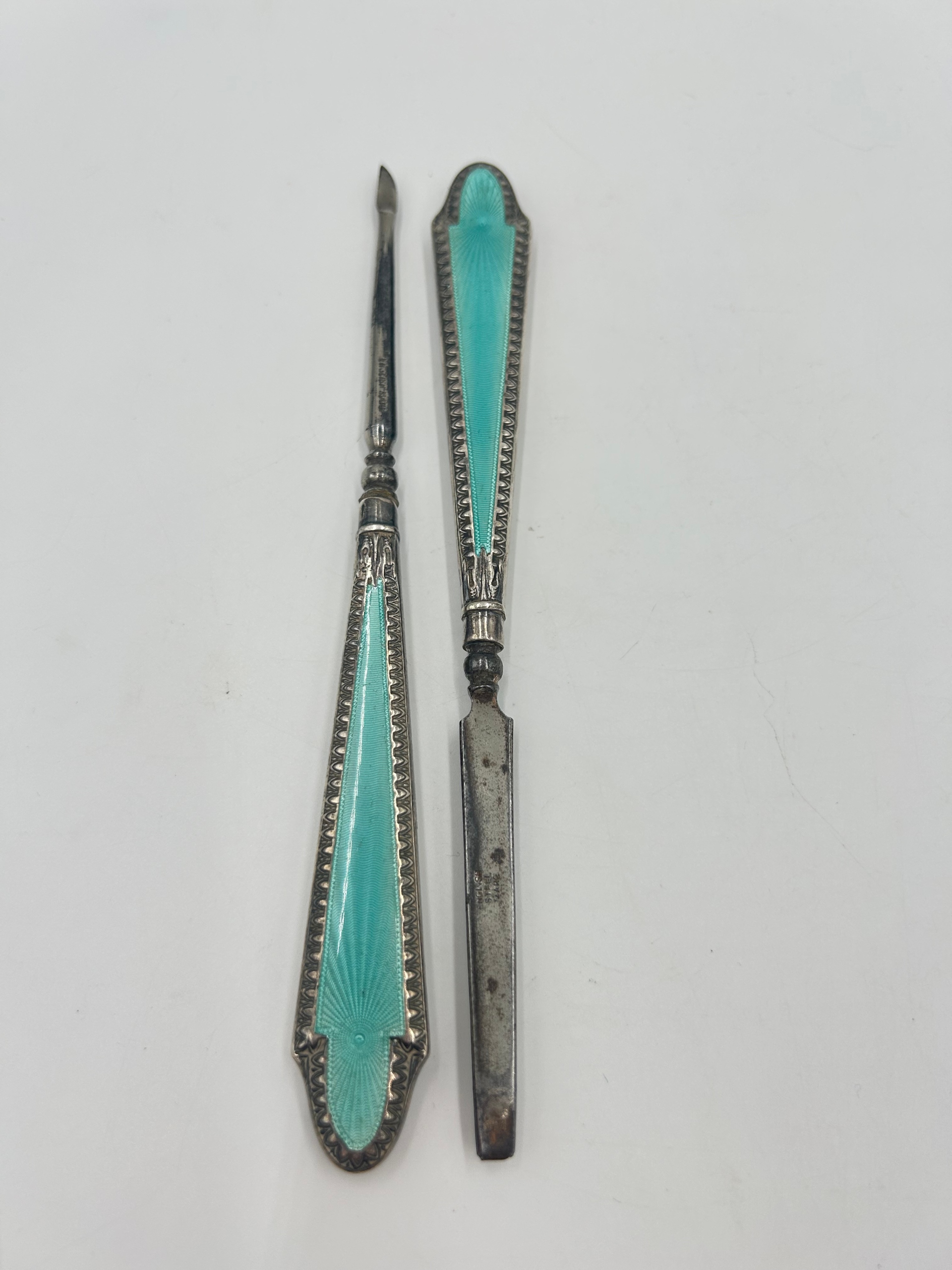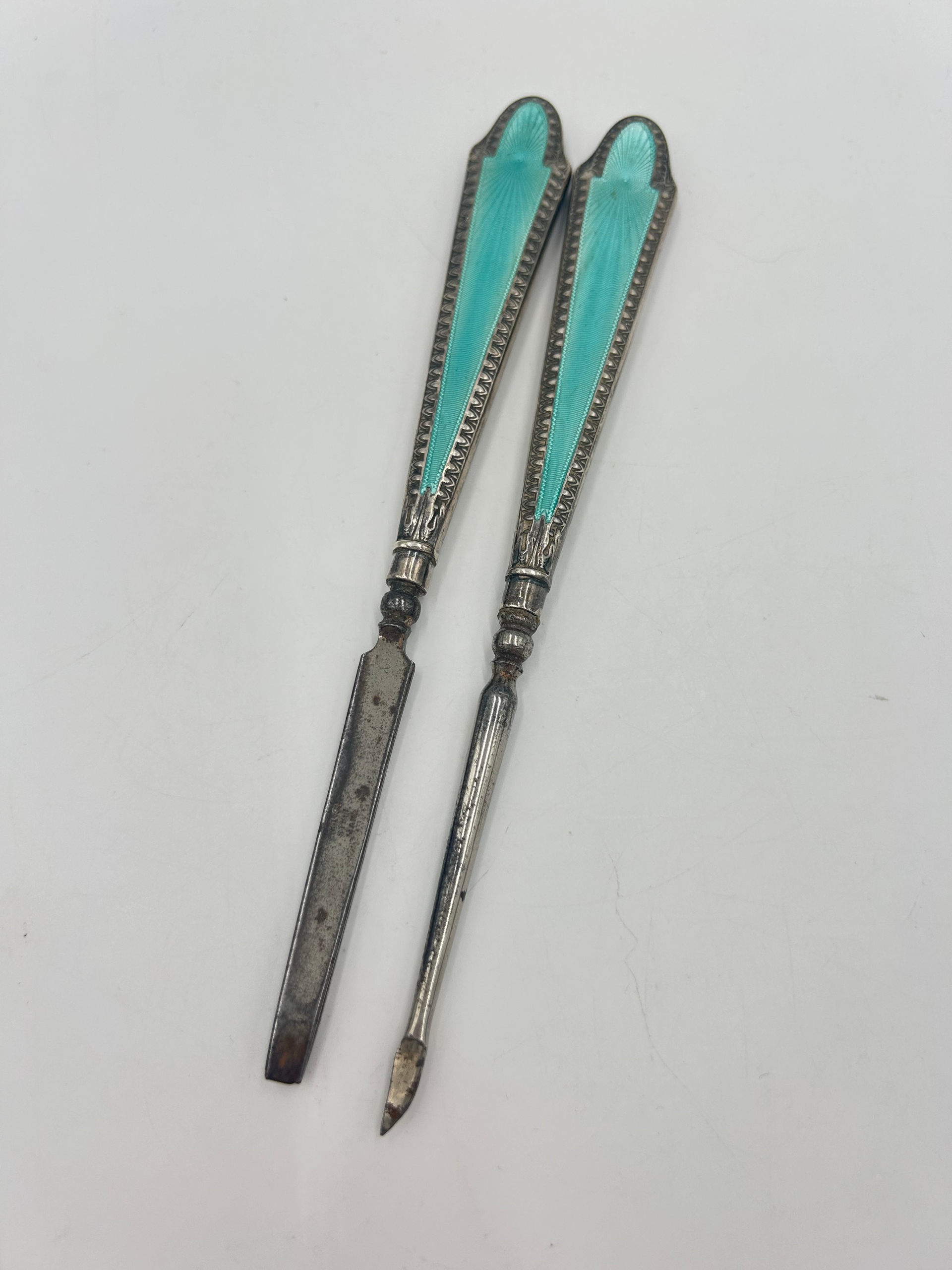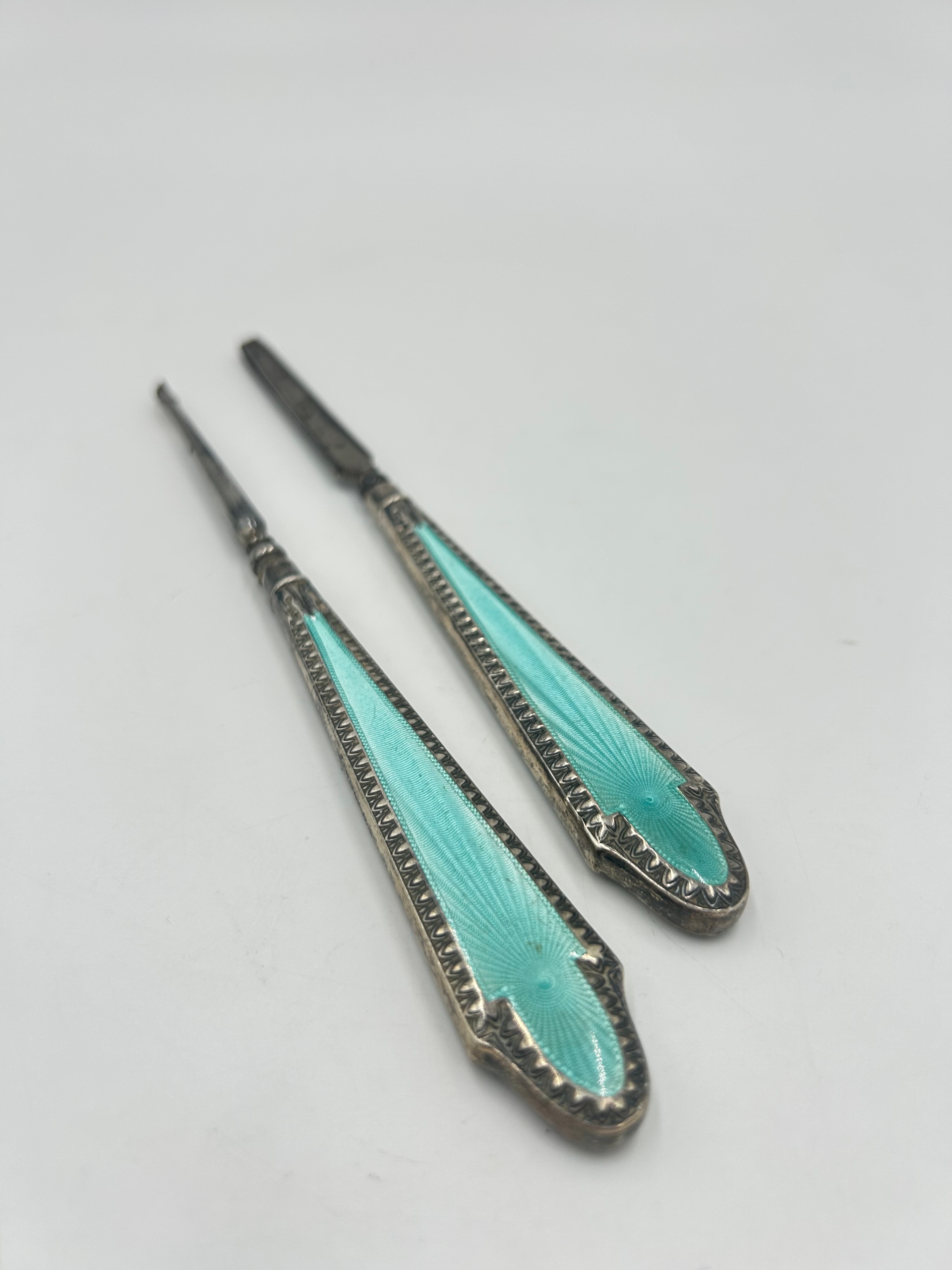 Тема продажи - пара уникальных косметических инструментов из серебра 925, с декоративной ручкой - эмаль в бирюзовой. Ценный предмет для обогащения вашей собственной коллекции. Античный