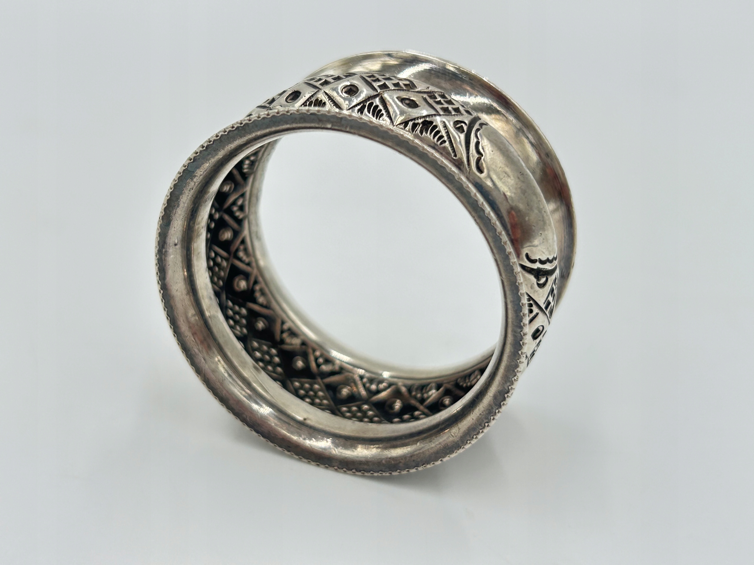 Я представляю вам старый и уникальный обод, салфетку/кольцо для салфетки. Салфетка, сделанная из 925 серебра. Я рекомендую идеальный, ценный объект для любителя редкого серебра. Происхождение Англия, Бирмингем, 1903