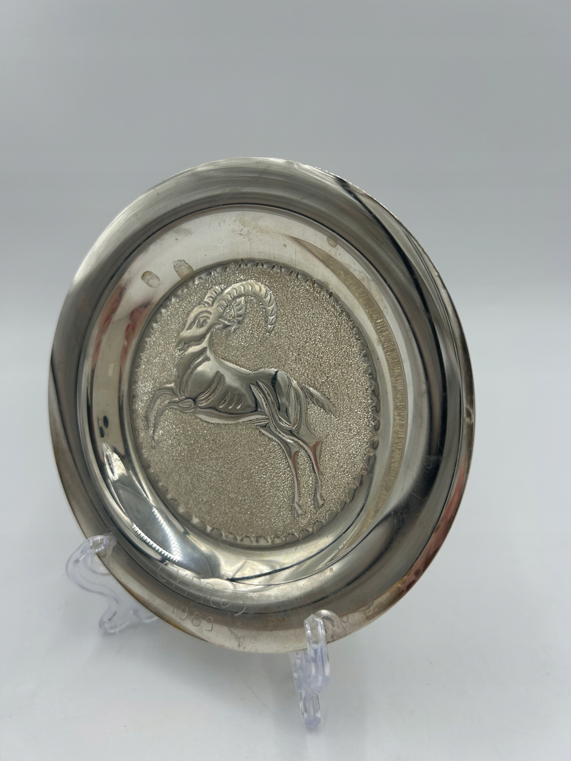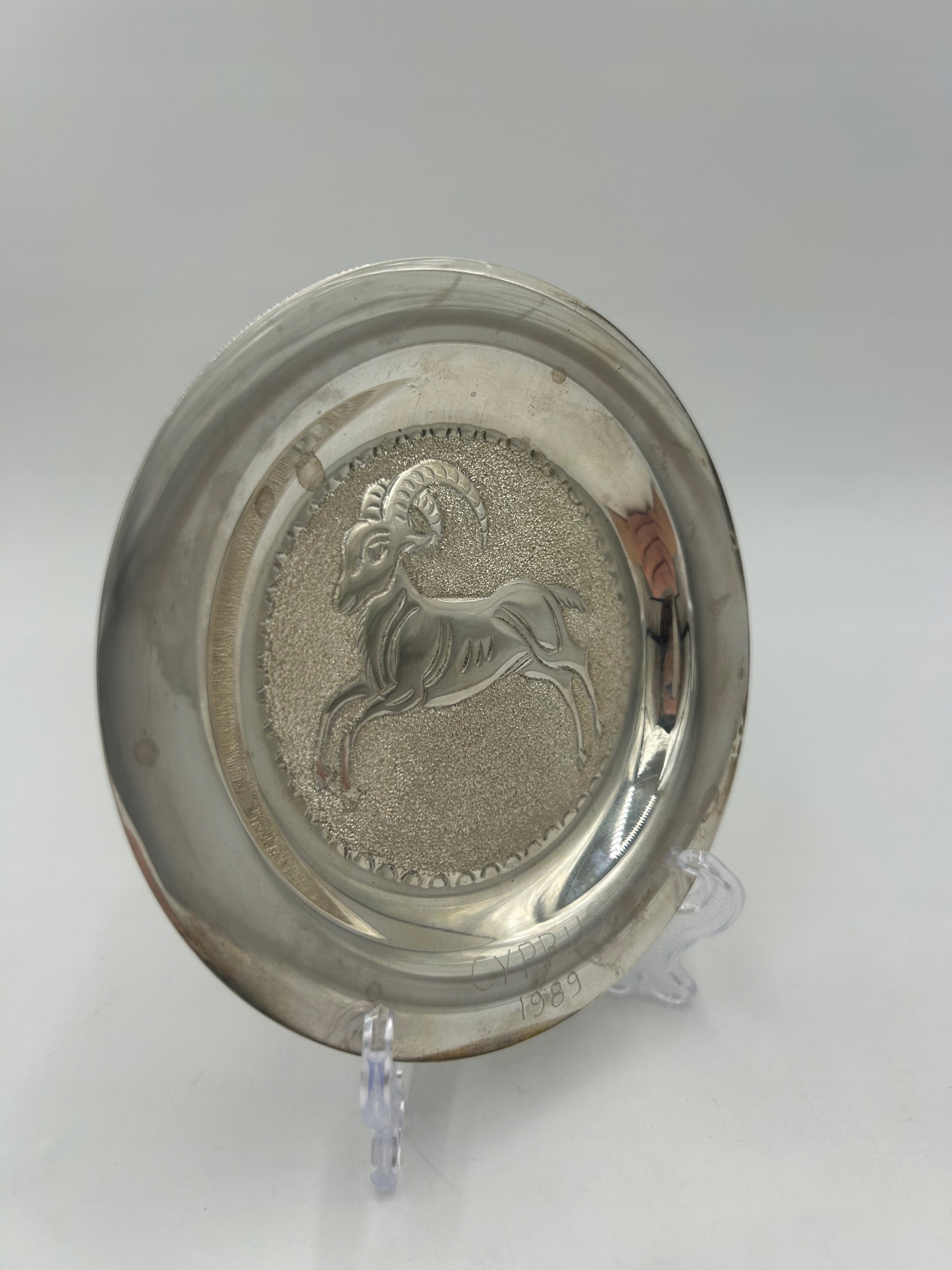 Серебряная декоративная тарелка с изображением муфлона - Кипр 1989 г. - проба 830