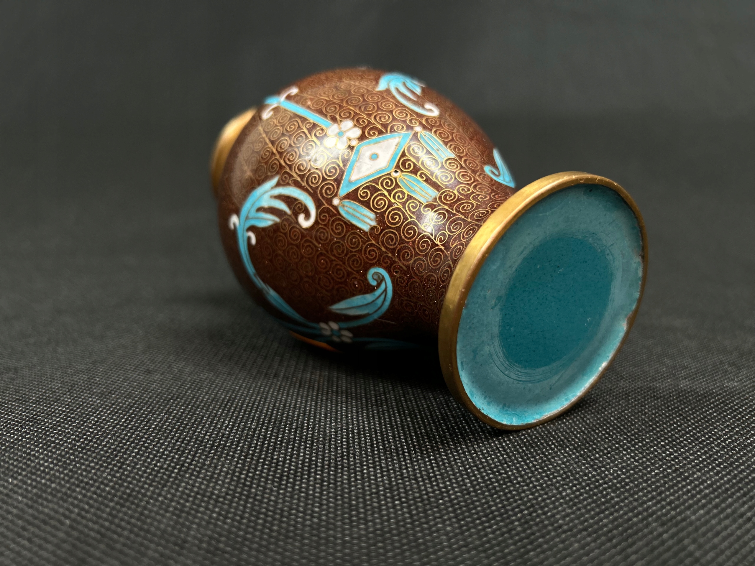 Я представляю вам уникальную вазу, украшенную техникой Cloisonne - клеточной эмаль. Сделано с большим вниманием к поддержанию деталей и множеству деталей. Красочные украшения, насыщенные цвета добавляют уникальность.