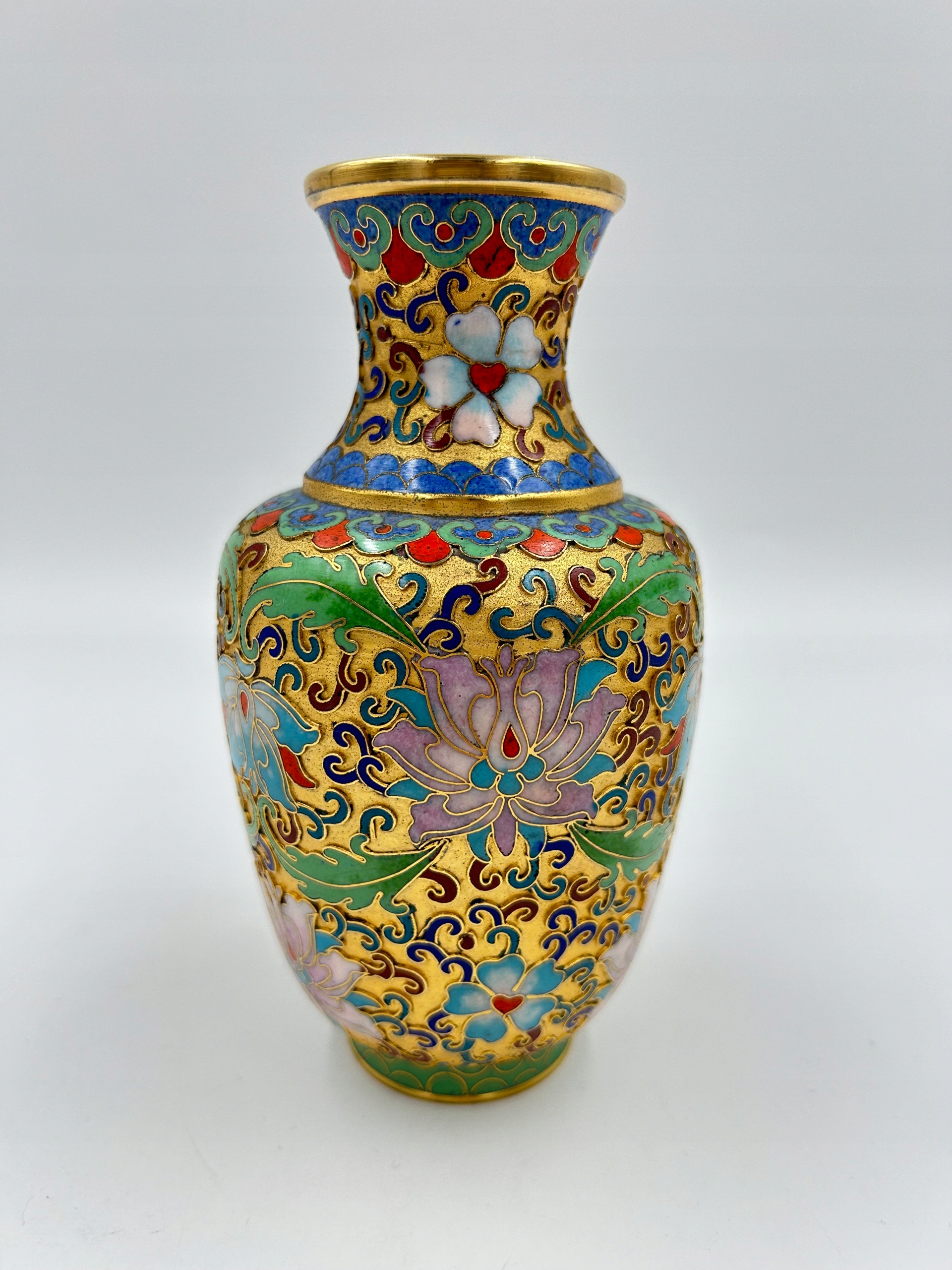 Я представляю вам элегантную вазу, богато украшенную трудоемкой техникой клиента - клеточной эмаль. Сделано с большим вниманием к поддержанию деталей и множеству деталей. Красочные украшения, насыщенные цвета, позолота. Уникальный декоративный элемент, который найдет место в любом интерьере.