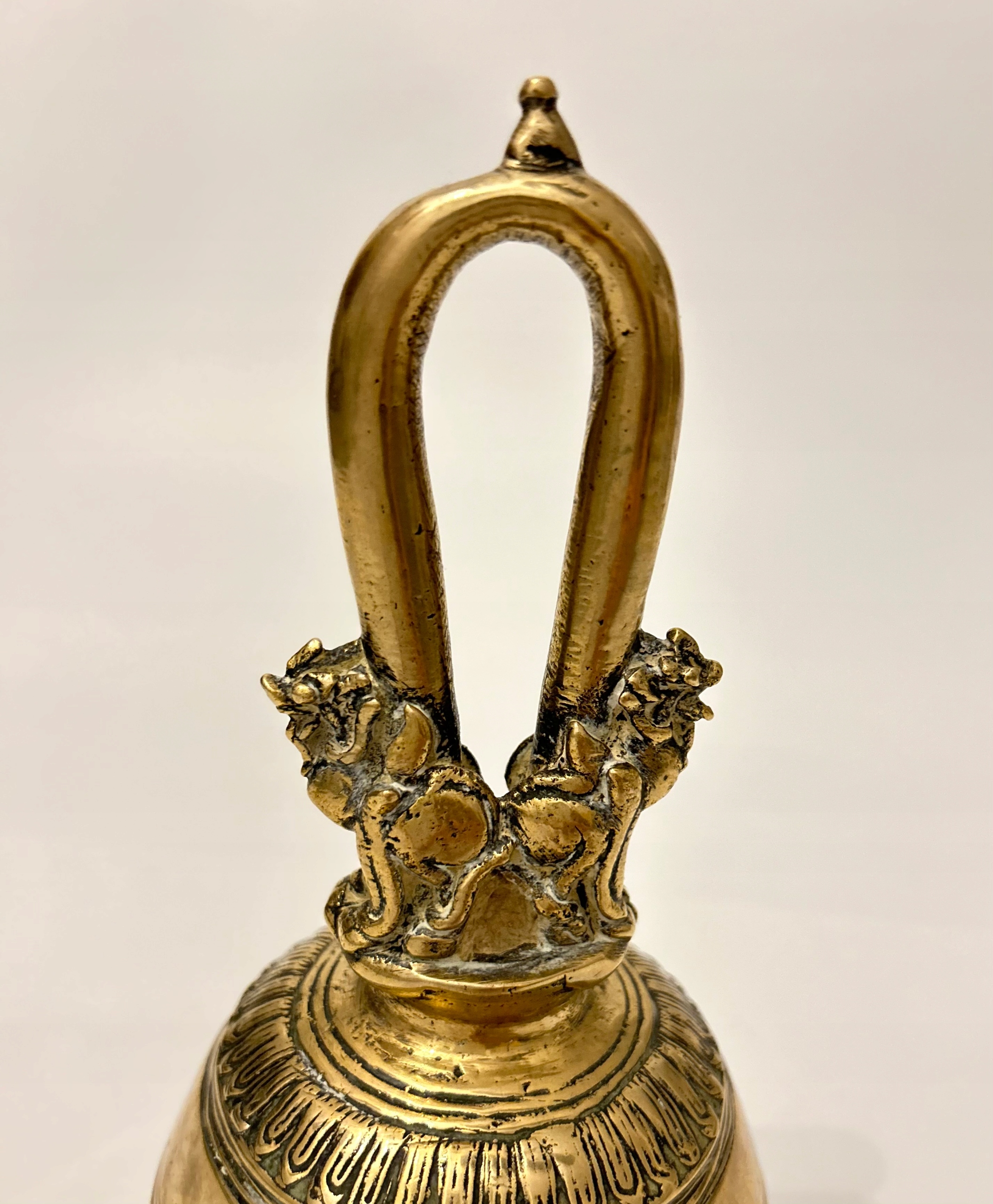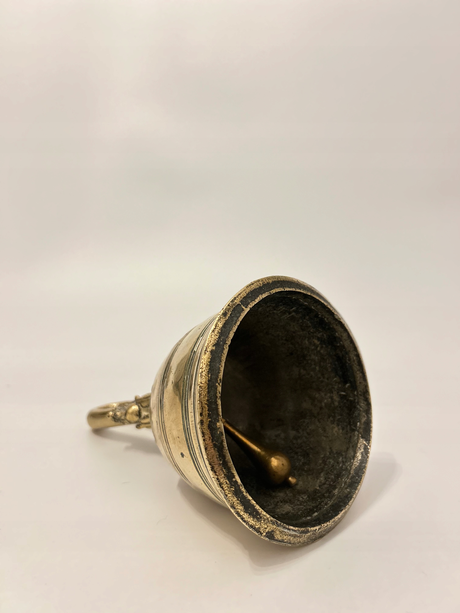 Представляю вам медный колокольчик. Красивый, блестящий колокольчик с громким звуком, высоким и тяжелым. Оформлен. Это интересный декоративный элемент интерьера дома.