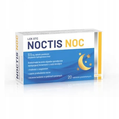 Активное вещество, содержащее в ночи Noctis, является доксиминам, который принадлежит группе антигистамин. Этот препарат характеризуется успокаивающим эффектом, что означает, что он обладает эффективностью в качестве средства, который облегчает засыпание. Значительное негативное влияние на функционирование человека в течение дня, которое проявляется в умственном замедлении, снижением концентрации, проблемами с памятью и снижением мотивации. Мы говорим о бессоннице, среди прочего, когда: время, засыпающее, превышает полчаса, общее количество пробуждения в течение ночи длится дольше, чем через полчаса, такое разрушение происходит, по крайней мере, три ночи в индивидуальной неделе, а плохое качество сна вызывает усталость или снижение психофизической эффективности в течение дня. Стресс, изменение часового пояса, некоторые, временные соматические заболевания, сменная работа, умственная напряженность, шум. Продолжительное плохое качество сна может быть симптомом психических и физических расстройств, которые требуют других методов лечения, которые следует оценить врачом. Период лечения должен быть максимально коротким. Лечение обычно длится от нескольких дней до 1 недели. Препарат не следует использовать в течение более 7 дней без консультации с врачом. Если через 7 дней не было улучшения или пациент чувствует себя хуже, пожалуйста, свяжитесь с врачом. Важная информация перед использованием Noctis Night