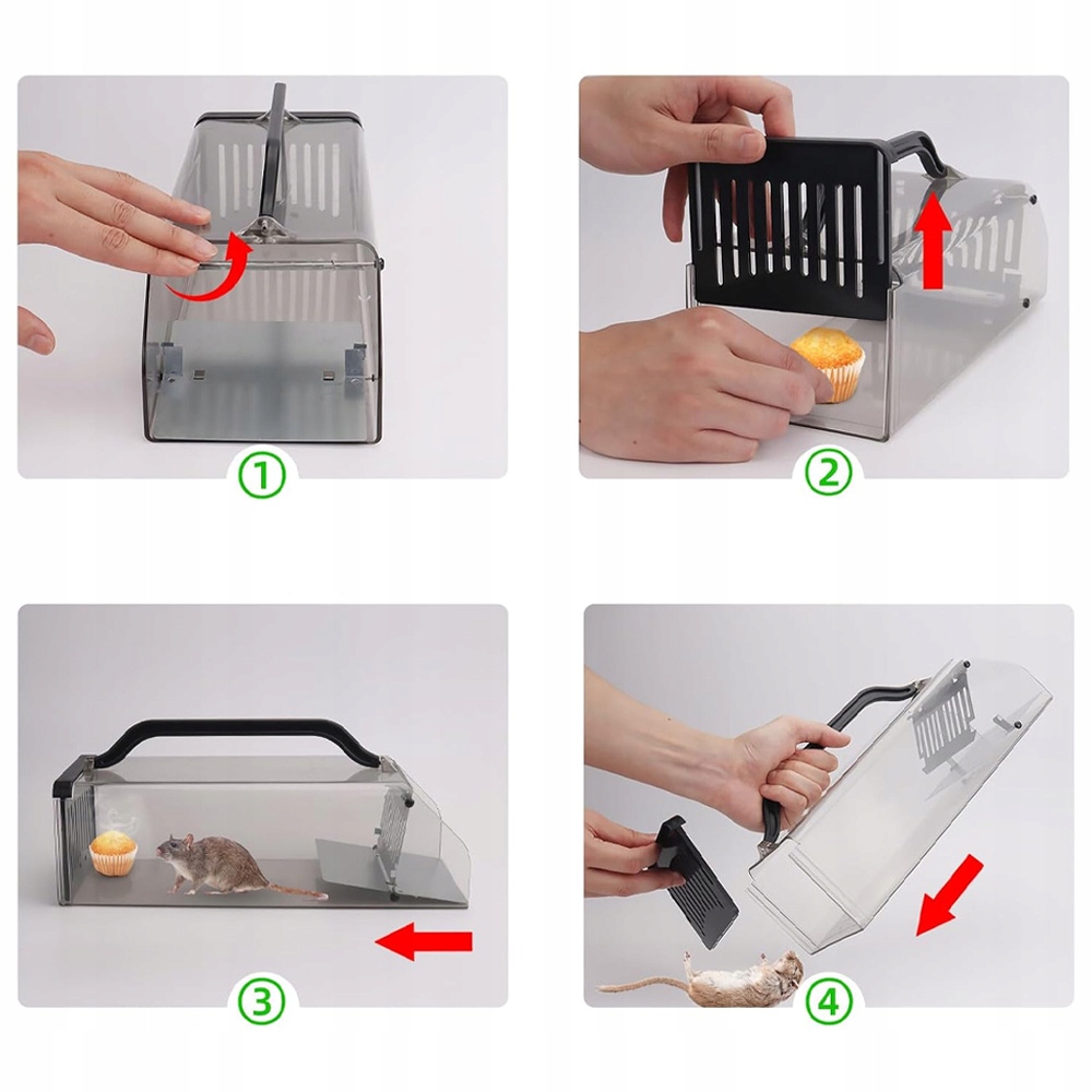 , вымойте ловушку мыши водой и протрите сухой тканью, вы можете сбросить ловушку мыши. Передние и задние двери гуманитарной ловушки мыши усилены железными листами и не будут легко укусить, как другие ловушки мышей, доступные на рынке.