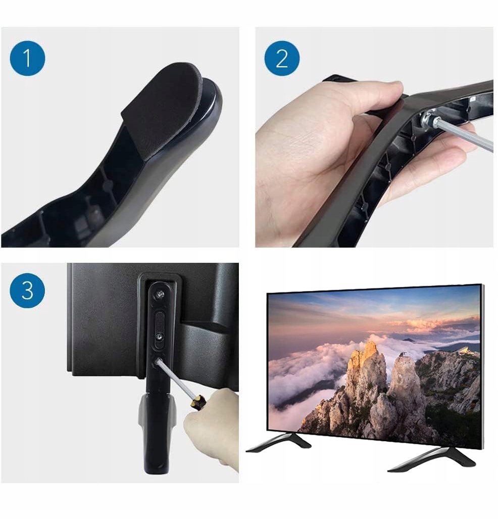 👍👍👍 Прочные и долговечные: ножки подставки для экрана телевизора Благодаря устойчивой треугольной конструкции рамы ваш телевизор не упадет легко. Ножки подставки для телевизора изготовлены из высококачественных материалов, прочные и долговечные, их нелегко повредить, они выдерживают нагрузку до 45 кг.