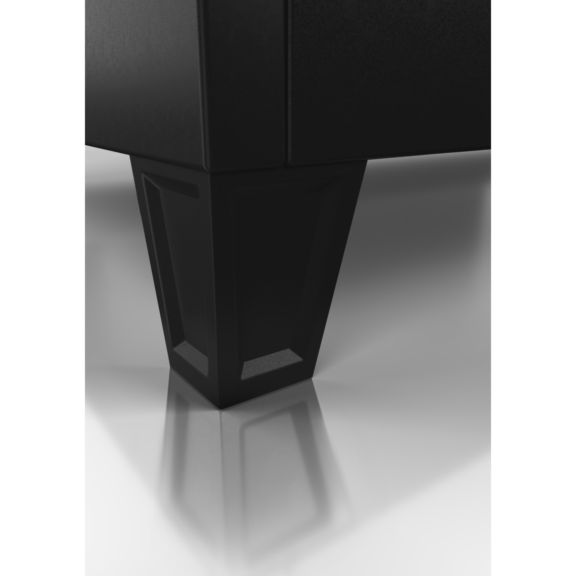 Ноги гардероба изготовлены из прочного стального листа с толщиной 1,2 мм. Порошковое покрытие, приложенное к структуре, не только влияет на эстетику, а также повышает коррозионную стойкость. Опочки внизу имеют защитные прокладки, которые устраняют риск царапин. Для установки одной ноги до гардероба вам нужно 4 винта с размерами 5x12 мм.