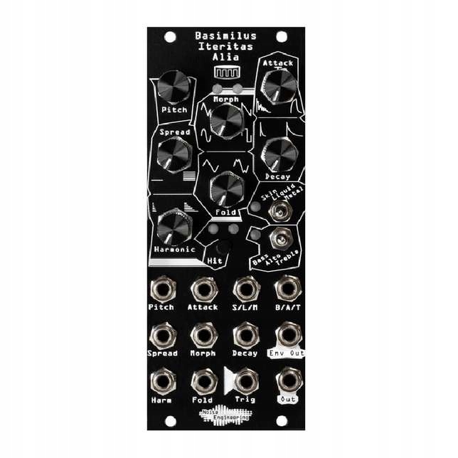Шумовая инженерия Basimilus Iteritas Alia — цифровой барабанный модуль, вдохновленный аналоговыми машинами. Он основан на синтезаторе с шестью цифровыми FM-генераторами с регулируемой формой волны, распределением гармоник и генератором шума. Basimilus Iteritas Alter предлагает три различных режима волнового синтеза, а отдельные генераторы можно отключать друг от друга, чтобы создать уникальную палитру звуков барабанов. Особенностью модуля является то, что он имеет собственный параметр «гармоники», определяющий, сколько осцилляторов доходит до выхода и как долго они звучат. Всеми параметрами Basimilus Iteritas Alter, такими как Pitch, Attack и Decay, можно управлять с помощью CV.